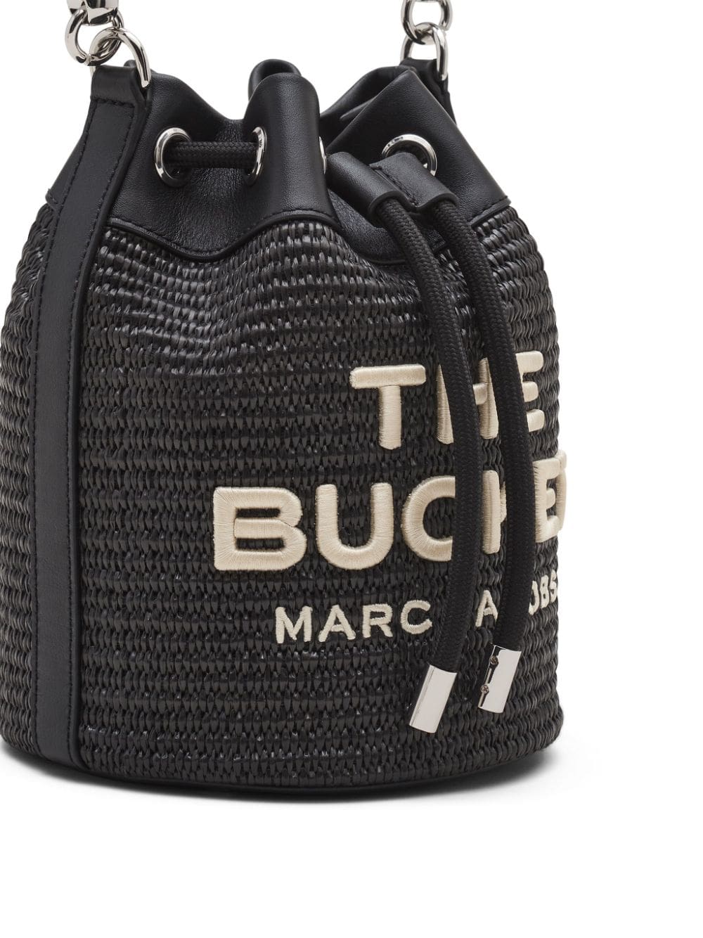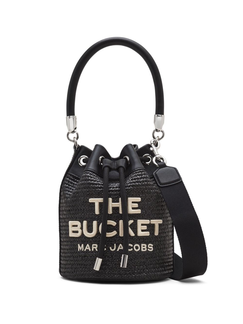 With a woven cotton-blend construction, this black Bucket bag by Marc Jacobs boasts the signature logo embroidery at the front in contrasting white threads. Versatile thanks to the top handle and detachable shoulder strap, this accessory is complete with a top drawstring fastening and main compartment.
