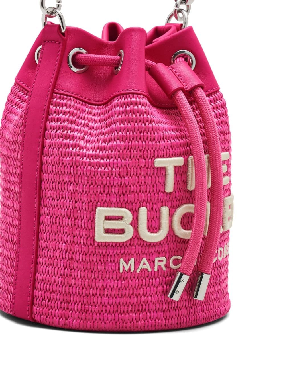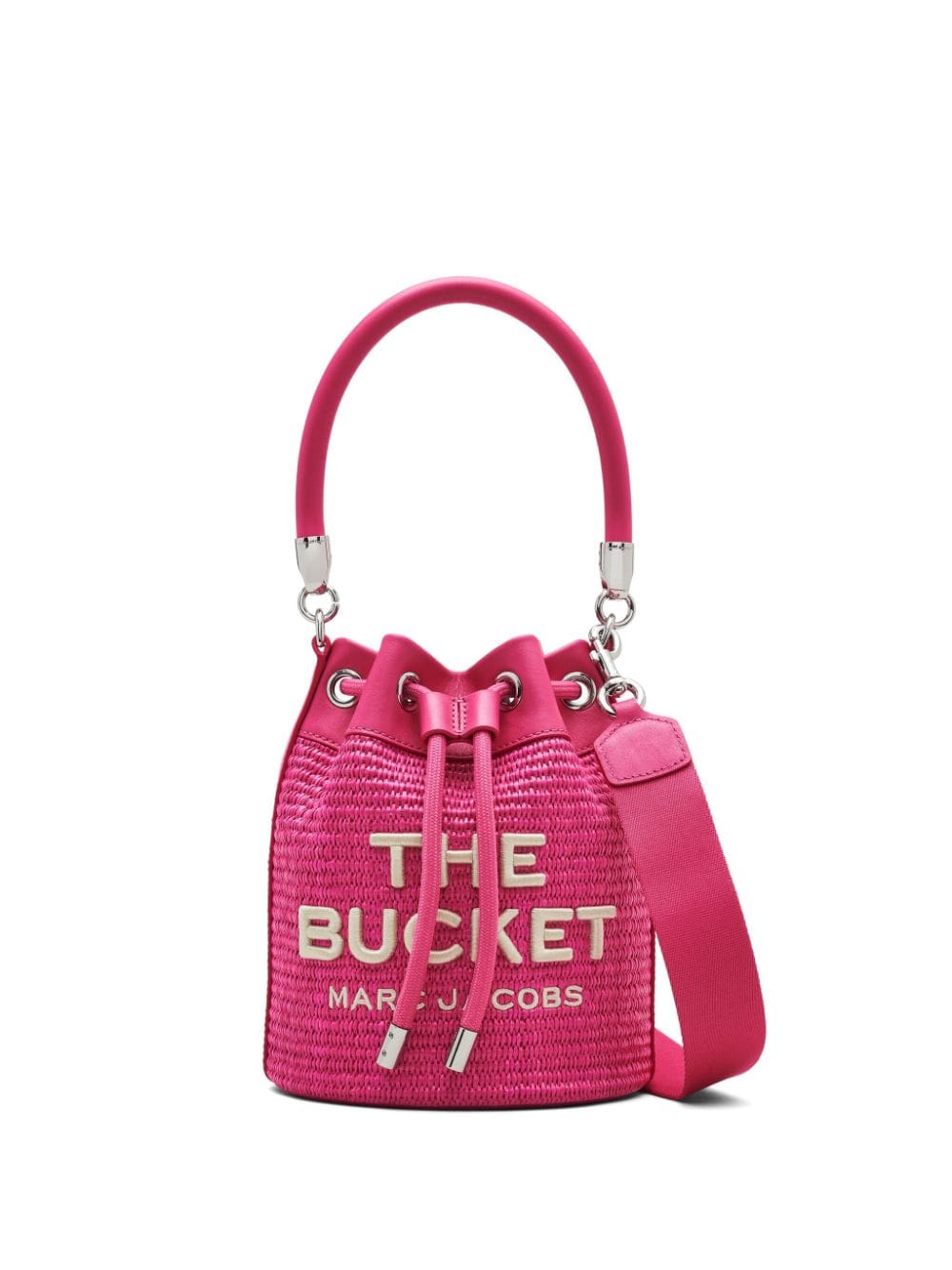 With a woven cotton-blend construction, this hot-pink Bucket bag by Marc Jacobs boasts the signature logo embroidery at the front in contrasting white threads. Versatile thanks to the top handle and detachable shoulder strap, this accessory is complete with a top drawstring fastening and main compartment.