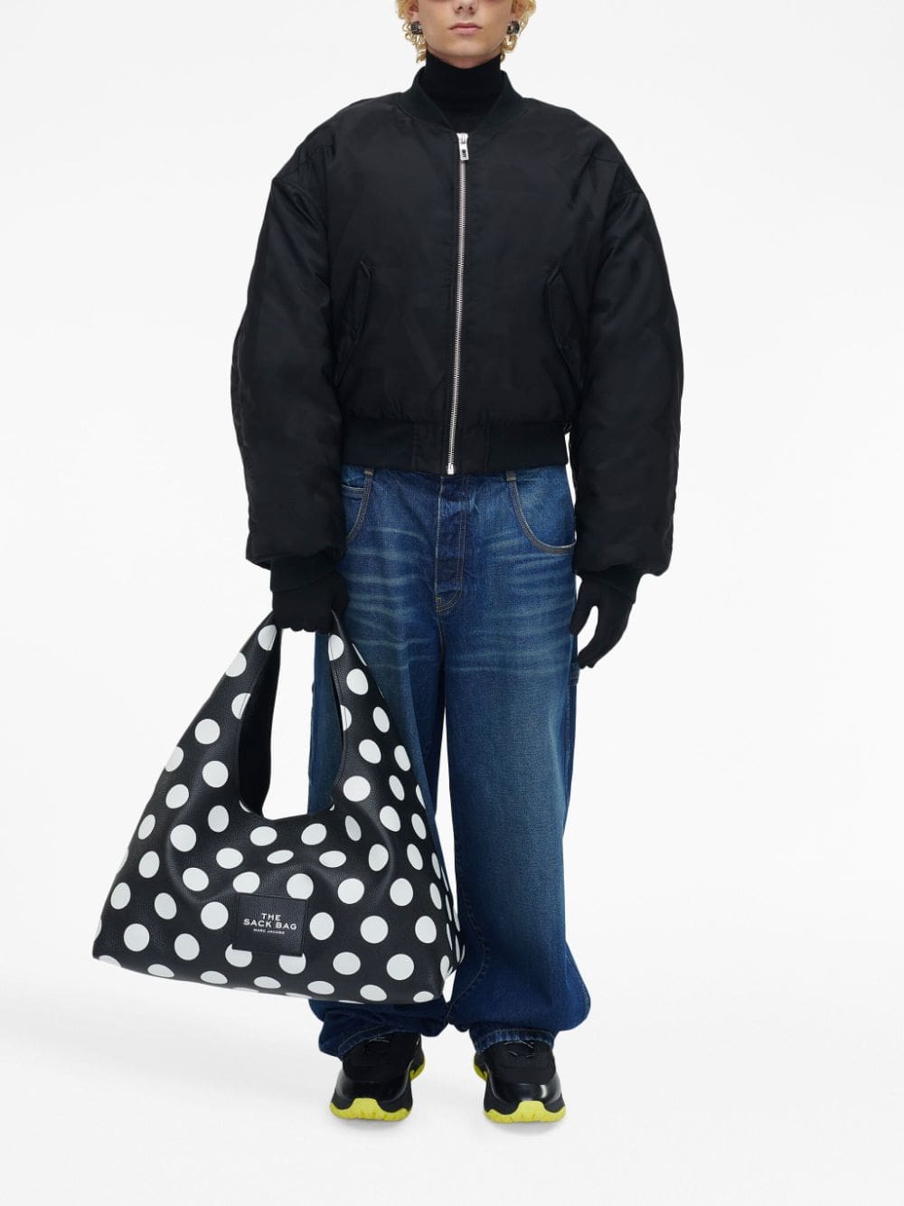 Presented in an oversized silhouette, The Sack shoulder bag is decorated with Marc Jacobs' seasonal polka dot print. Crafted from grained leather, it boasts a partitioned compartment with multiple pockets, seamlessly blending style and convenience.