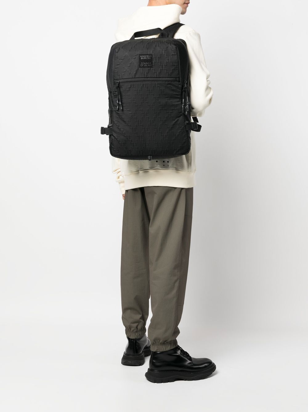 Marcelo Burlon County of Milan's Cross motif defines the construction of this backpack in an embossed form. The bold piece is finished with a logo patch to the front, which contrasts against the textured design, adding an extra branded touch.