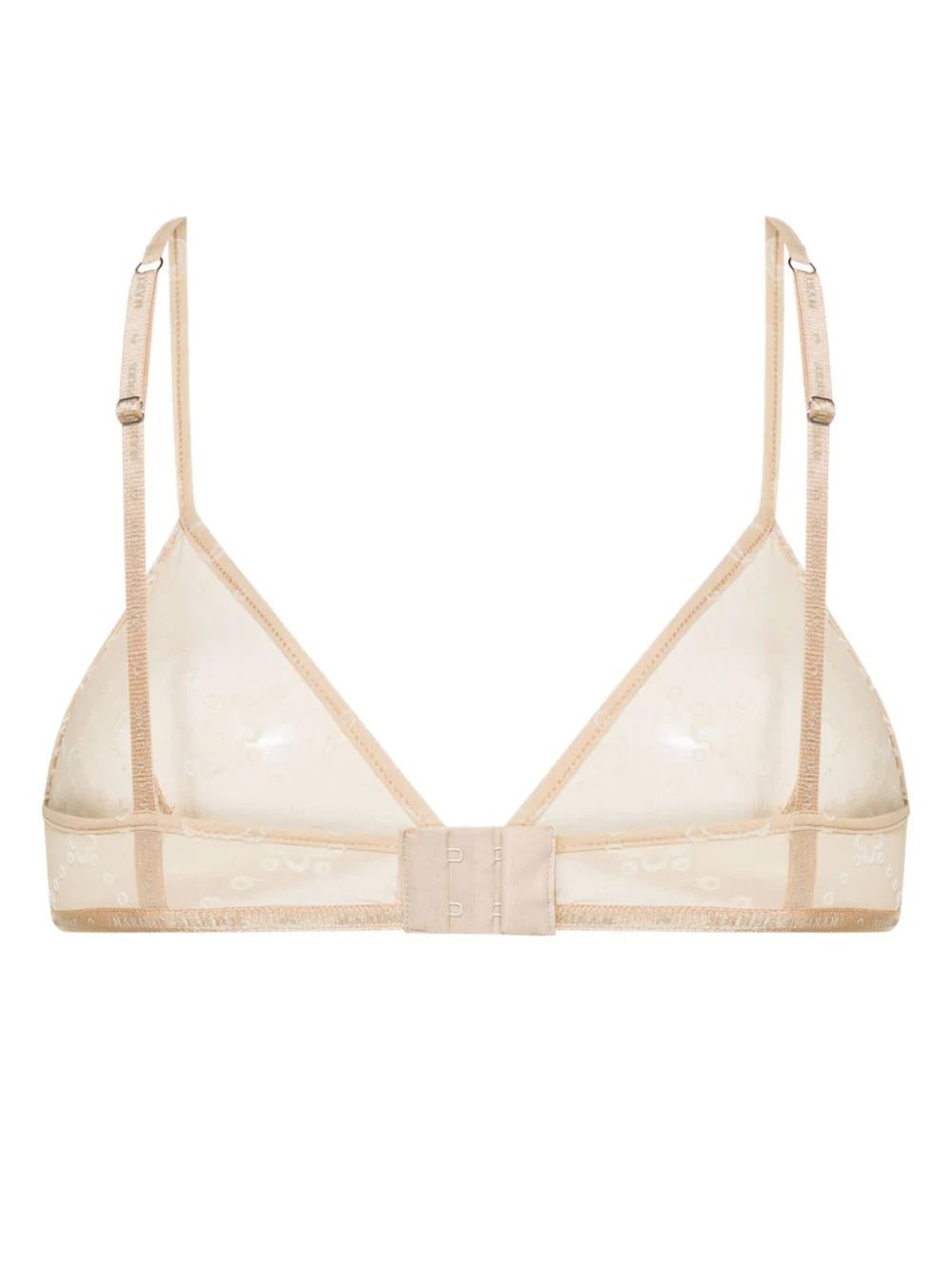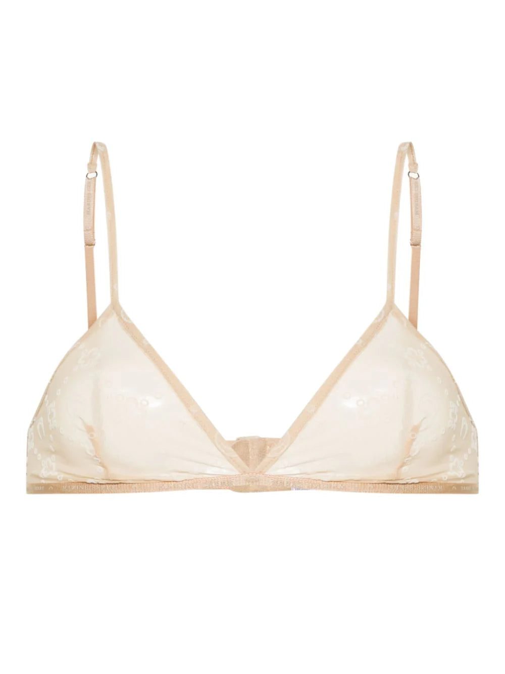 Marine Serre's celestial spirit is awash across this regenerated tulle triangle bralette. It’s flocked with a velvety Moonogram pattern – an evolution of the brand’s iconic Crescent Moon motif.
