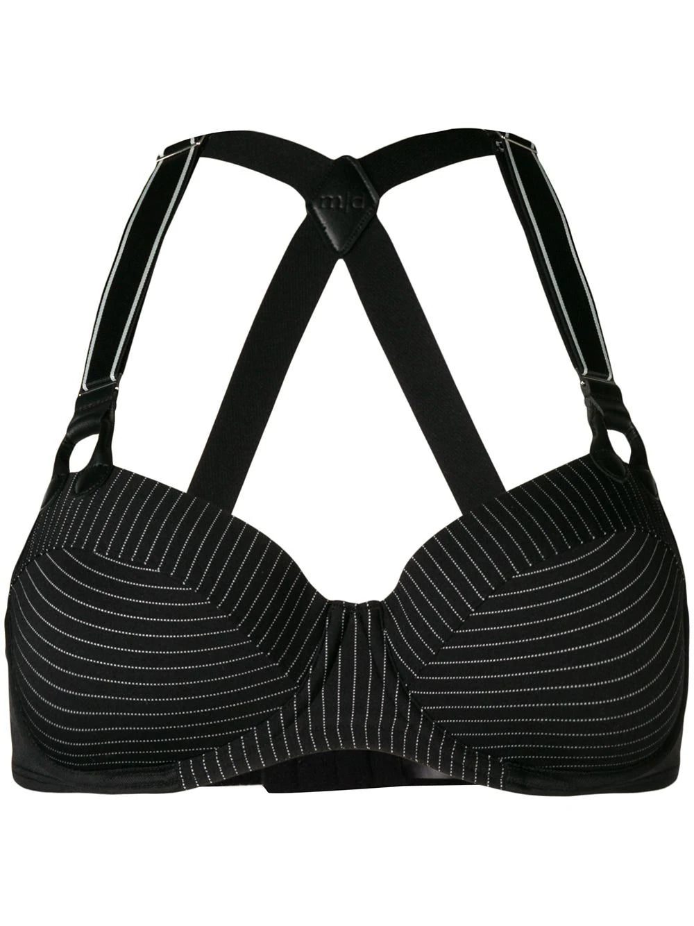 Black gloria plunge balcony bra from MARLIES DEKKERS featuring pinstripes, underwired cups, a double hook & eye fastening and a triangular design to the back. Underwear and lingerie must be tried on over your own garments.
