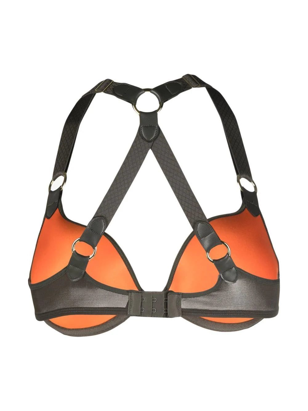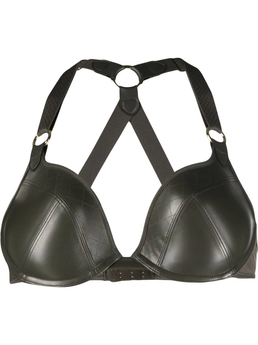 padded plunge bra from MARLIES DEKKERS featuring black, faux leather, balconette style, adjustable fit, crossover shoulder straps and rear clasp fastening. POSITIVELY CONSCIOUS: We've partnered with Good On You — an ethical agency that rates how sustainably brands perform across various people, planet and animal welfare criteria. This product comes from a Conscious brand that performs well in relation to their impact on animals..