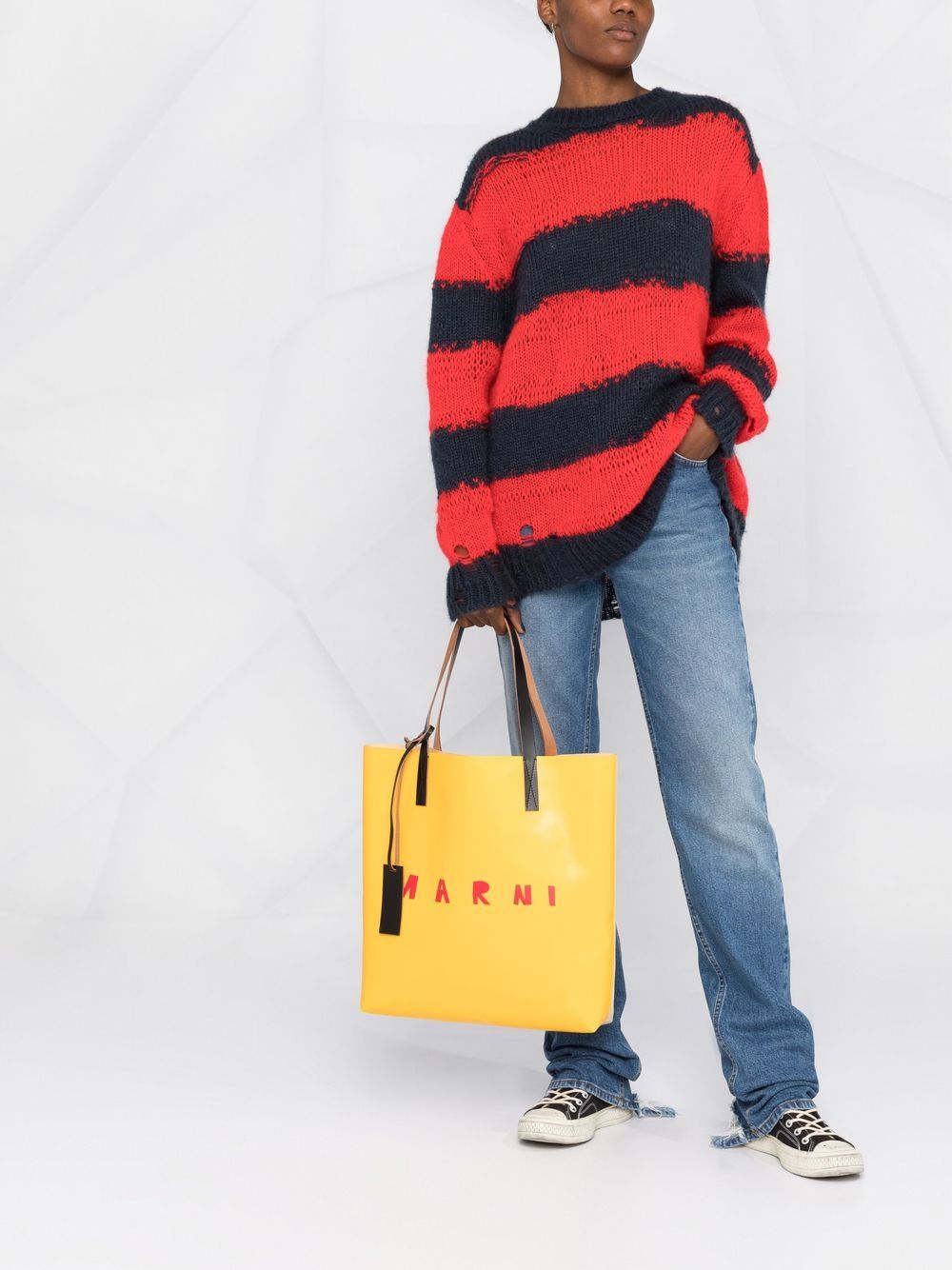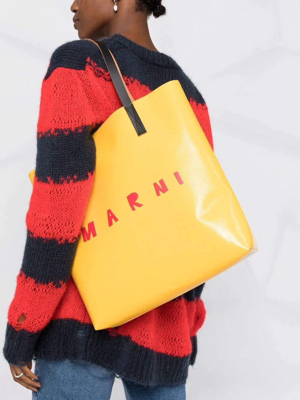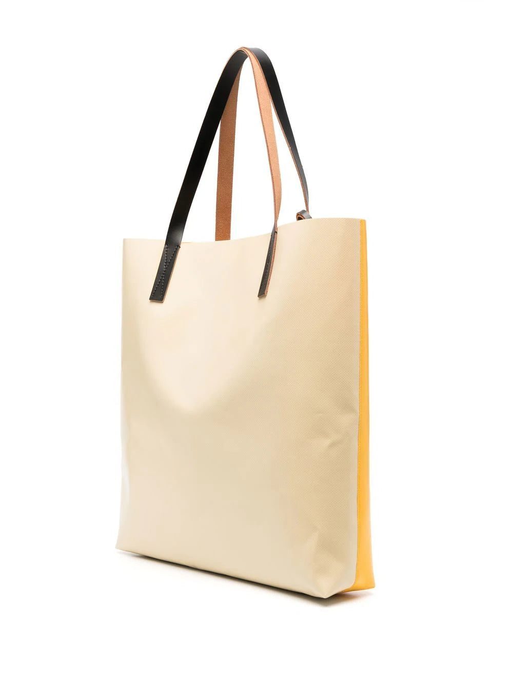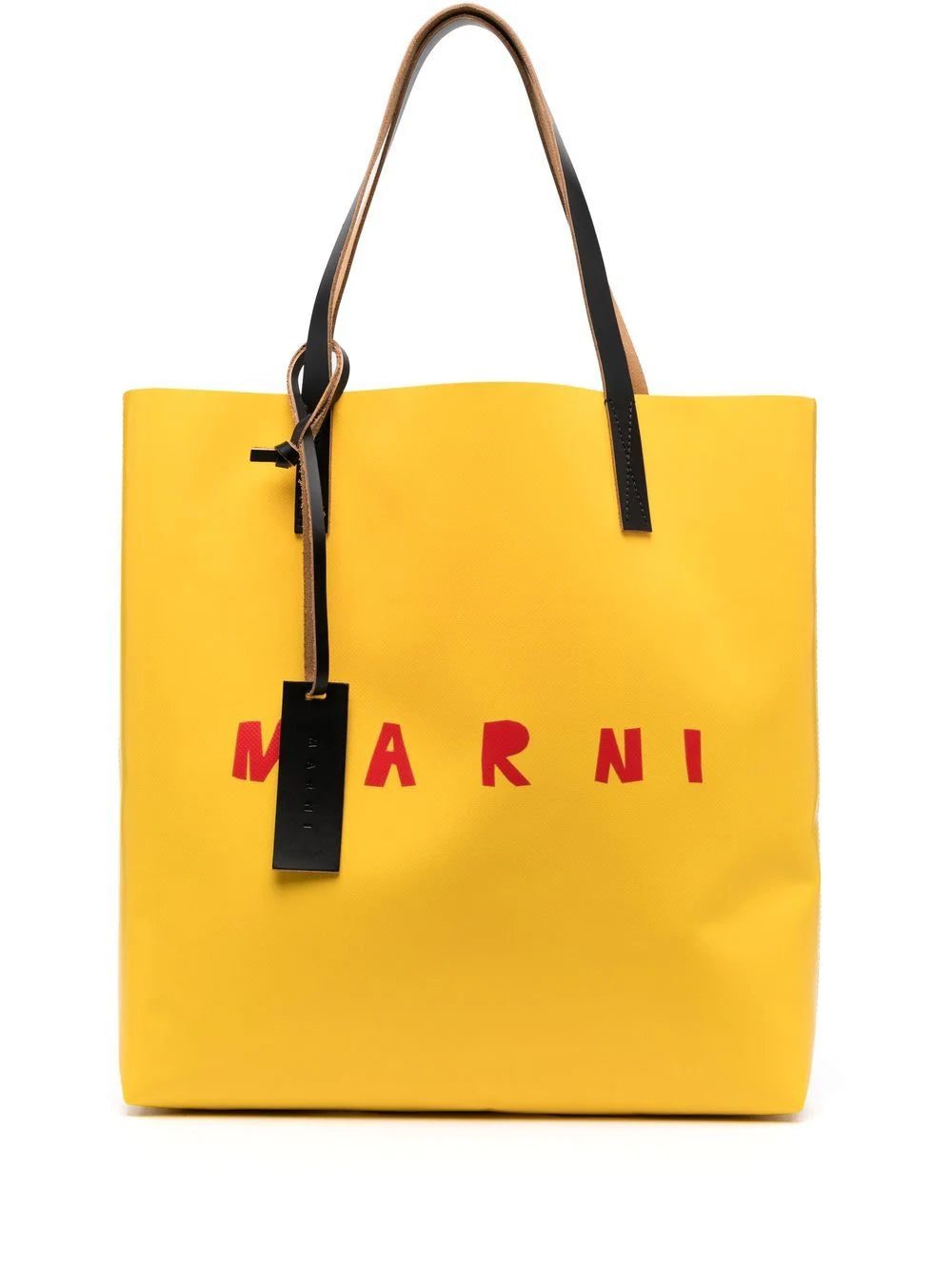 Marni's contemporary spirit shines through in this branded tote bag from the label's latest collection. Crafted in Italy, it features two rounded top handles, a spacious main compartment, and a tonal colour block construction.