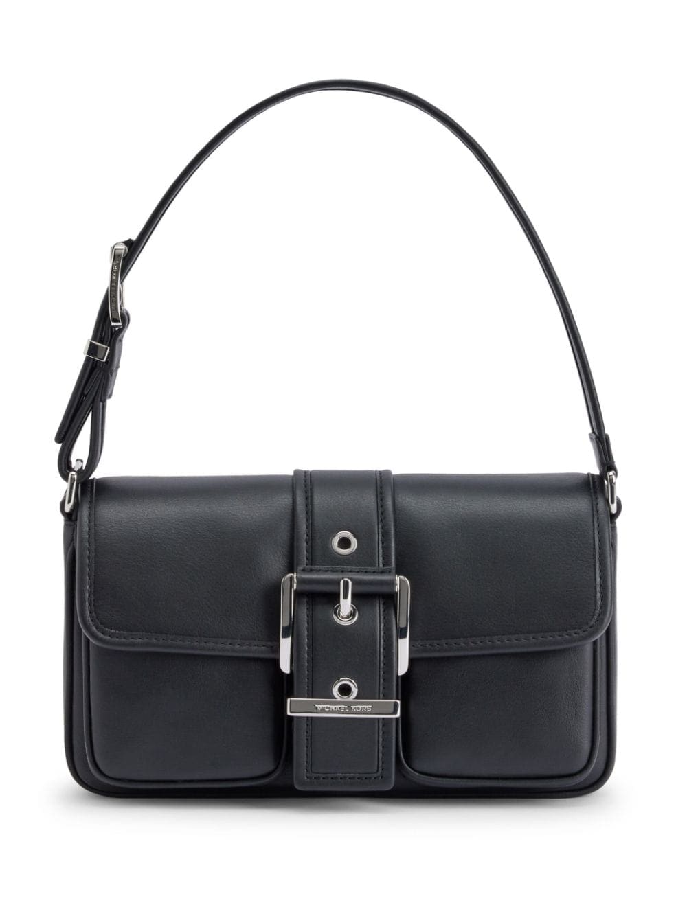 buckled leather shoulder bag