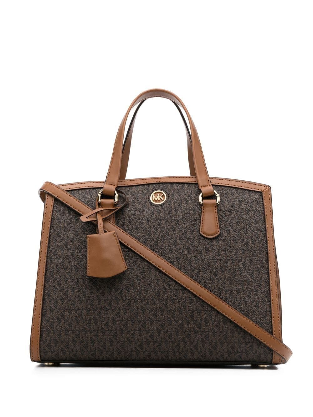brown calf leather all-over logo print circular top handles adjustable detachable shoulder strap internal zip-fastening pocket
