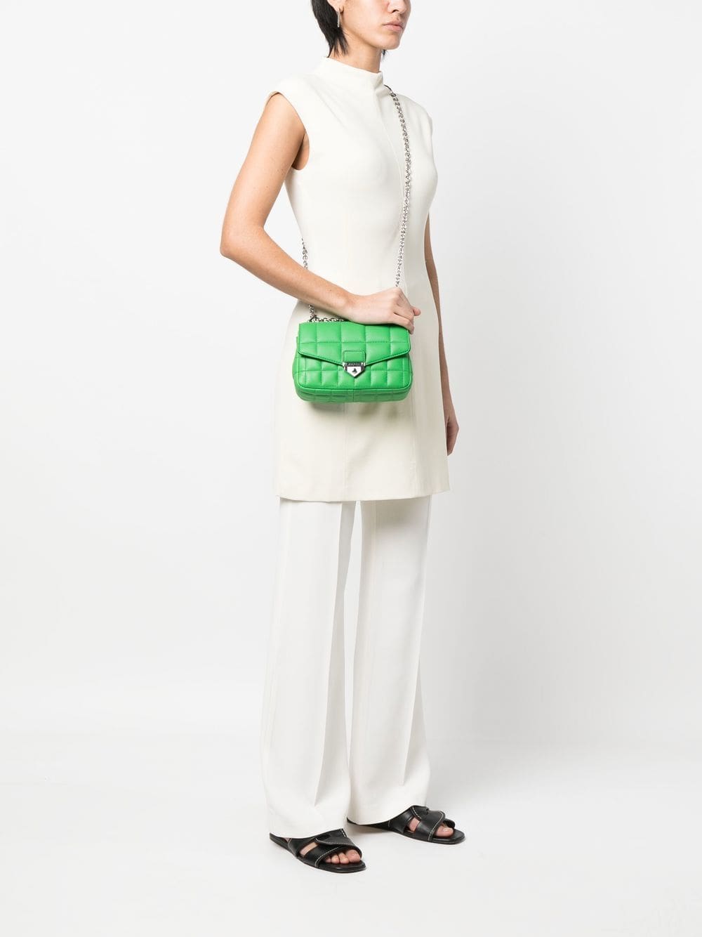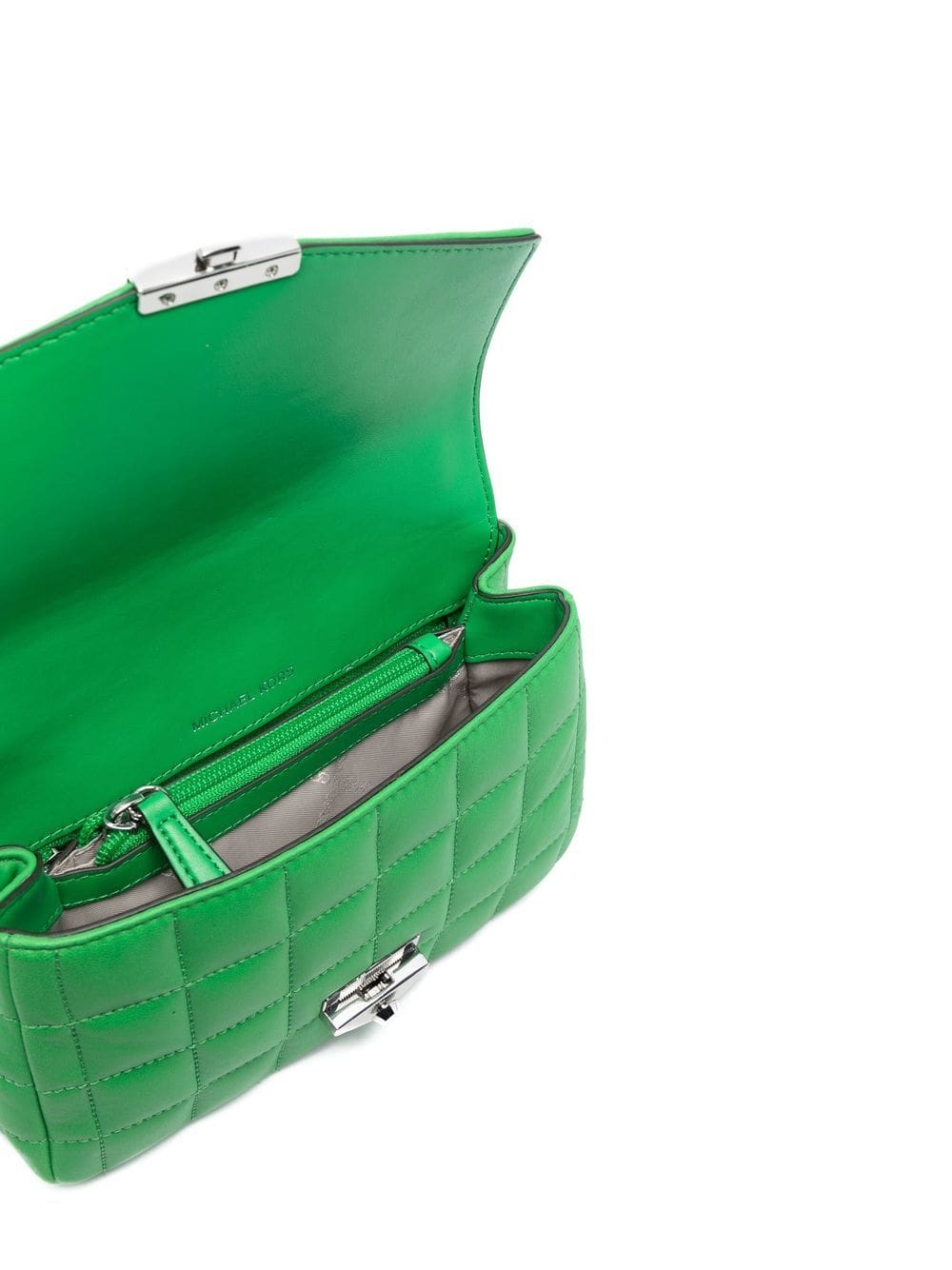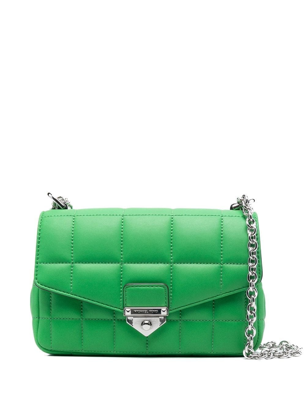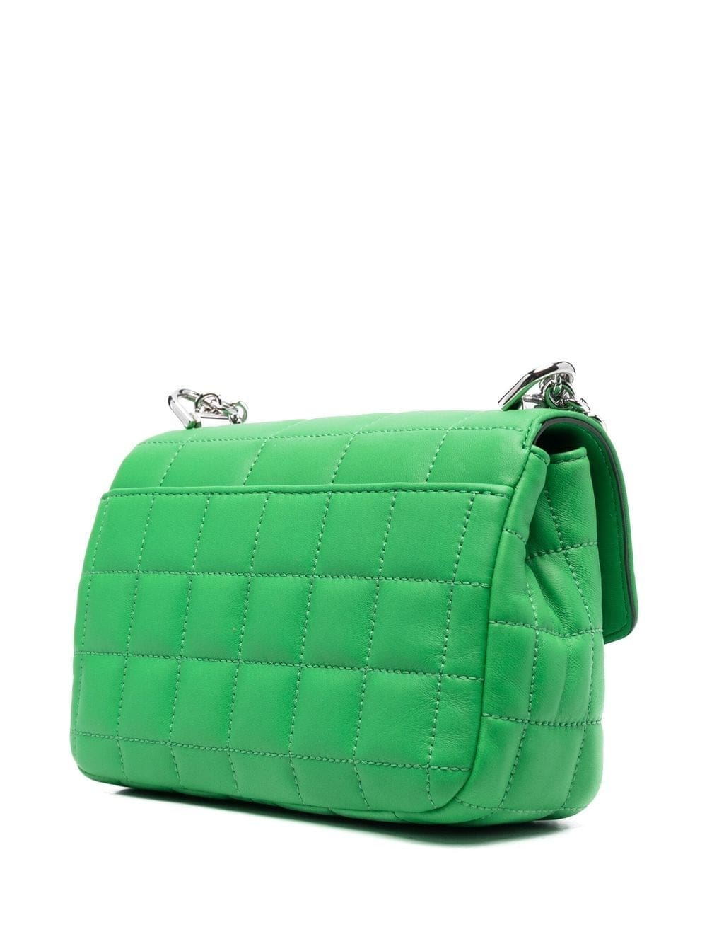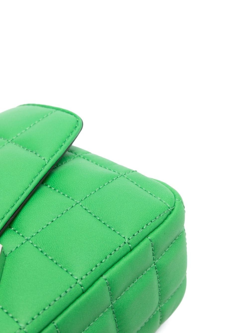 bright green calf leather quilted finish silver-tone hardware engraved logo foldover top internal zip-fastening pocket chain-link shoulder strap