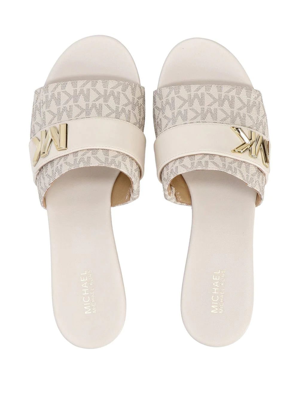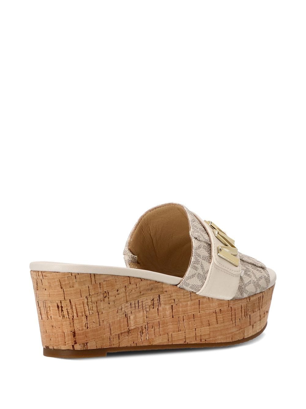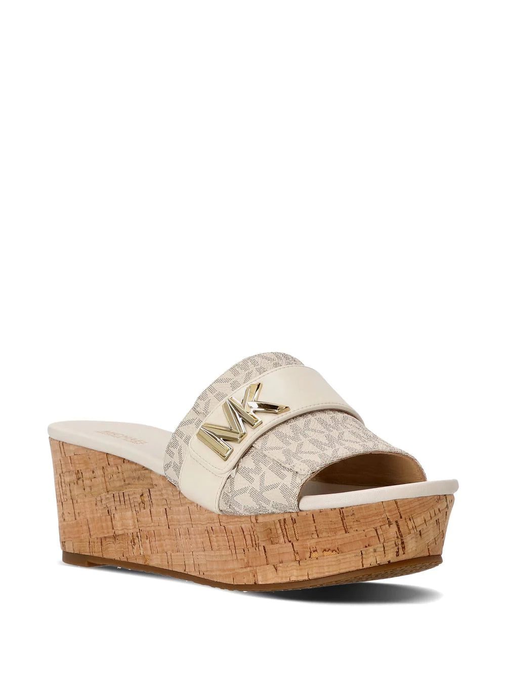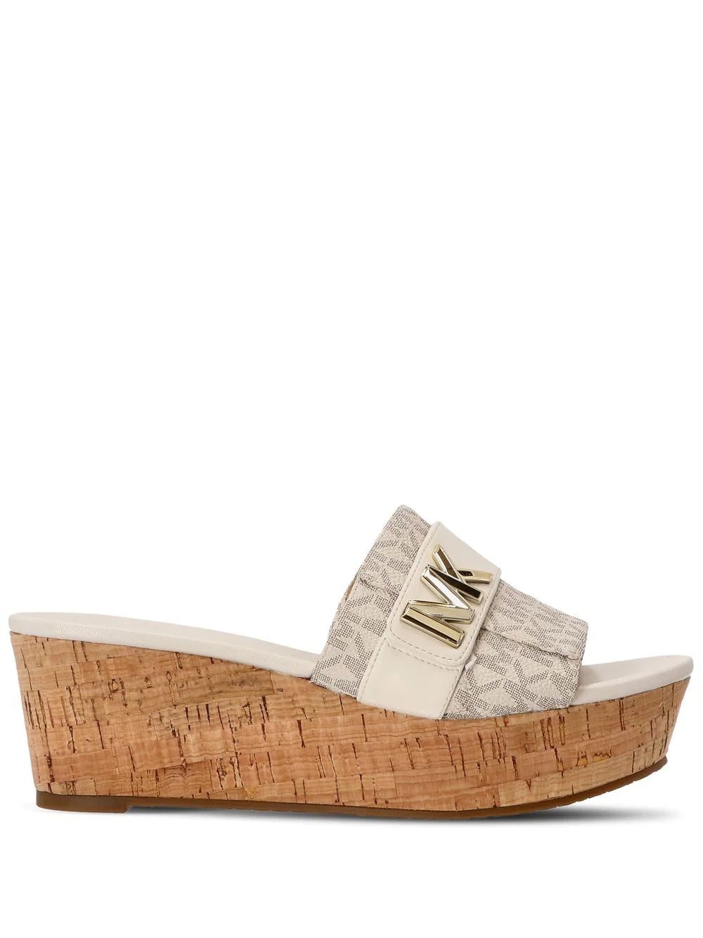 Jilly platform sandals from MICHAEL KORS featuring chalk white, leather, monogram pattern, logo plaque, open toe and platform sole.