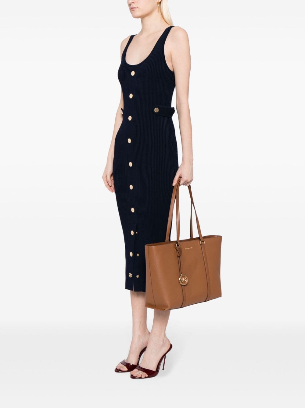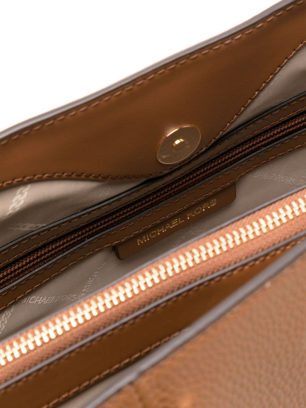 - gold-tone logo plaque