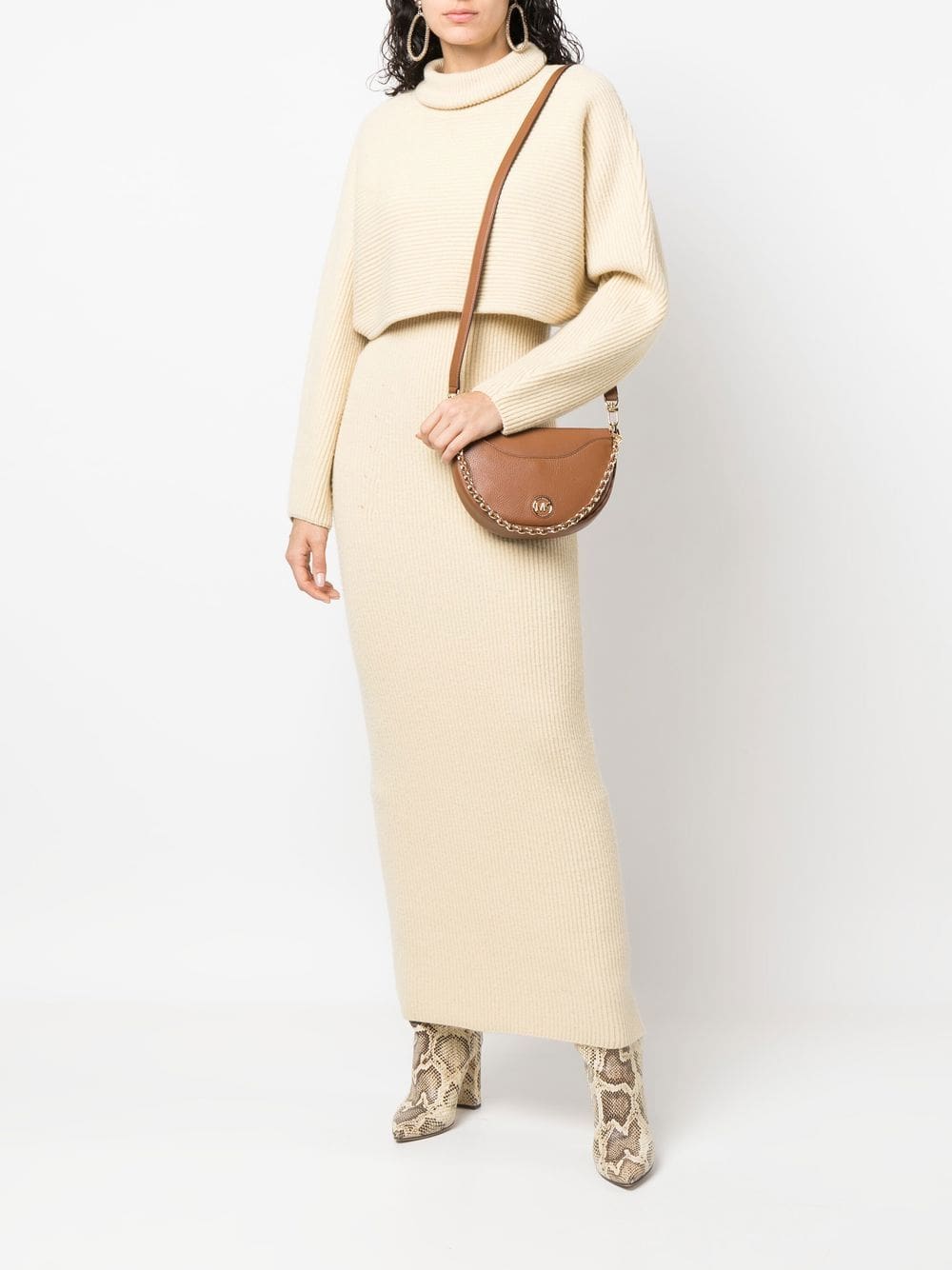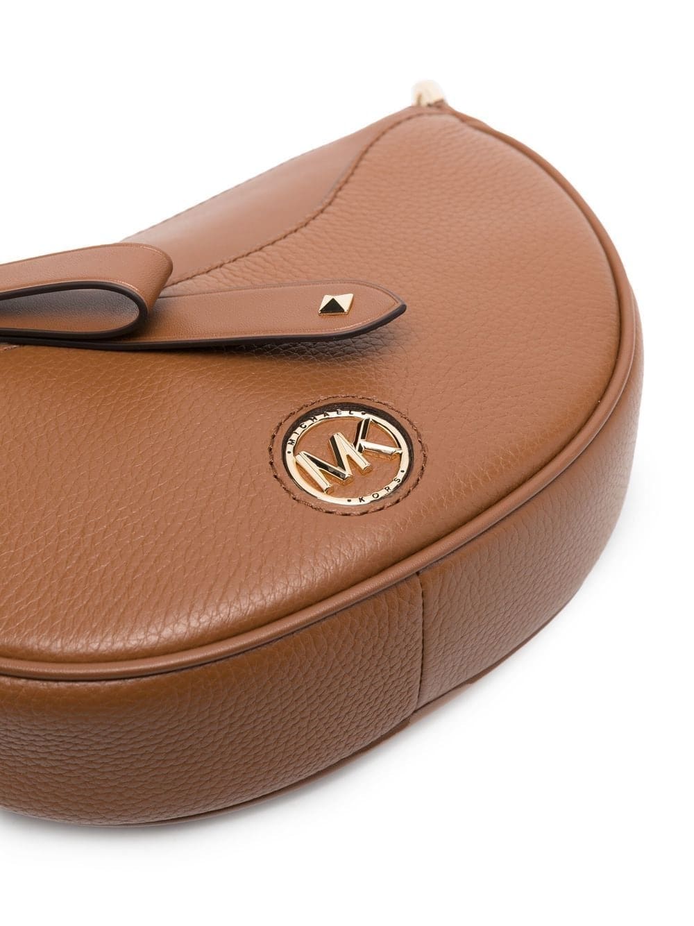 logo-embellished tote bag from MICHAEL MICHAEL KORS featuring brown, gold-tone logo plaque, curved corners, top zip fastening, adjustable detachable shoulder strap and optional chain strap.