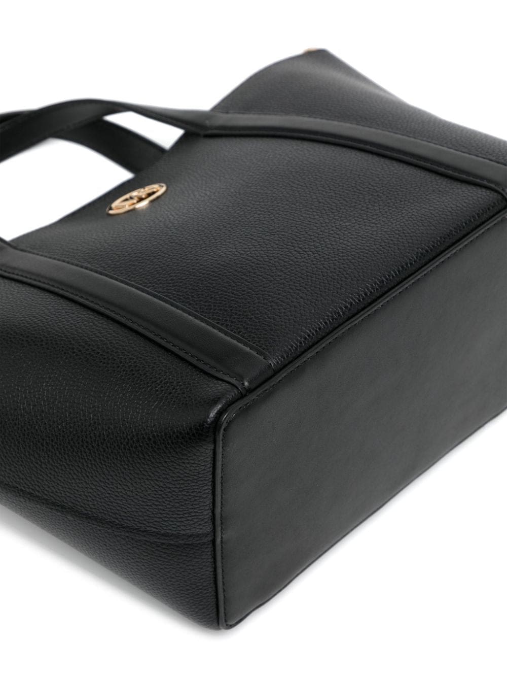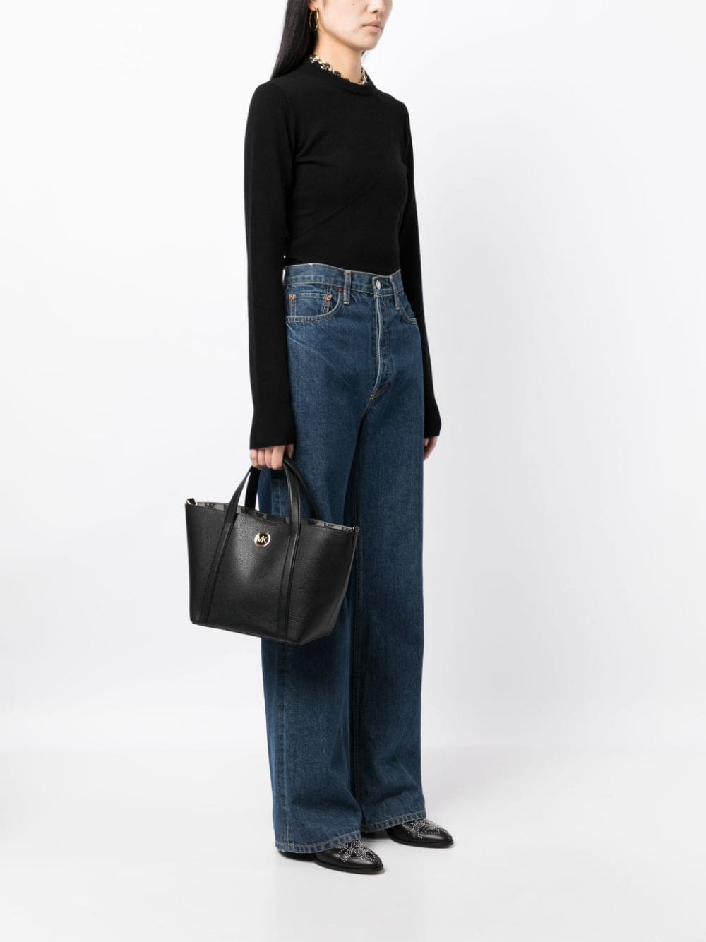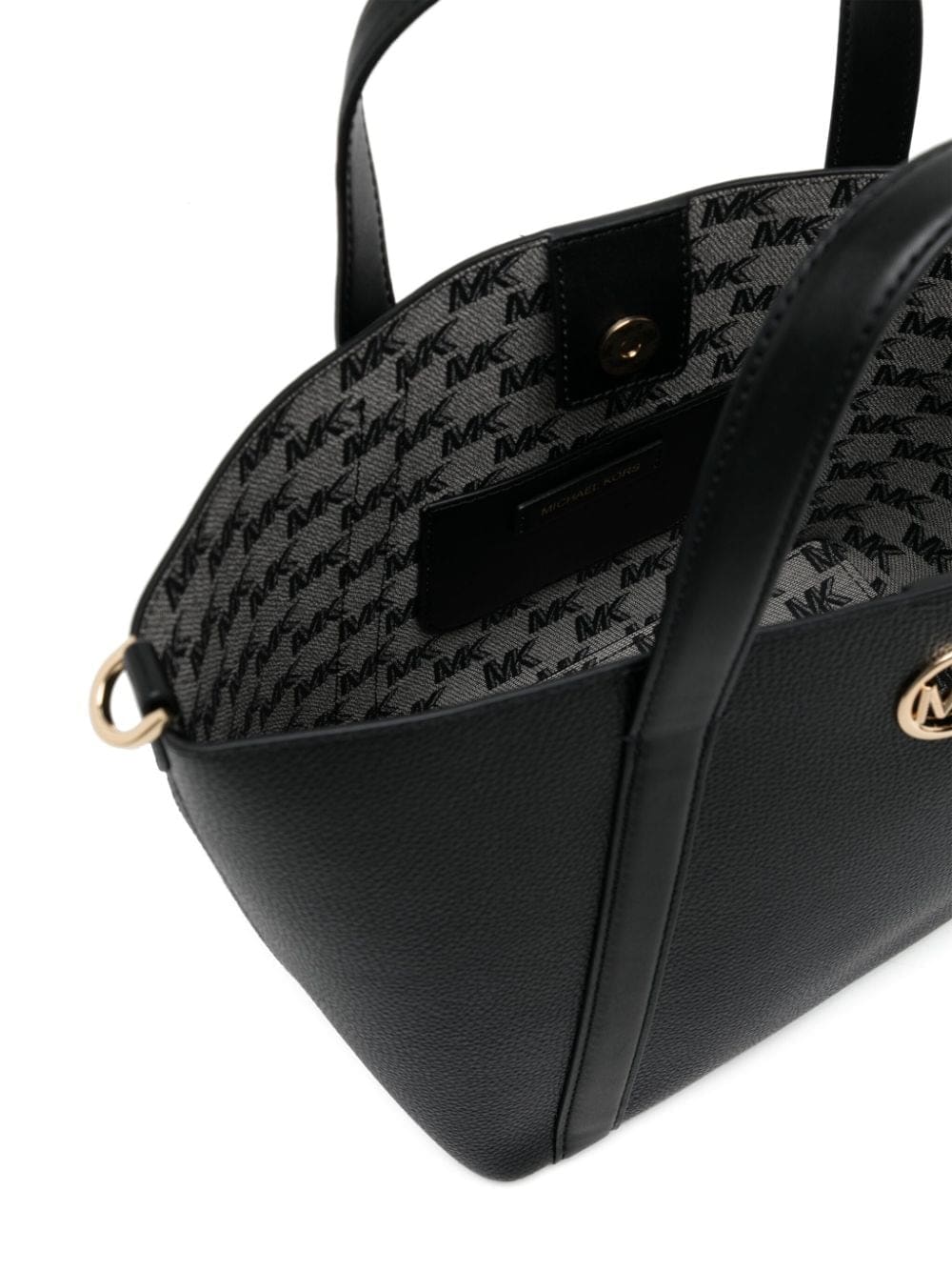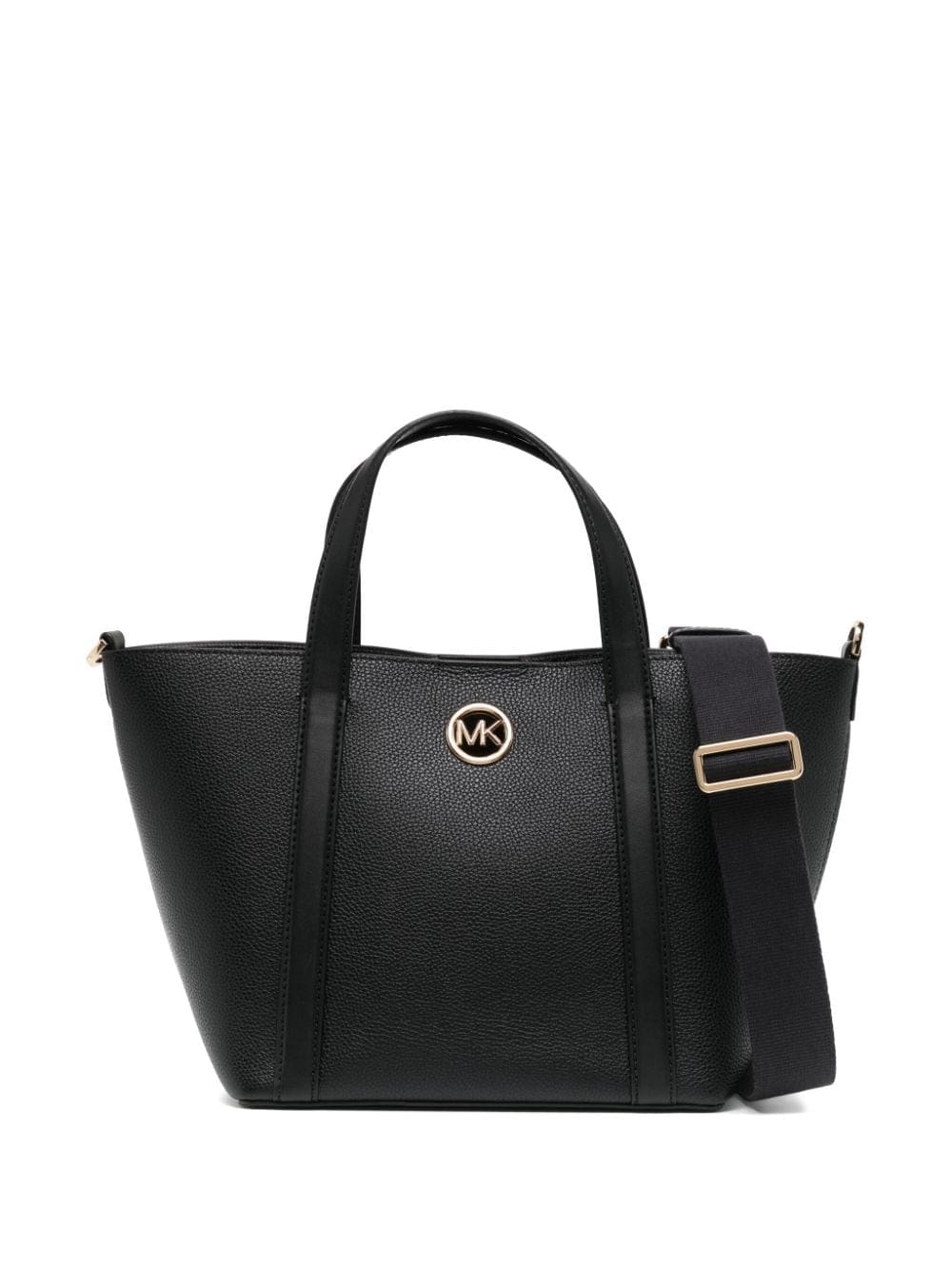 Michael Kors' hadleigh bag is the epitome of funtionality and refinement. Crafted from supple leather in black, it has a spacious compartment to hold any belonging. A gold-tone logo plaque brands the accessory.