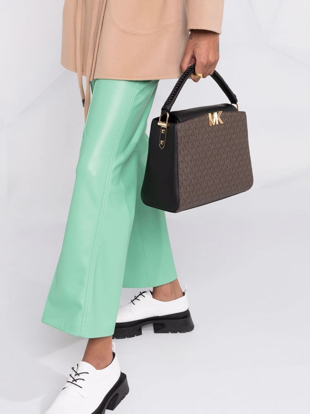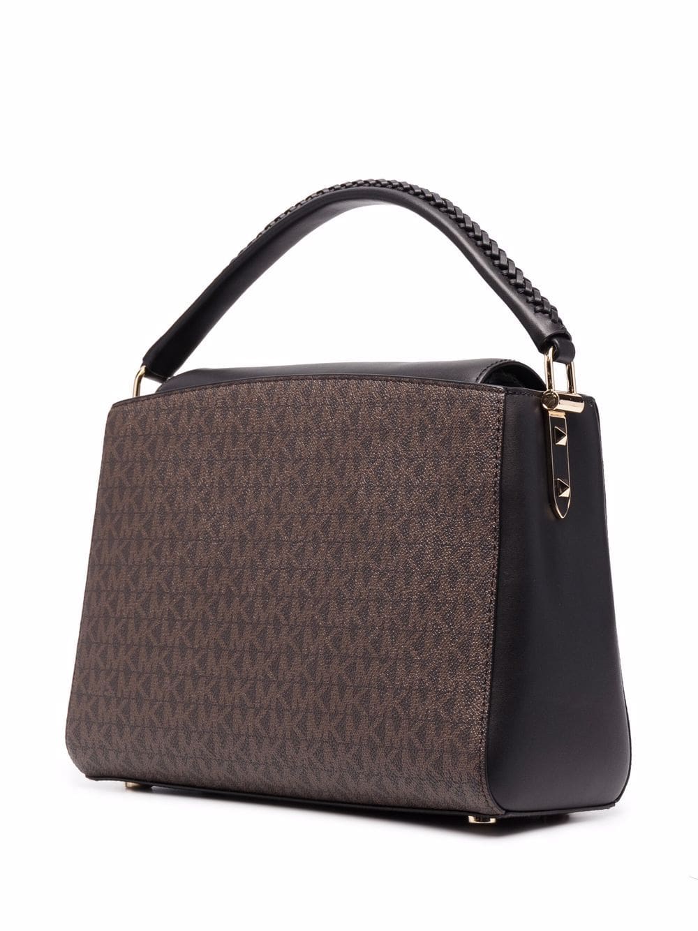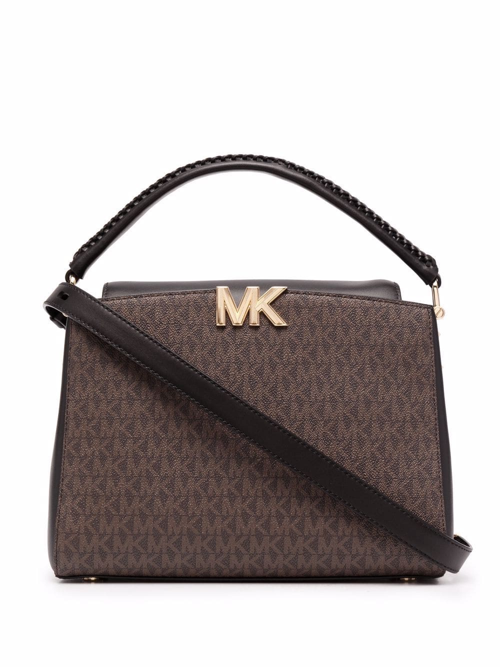 brown monogram print gold-tone logo plaque gold-tone hardware single braided top handle detachable fabric and chain-link shoulder strap
