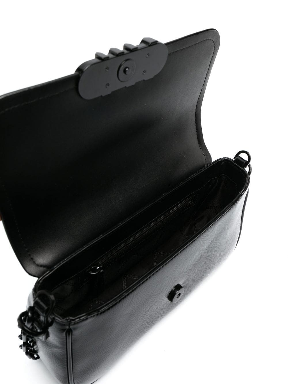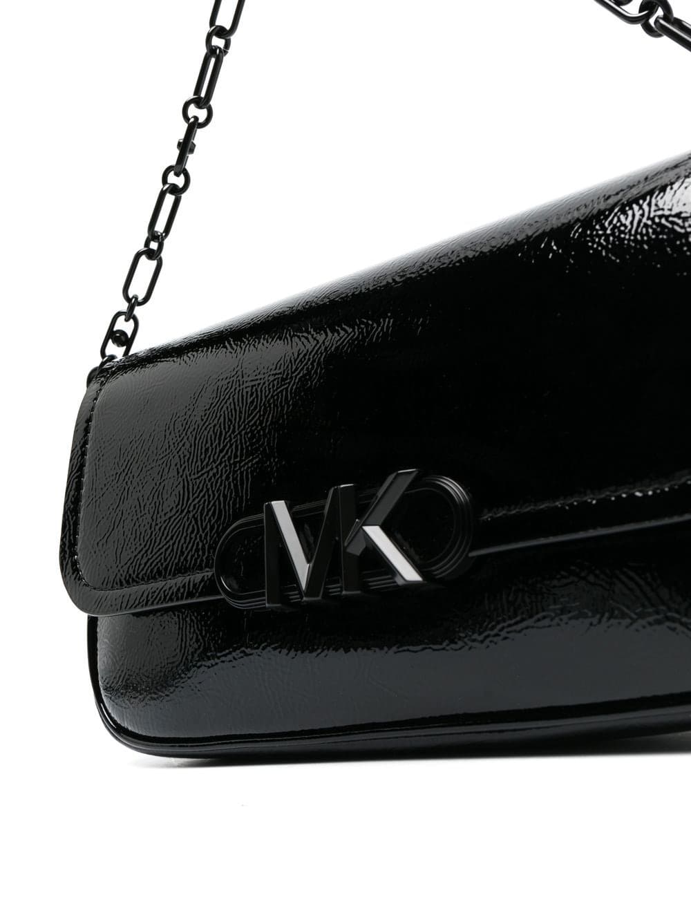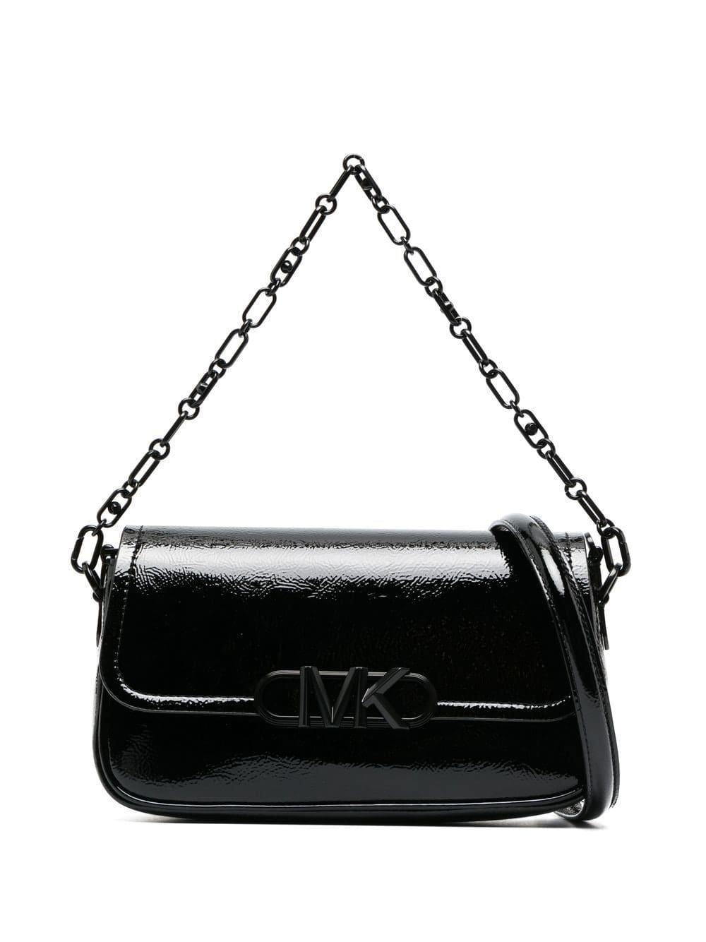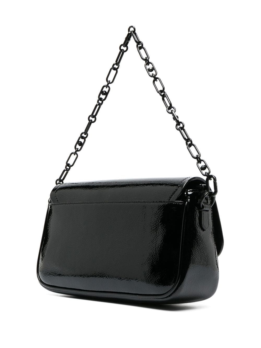 black calf leather logo plaque foldover top with magnetic fastening main compartment internal zip-fastening pocket single chain-link top handle adjustable detachable shoulder strap