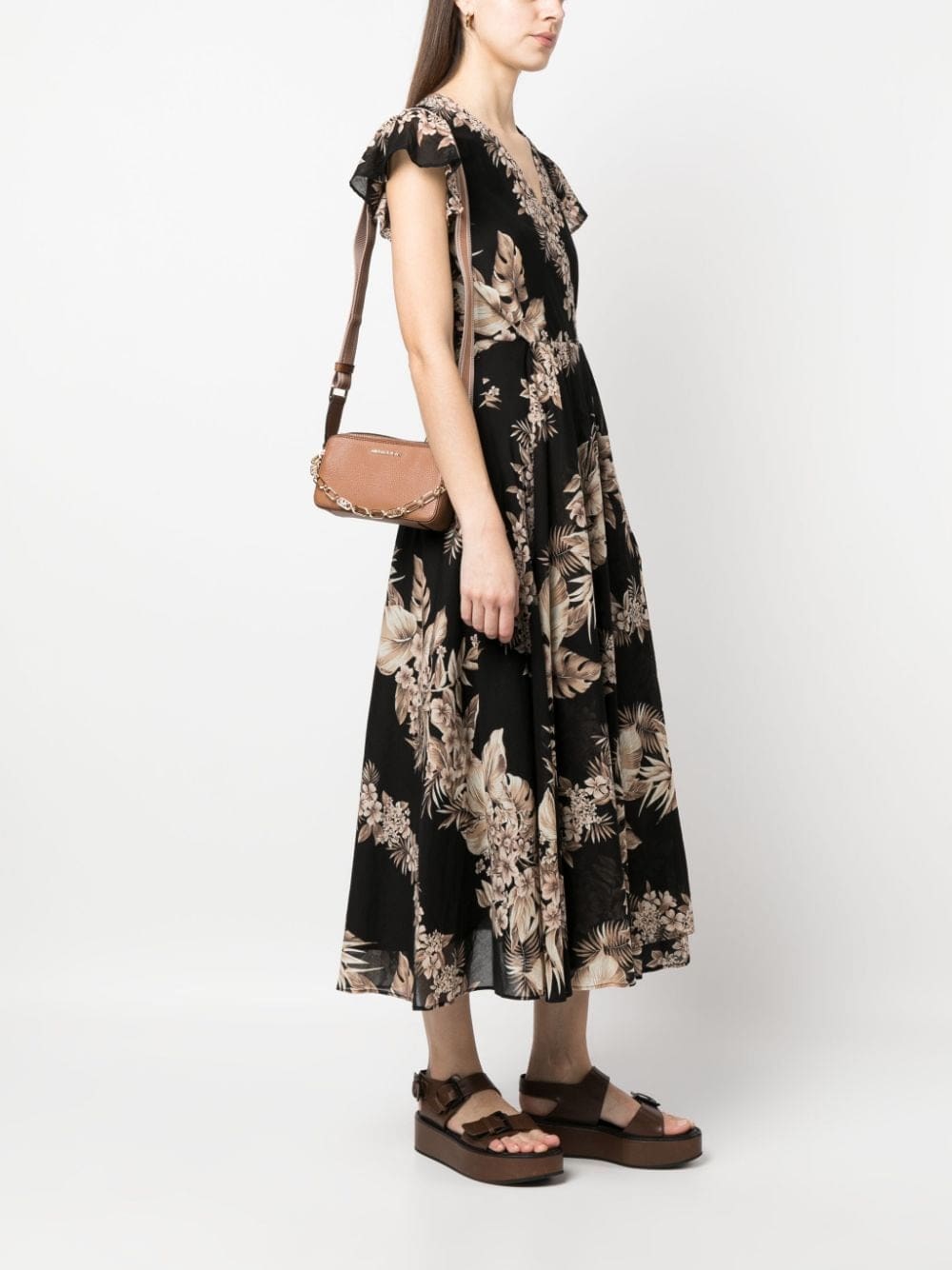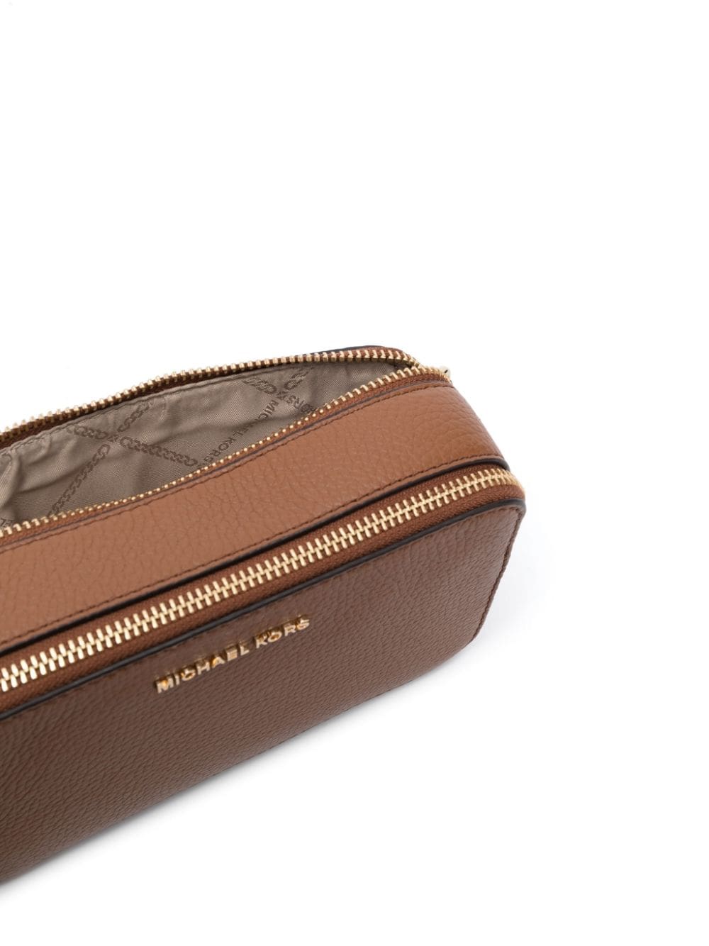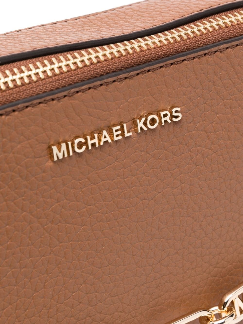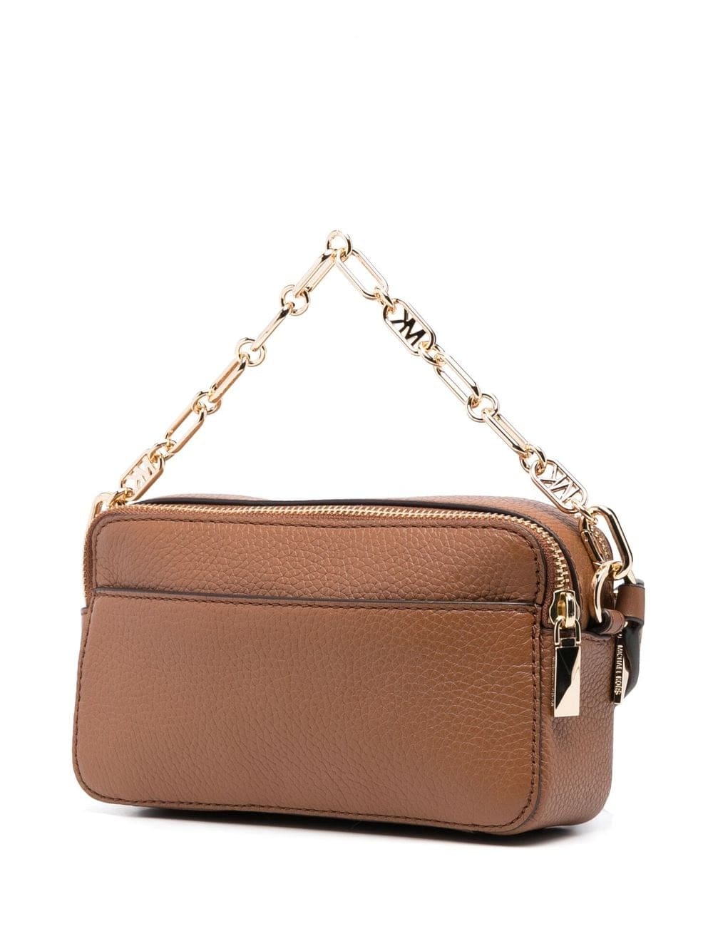 chamoisee brown calf leather pebbled texture gold-tone hardware gold-tone logo lettering logo detailing chain-link shoulder strap adjustable detachable shoulder strap top zip fastening partitioned compartment