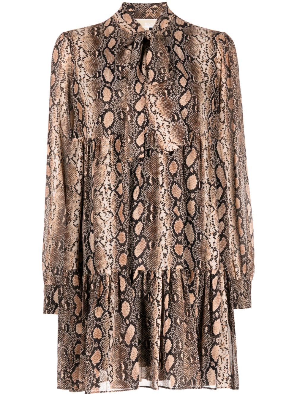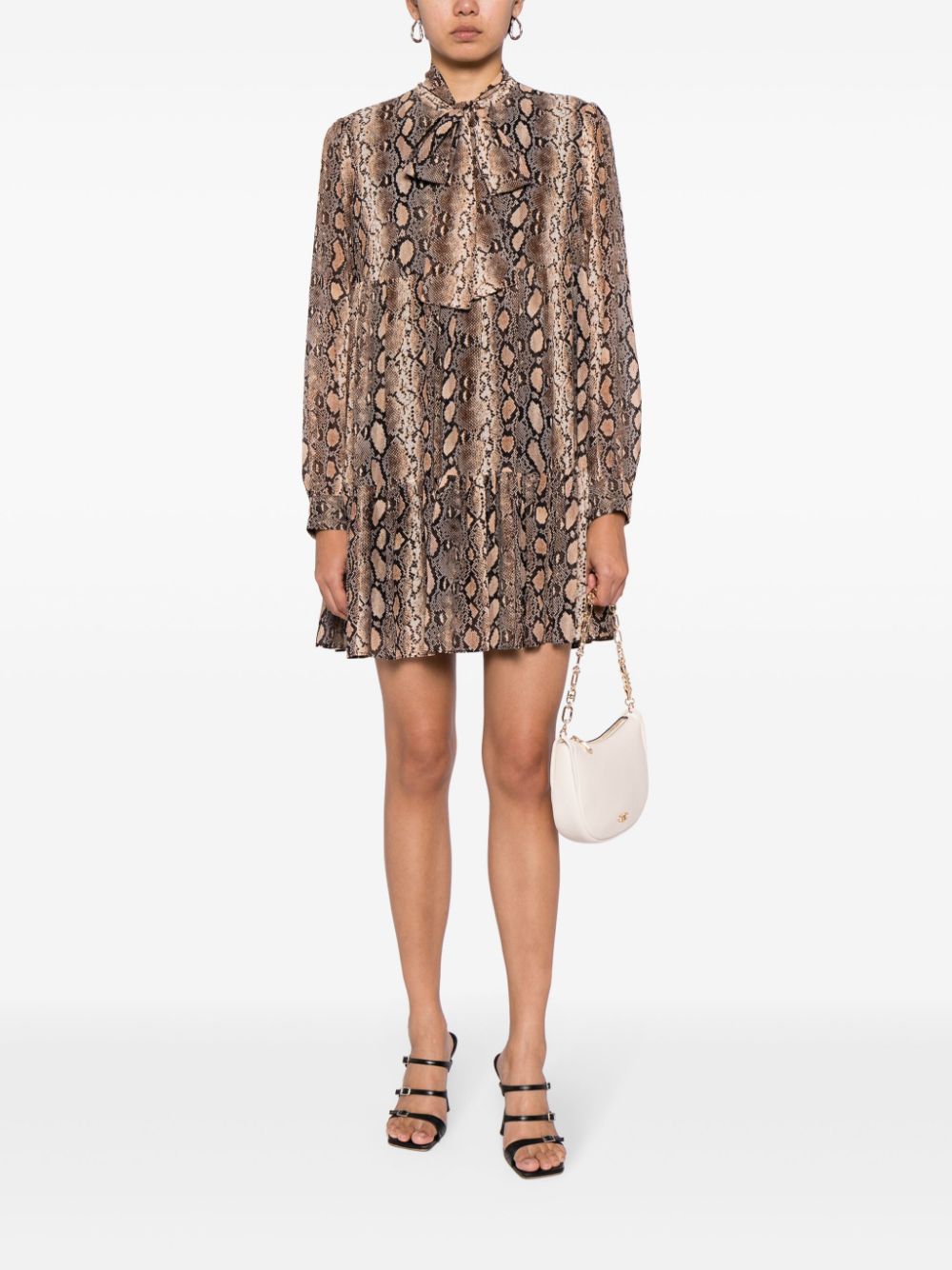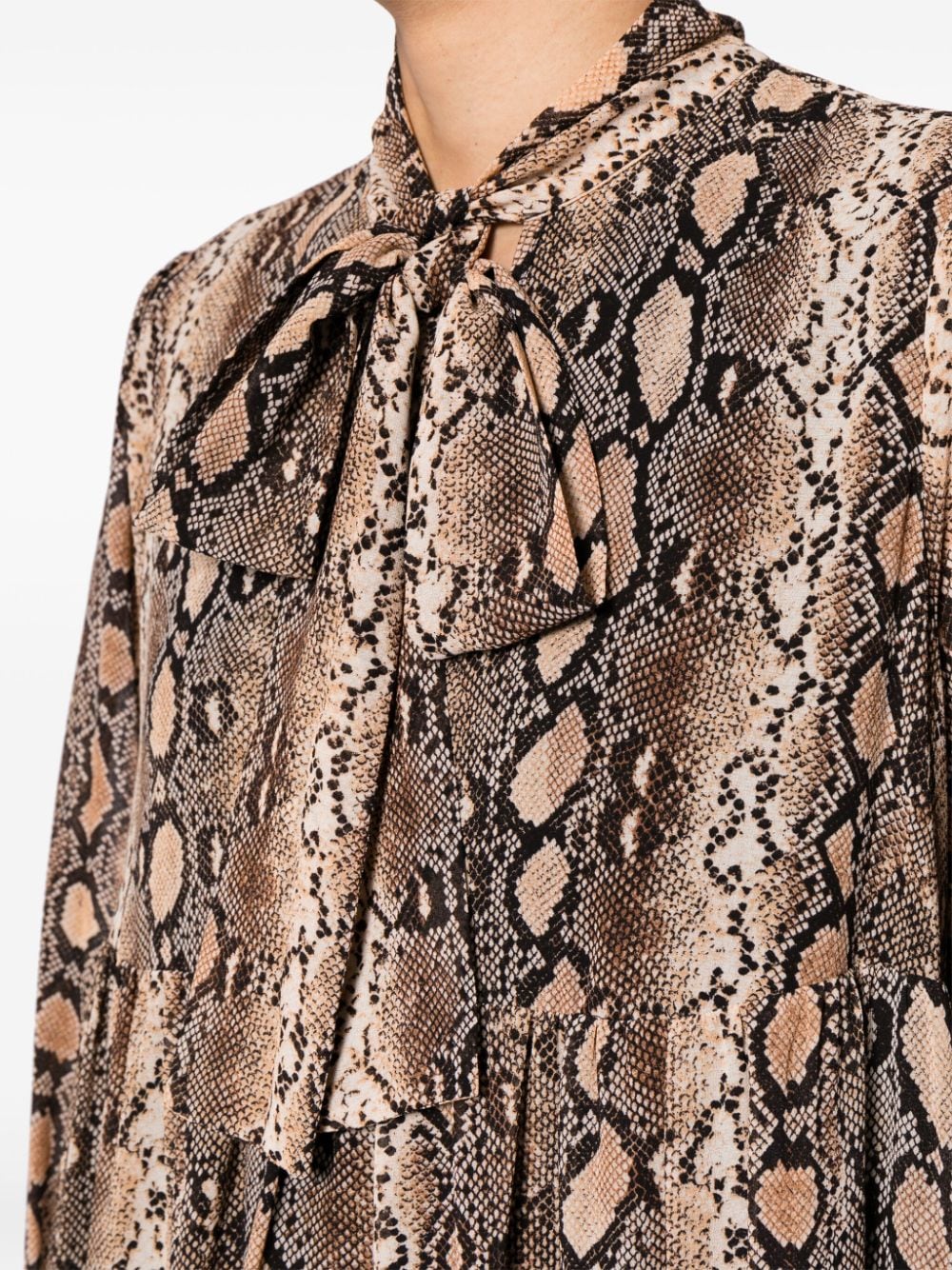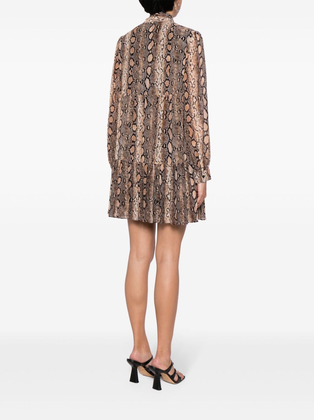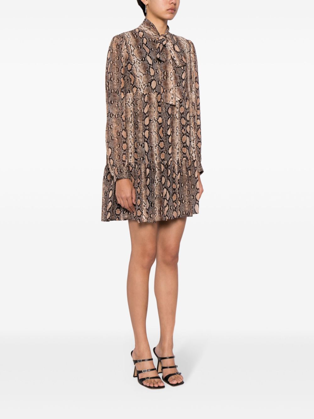 snakeskin-print pussy-bow minidress