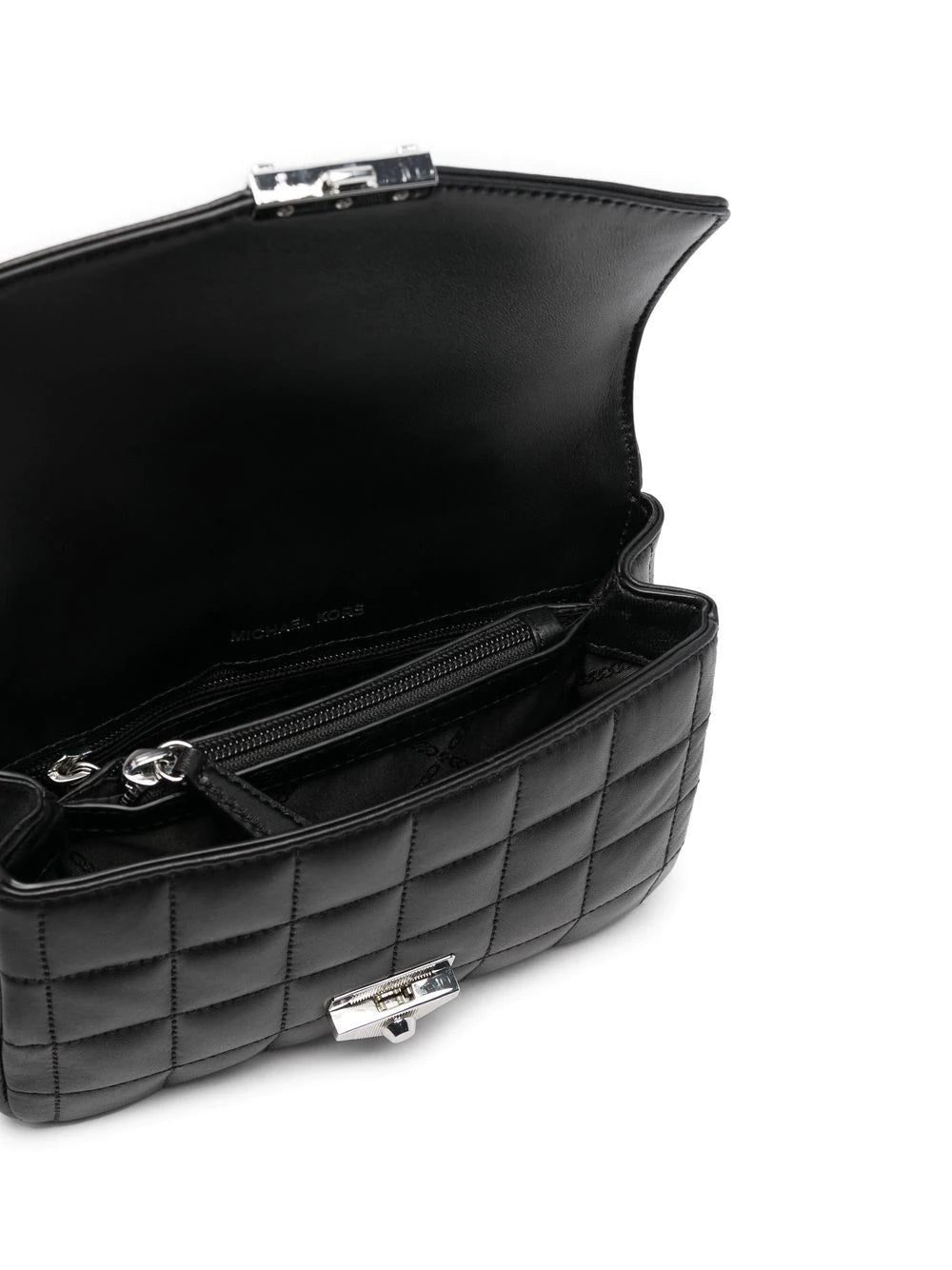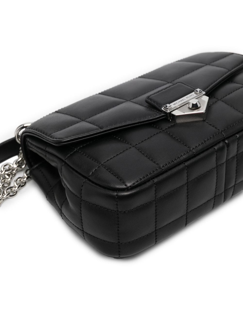 The Michael Kors edit for SS22 includes their signature Soho quilted shoulder bag, which is seen here in a practical black leather construction.