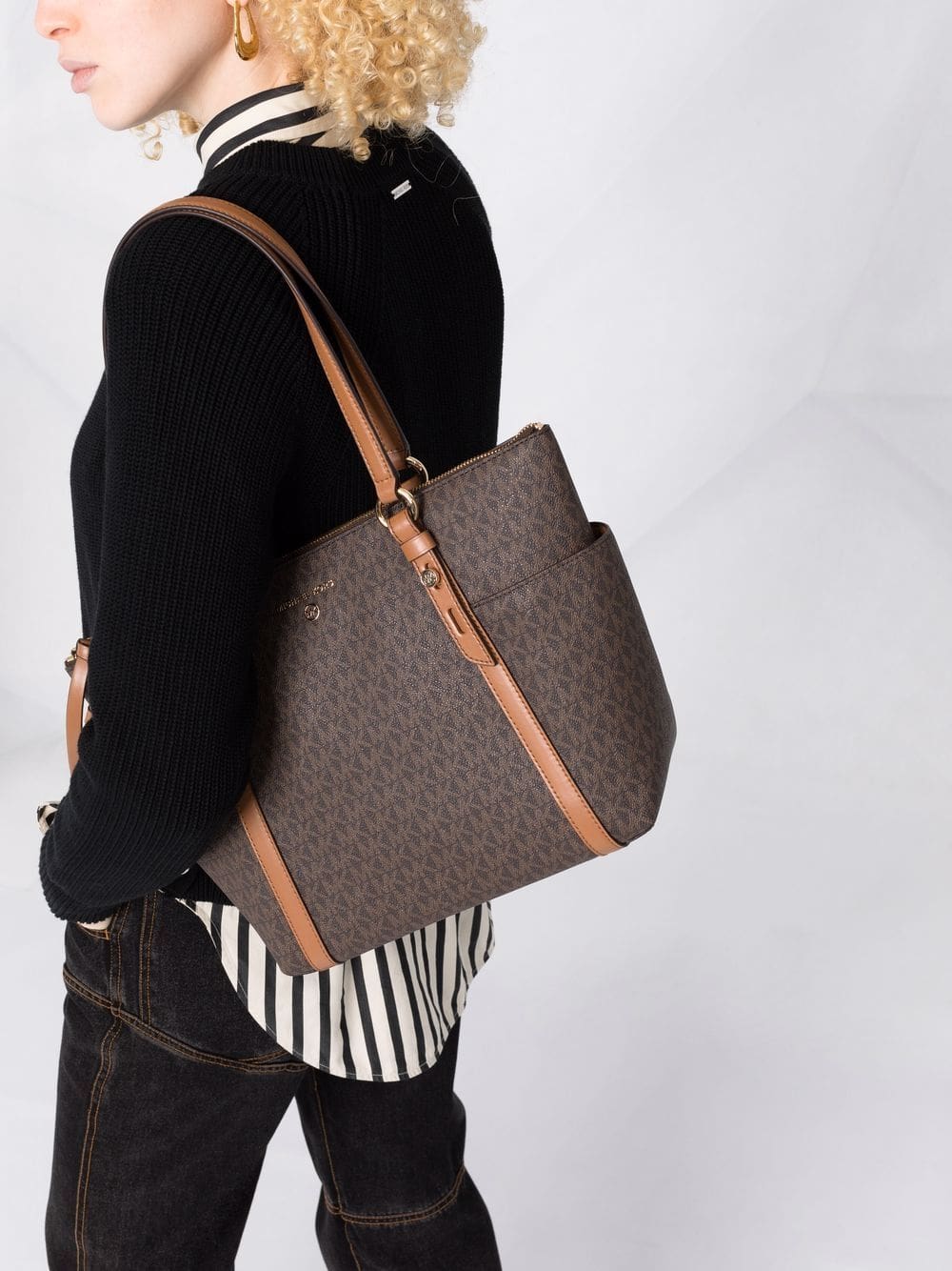 brown/acorn calf leather gold-tone hardware monogram print top zip fastening internal zip-fastening pocket two rounded top handles