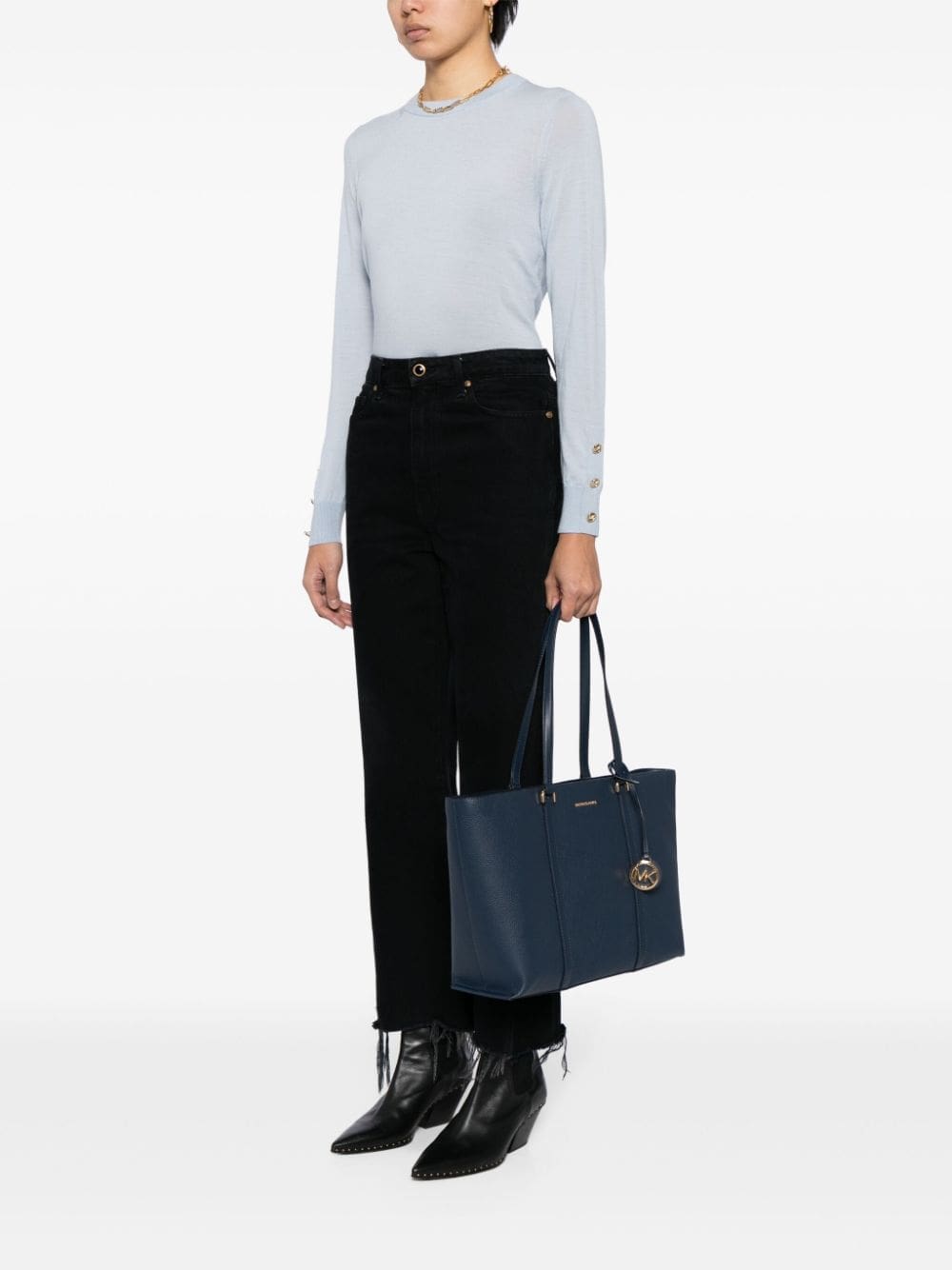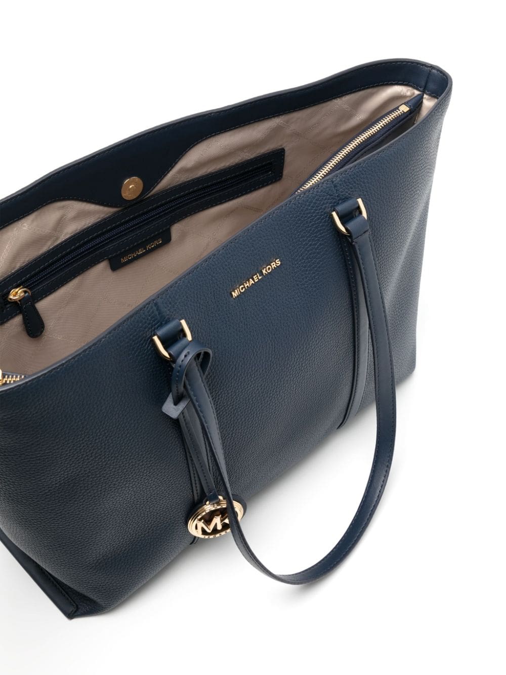 - gold-tone logo plaque