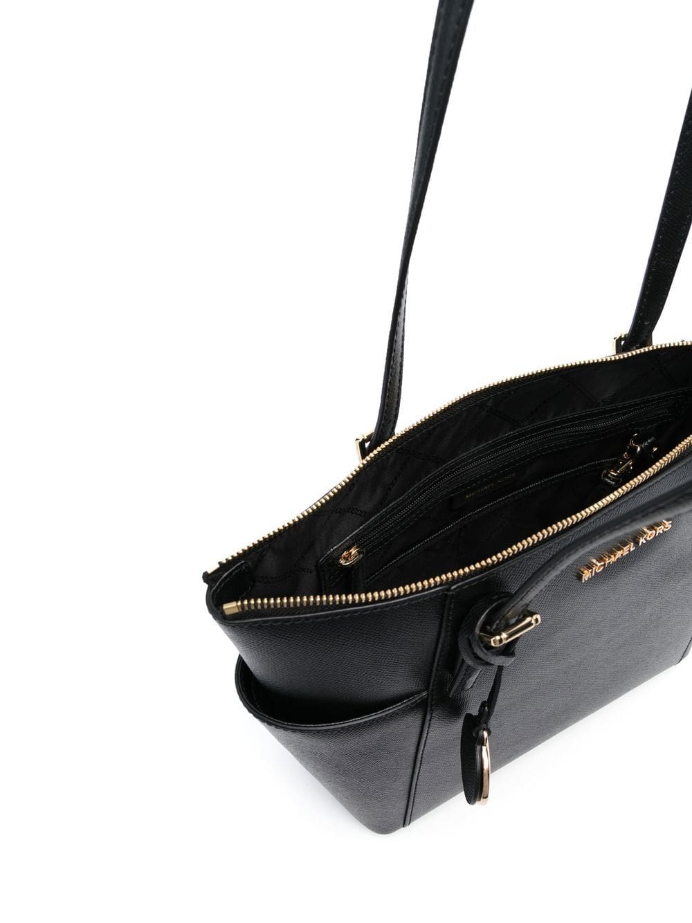 Black leather trapeze shoulder bag from Michael Michael Kors.