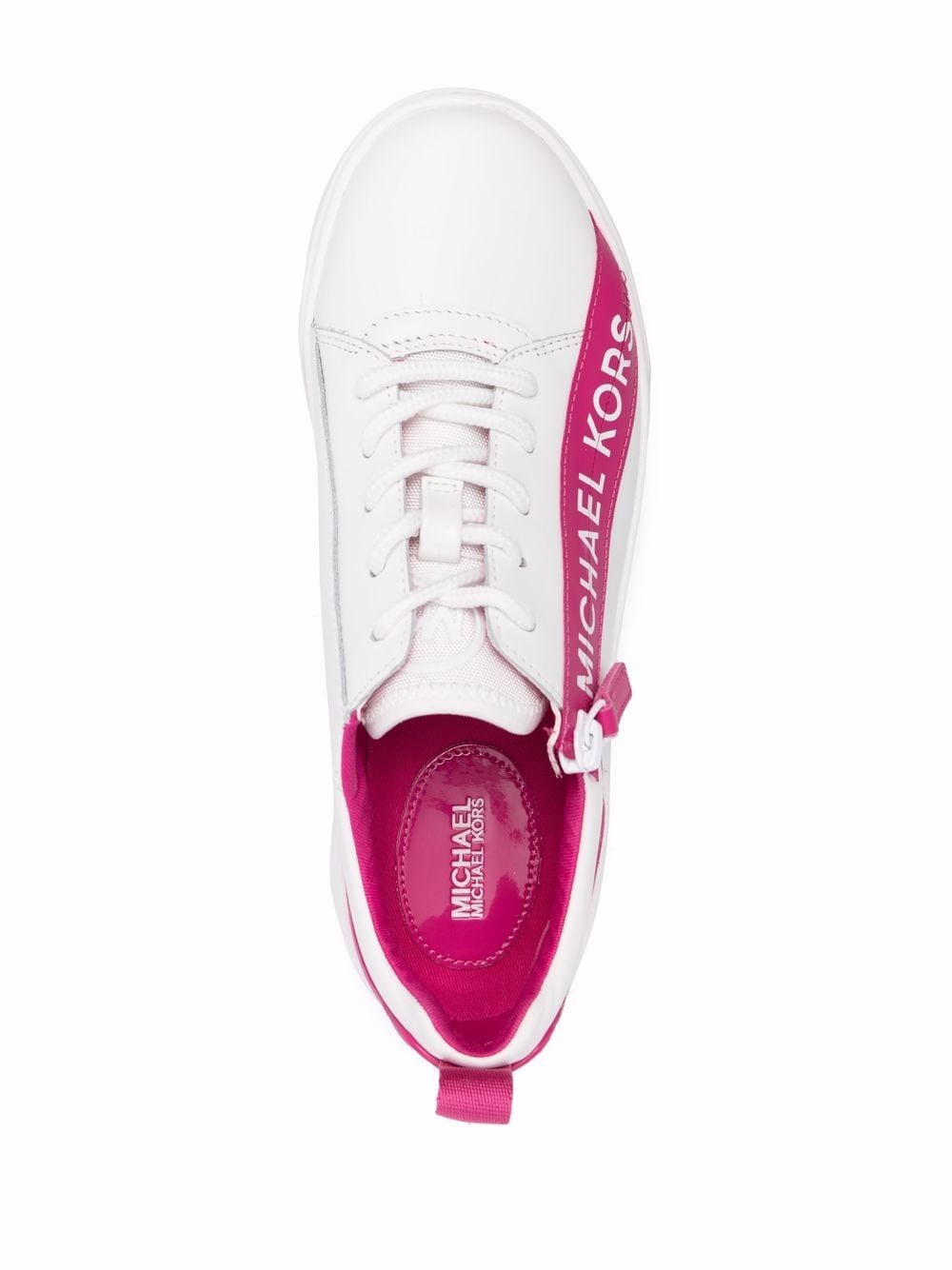 white/pink leather two-tone design pull-tab at the heel logo print to the side short side zip fastening round toe front lace-up fastening branded insole flat rubber sole