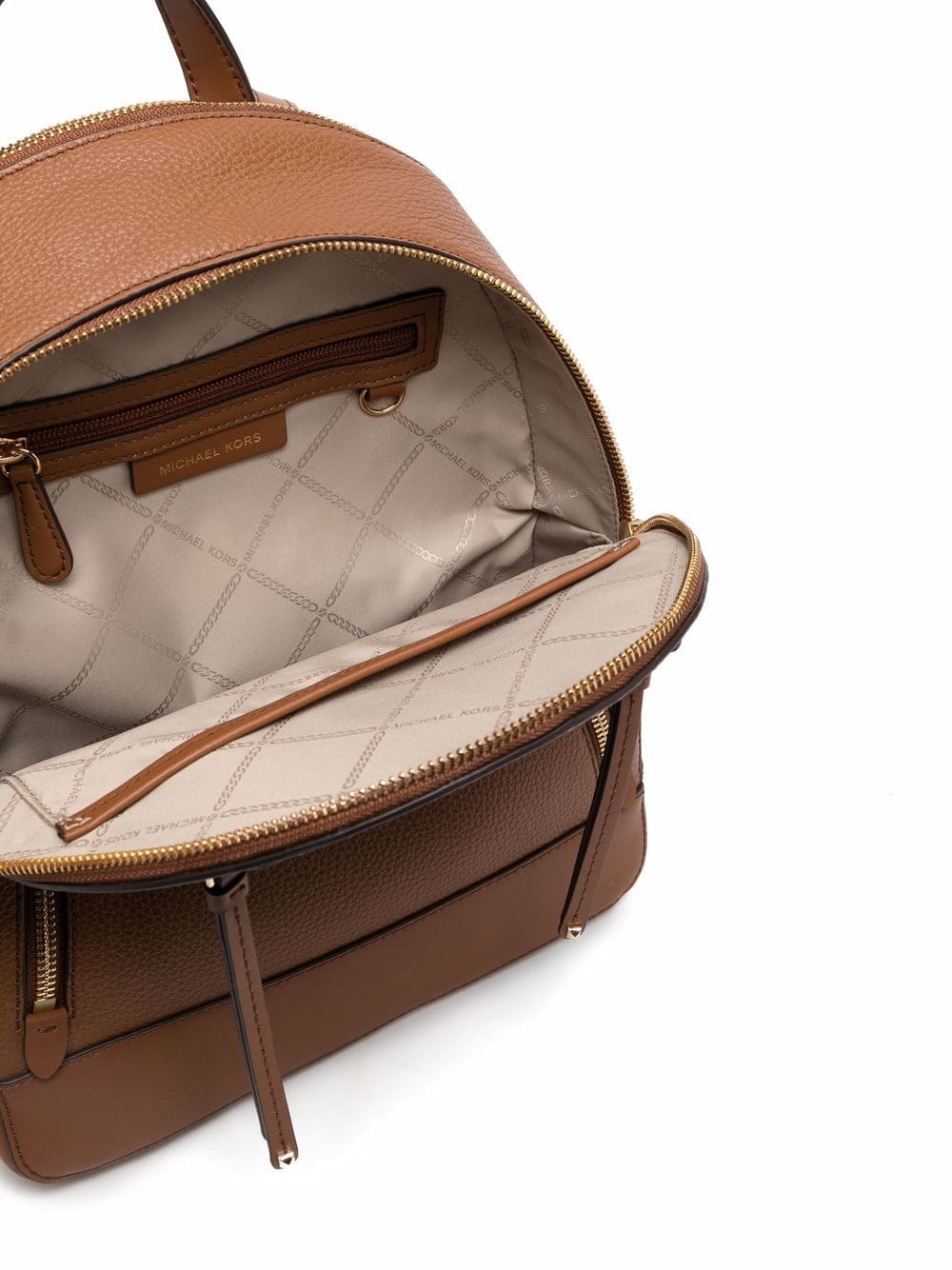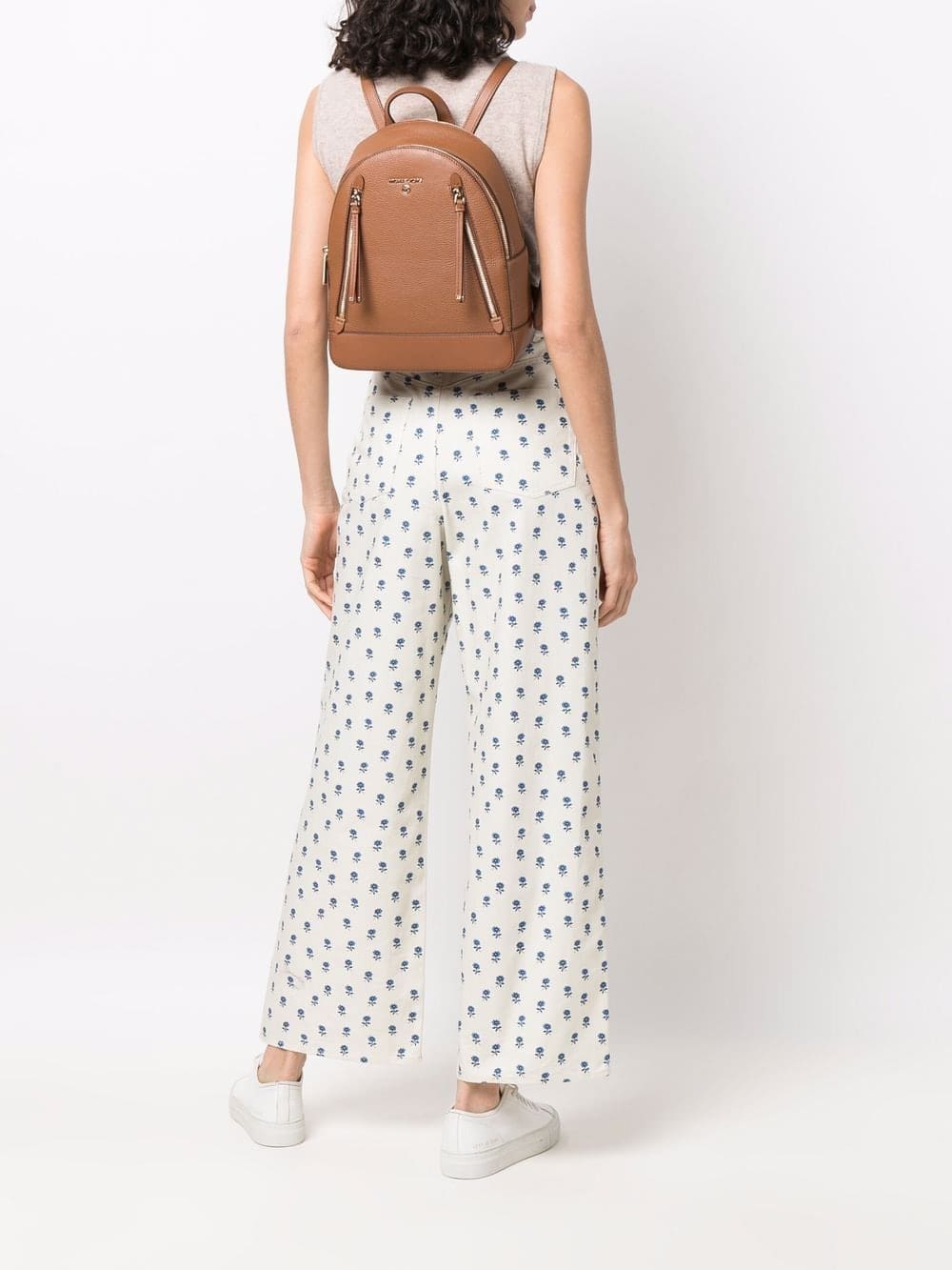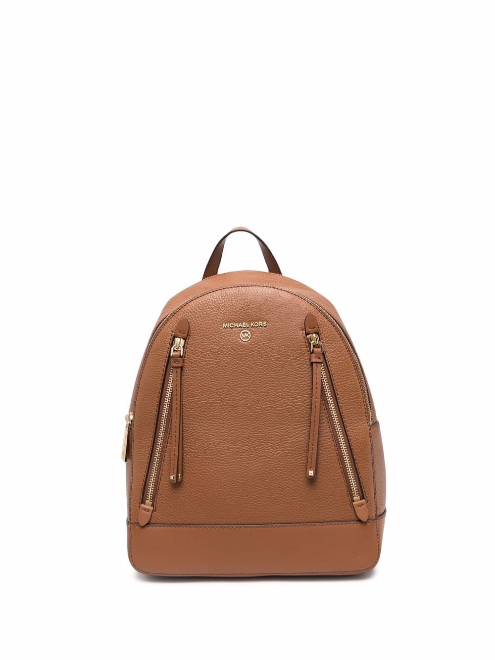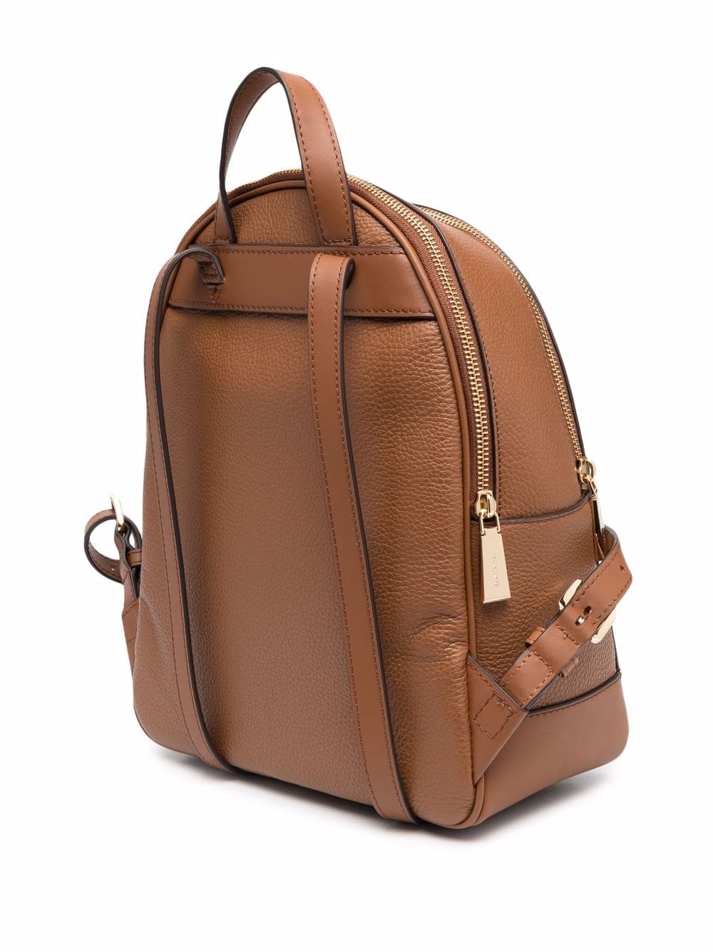 brown leather gold-tone logo plaque pebbled texture gold-tone hardware all-around zip fastening adjustable leather straps main compartment two rear zip-fastening pockets internal zip pocket logo-print lining