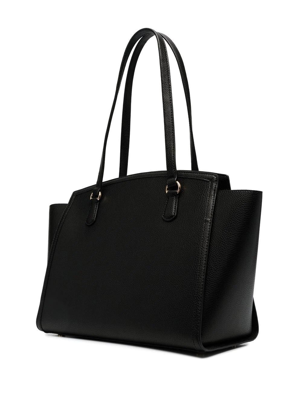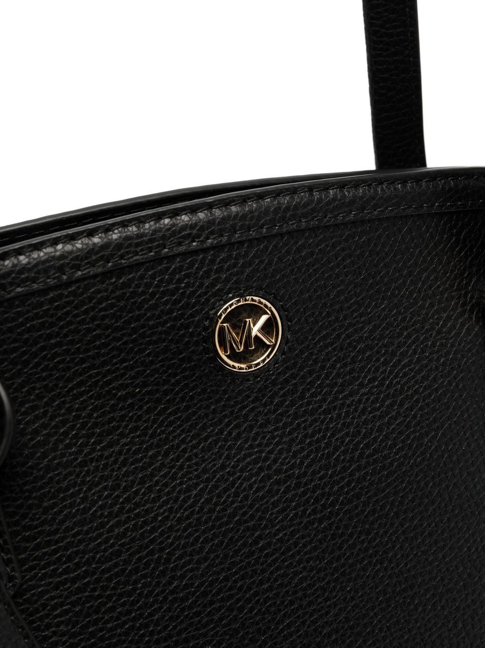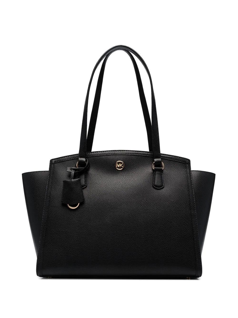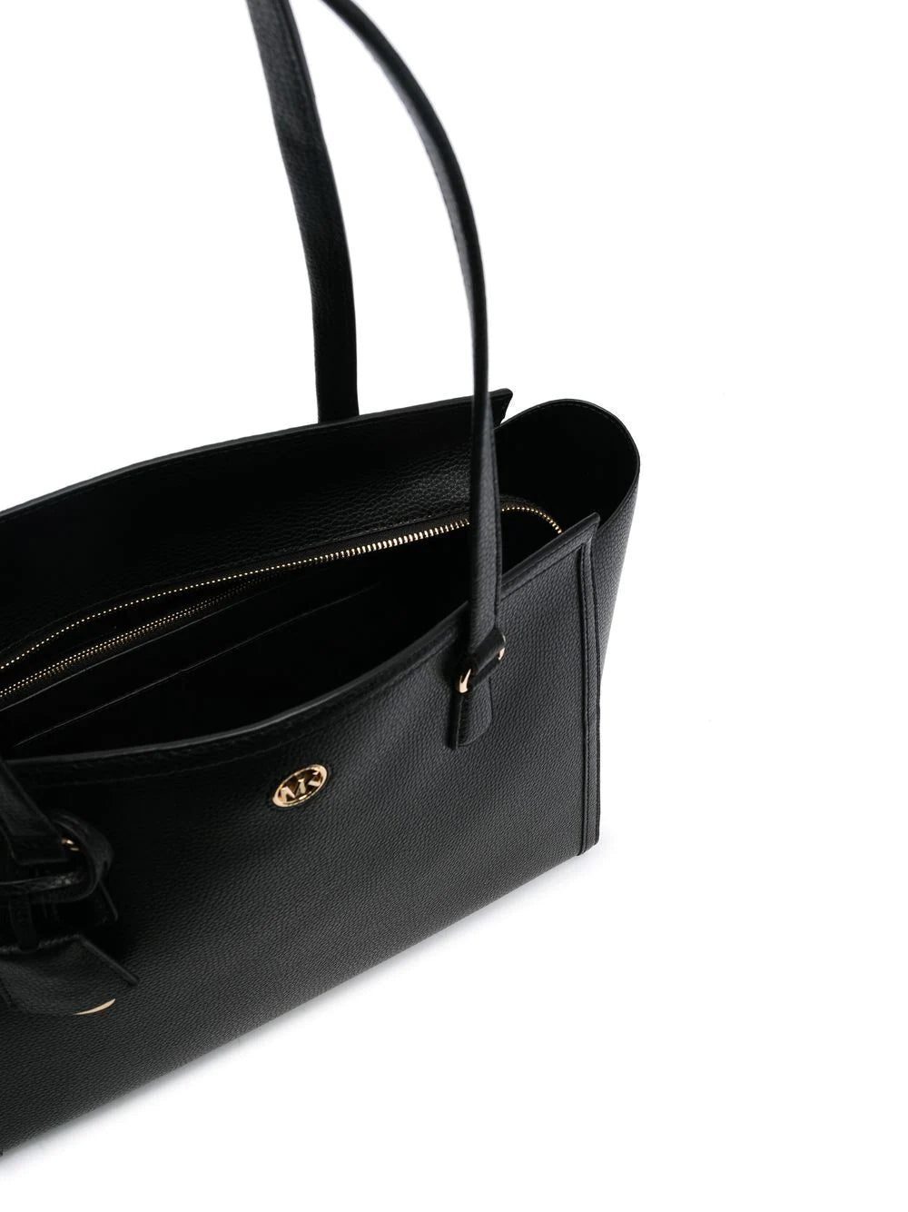 Structured shapes and elevated textures take centre stage at Michael Michael Kors for SS23. Crafted from a combination of smooth and pebbled leather, this black tote bag is decorated with a gold-tone logo plaque for a signature branded finish.