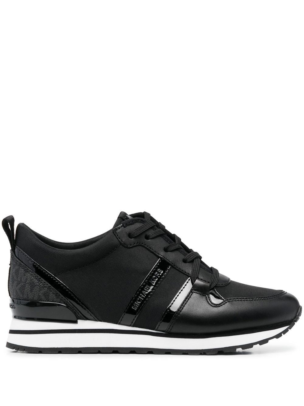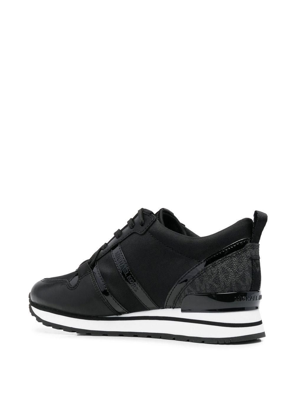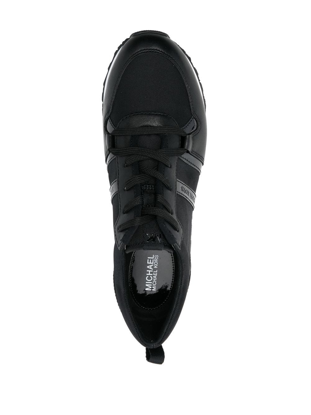 black canvas embossed logo to the side side stripe detailing tonal stitching almond toe front lace-up fastening pull-tab at the heel branded insole flat rubber sole