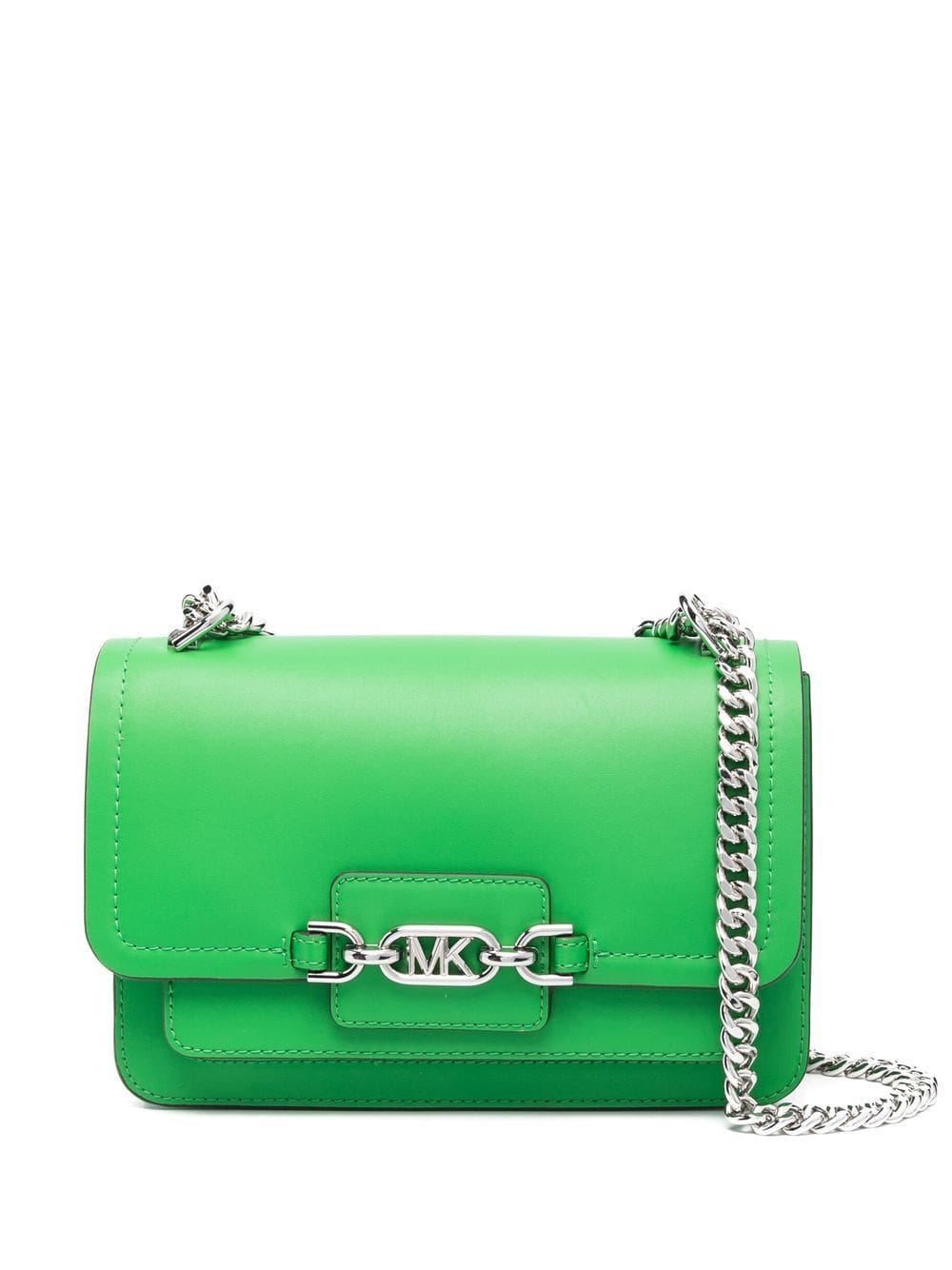 Crafted from supple calf leather, the Heather crossbody bag from Michael Kors is introduced in a vibrant green colourway for SS23. The compact accessory is detailed with silver-tone hardware and boasts a roomy main compartment fit to hold the essentials.