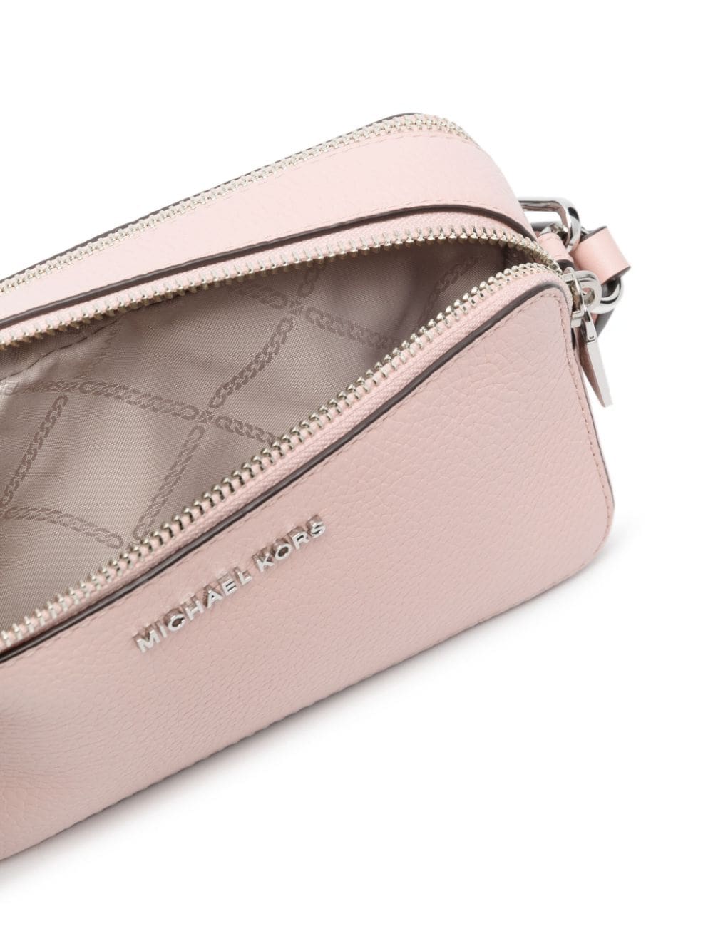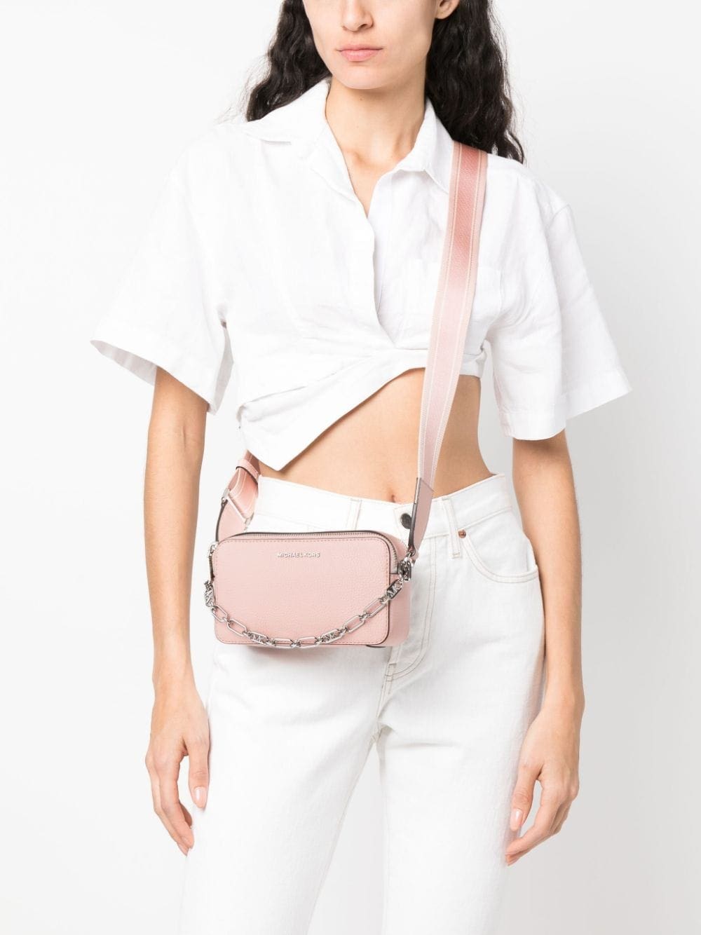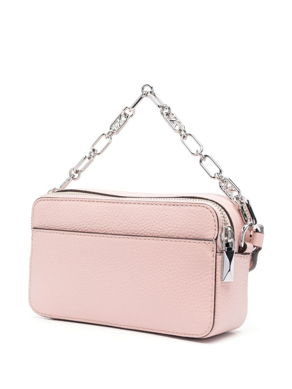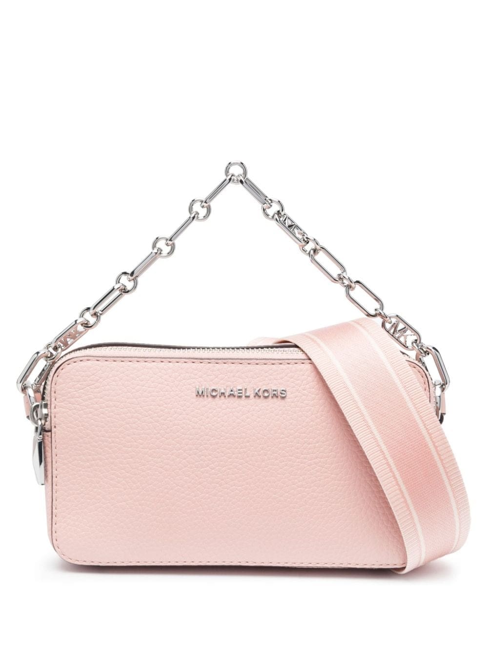 light pink calf leather grained texture logo patch to the front silver-tone hardware top zip fastening main compartment single chain-link top handle canvas strap adjustable detachable shoulder strap