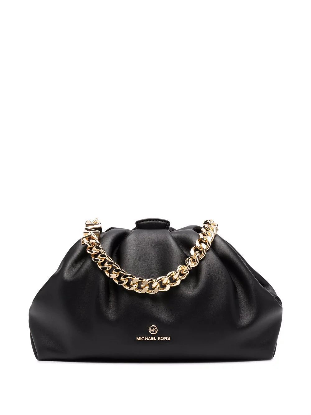 Michael Michael Kors adds an opulent finish to this clutch bag with gold-tone hardware. In a polished finish, this detailing contrasts against the black leather construction for a bold twist.