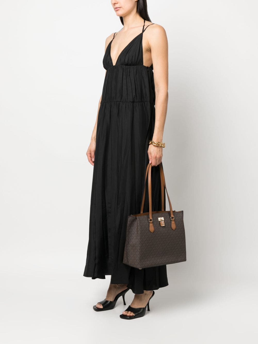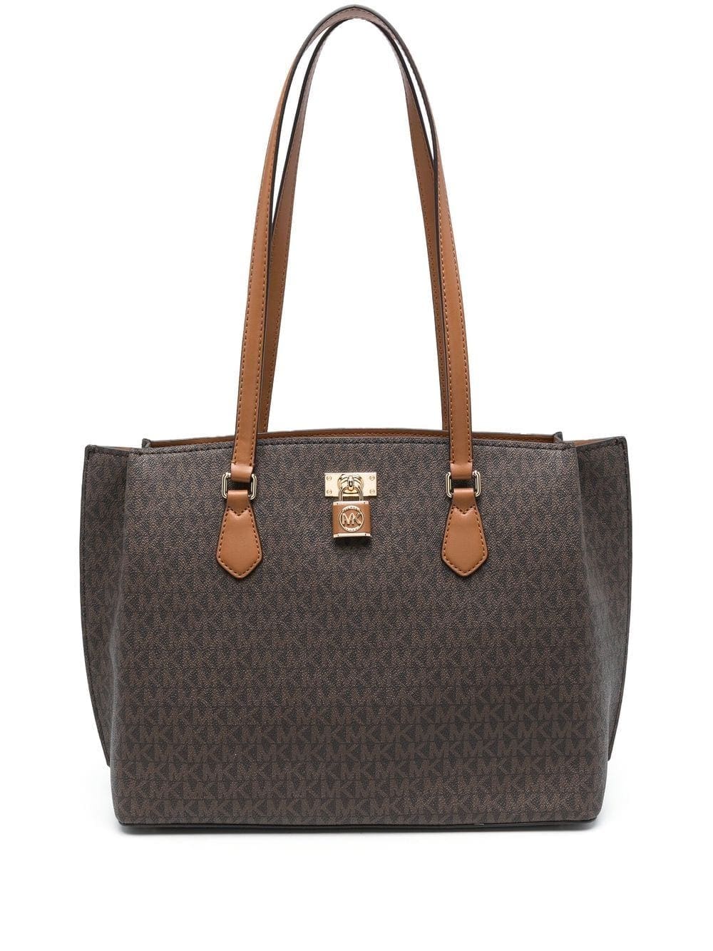 brown calf leather pebbled texture monogram pattern gold-tone logo plaque gold-tone hardware top zip fastening two long top handles internal zip-fastening pocket main compartment
