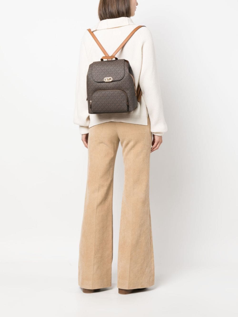 monogram-pattern logo-buckle backpack
