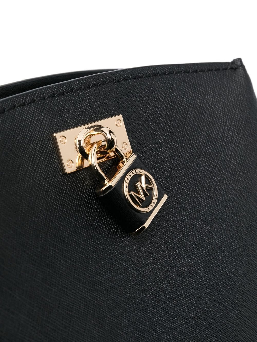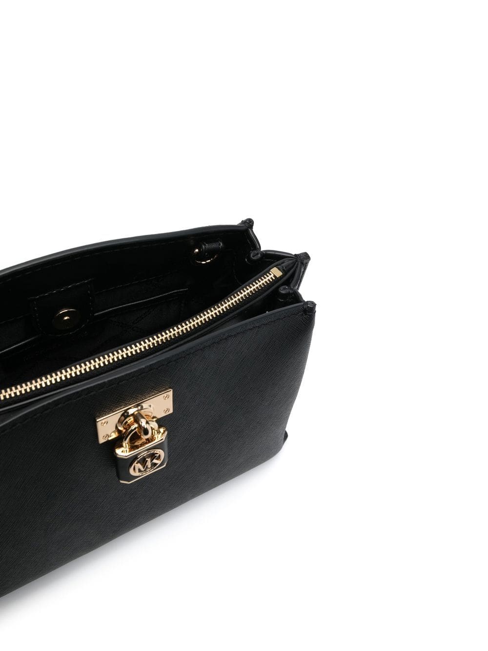 jet black calf leather grained texture padlock detail single shoulder strap top zip fastening main compartment