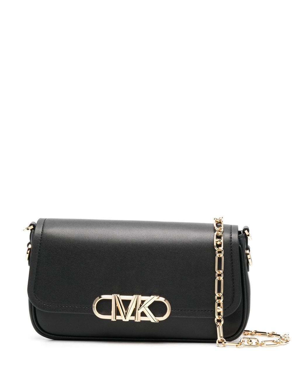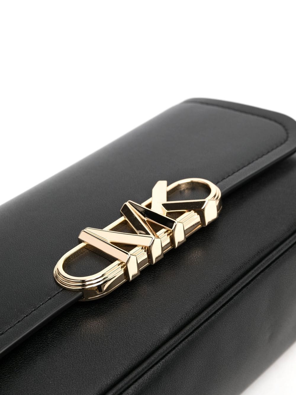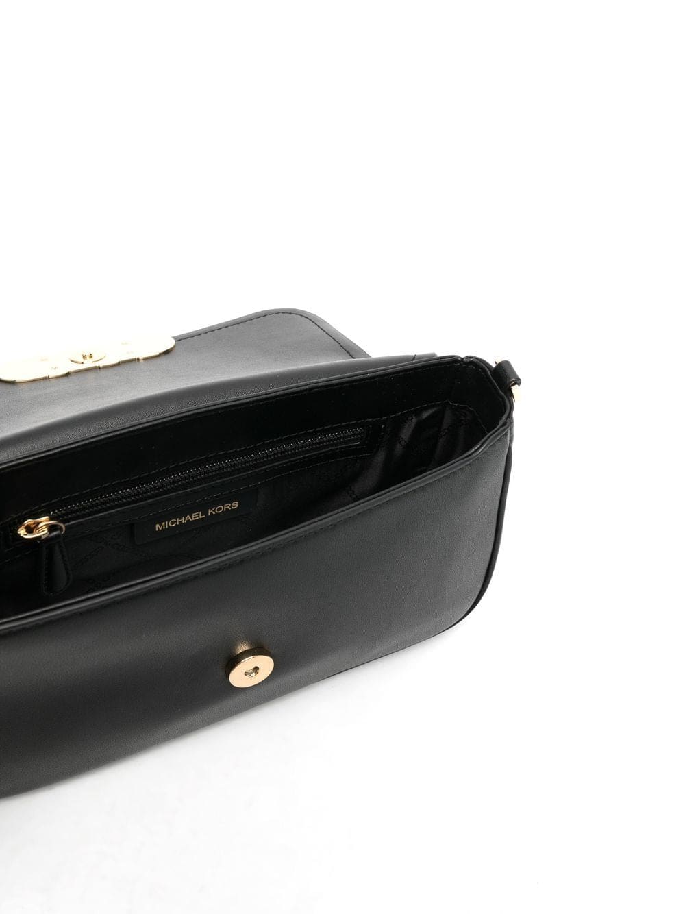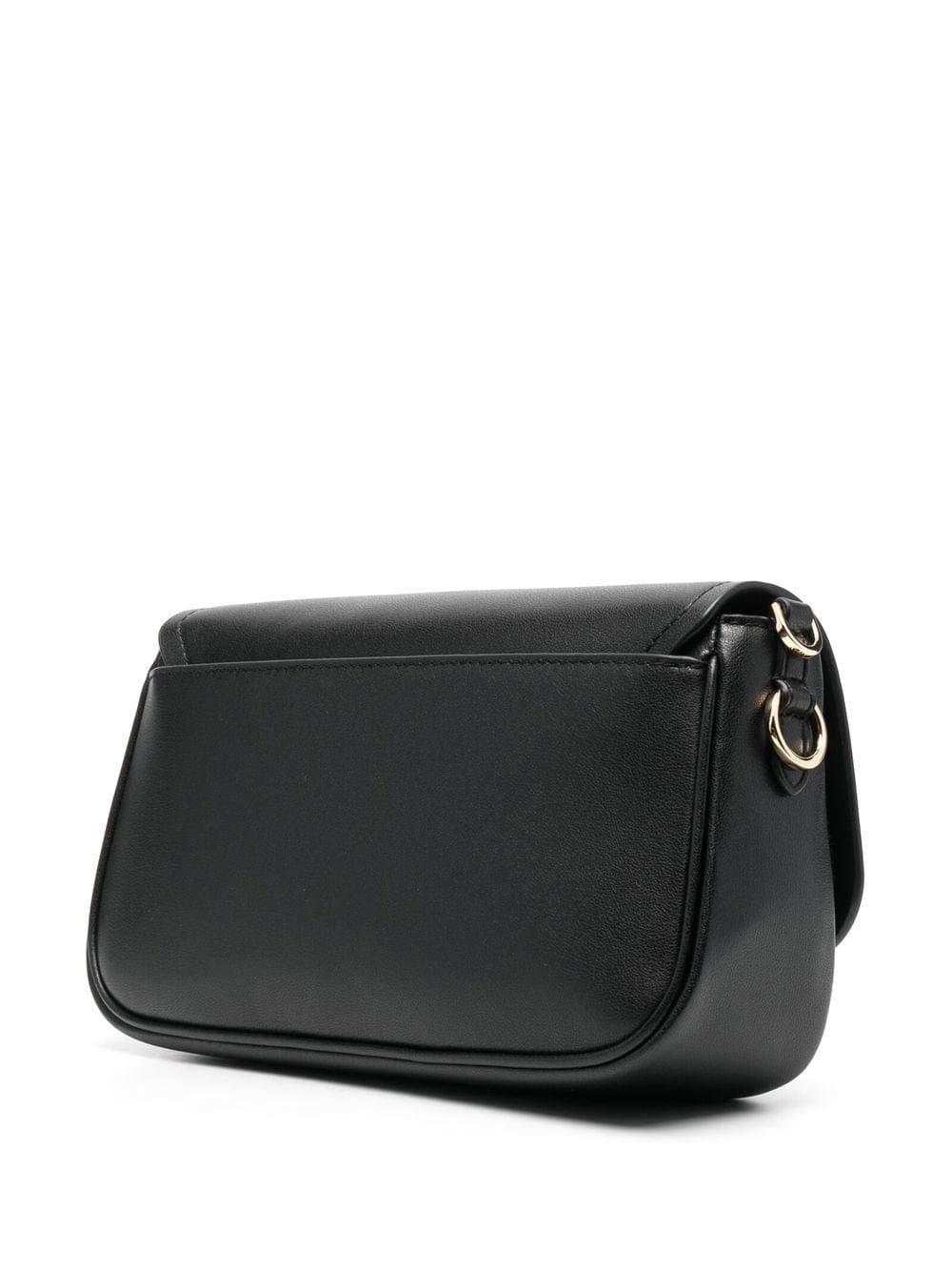 black calf leather detachable shoulder straps gold-tone logo plaque foldover top with magnetic fastening internal zip-fastening pocket logo-print lining