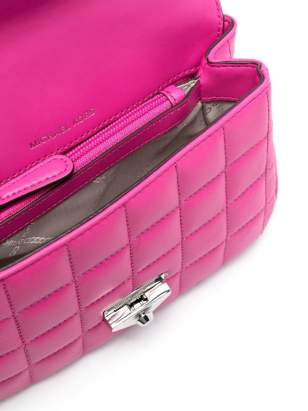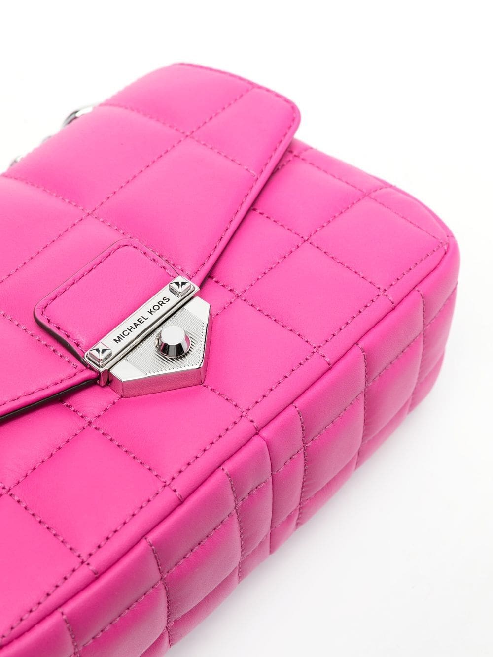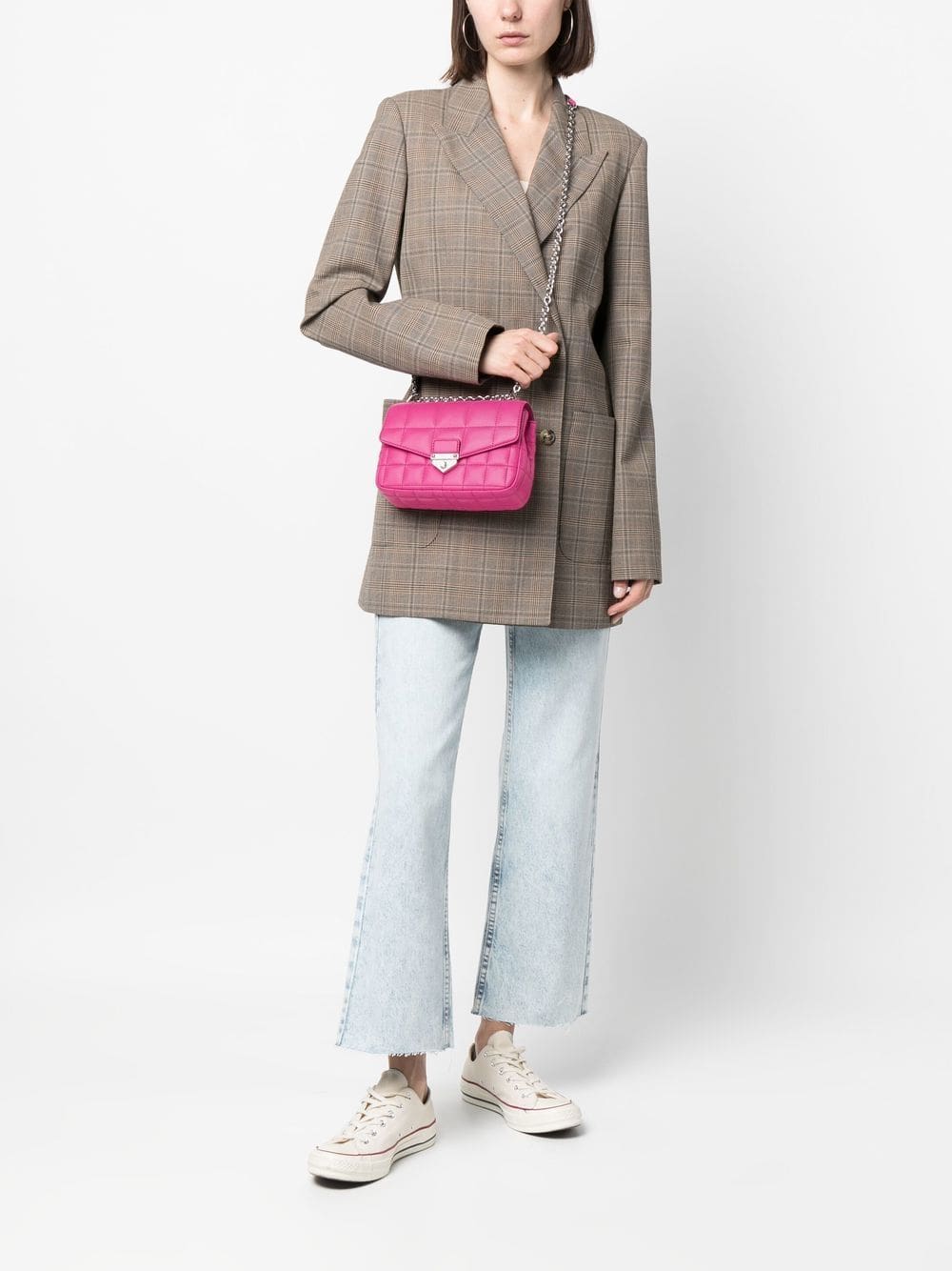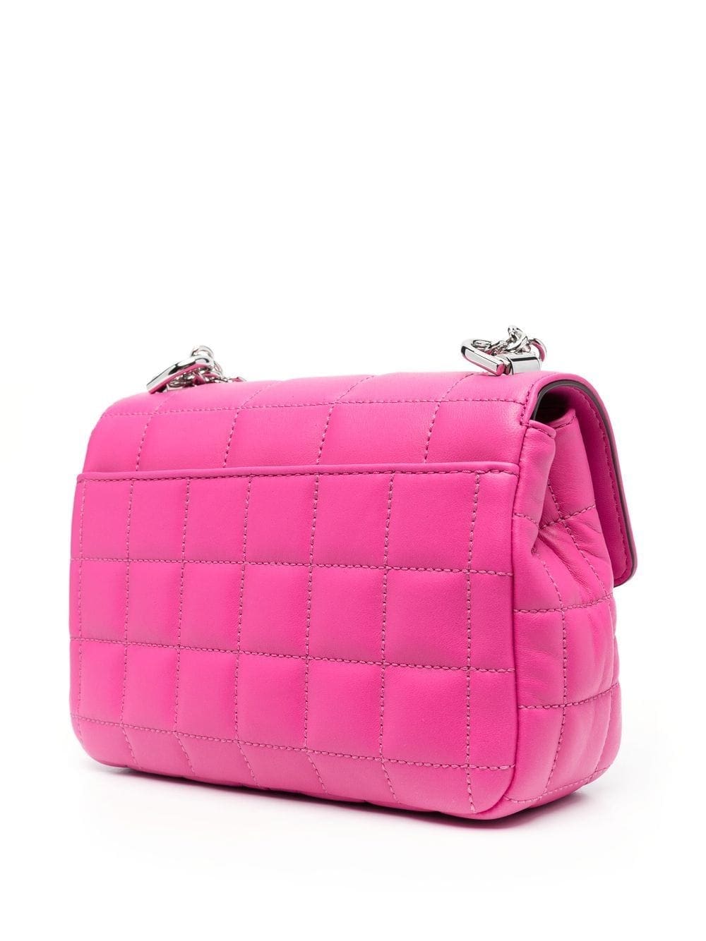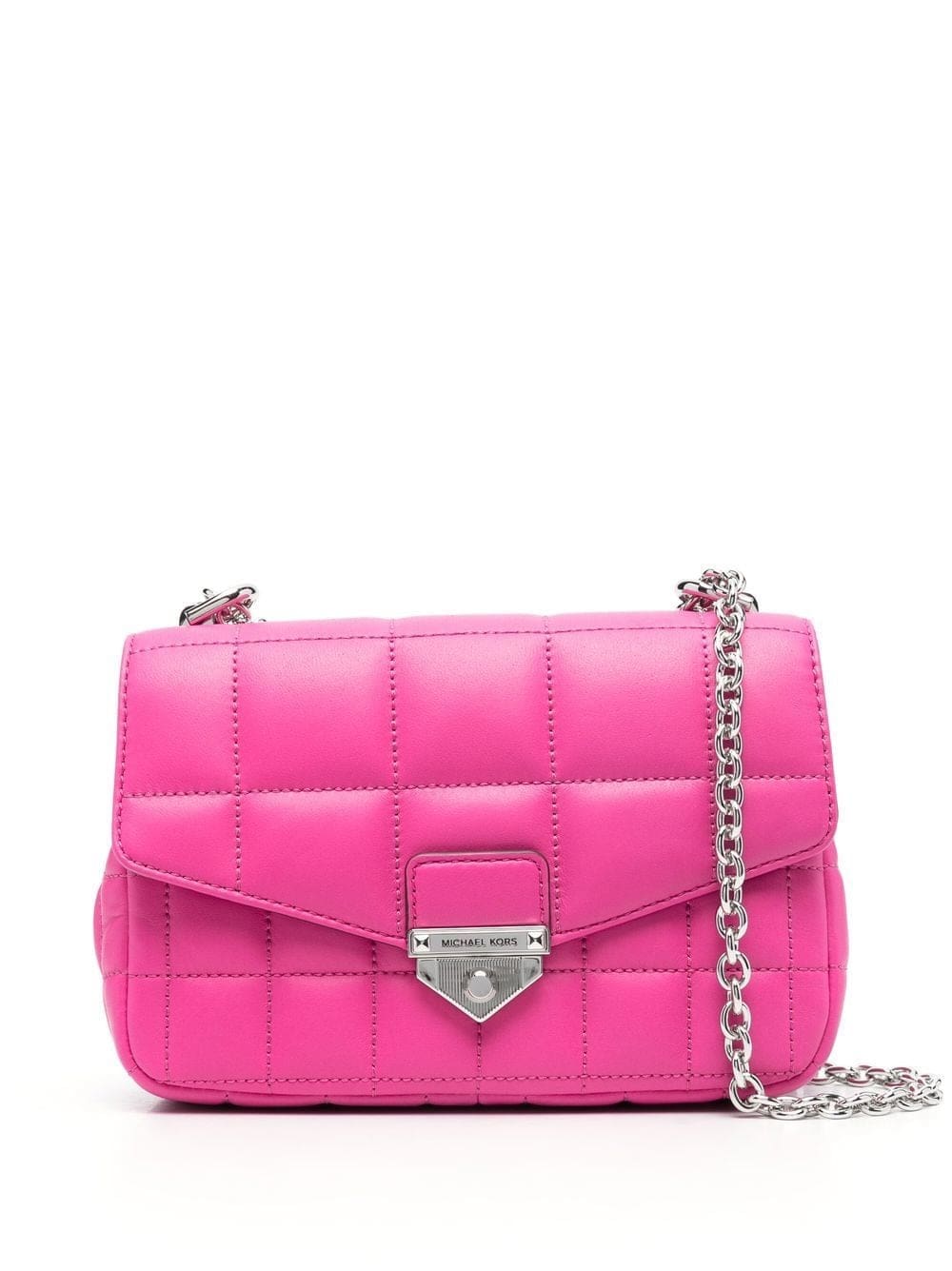 hot pink calf leather quilted clasp fastening foldover top chain-link shoulder strap