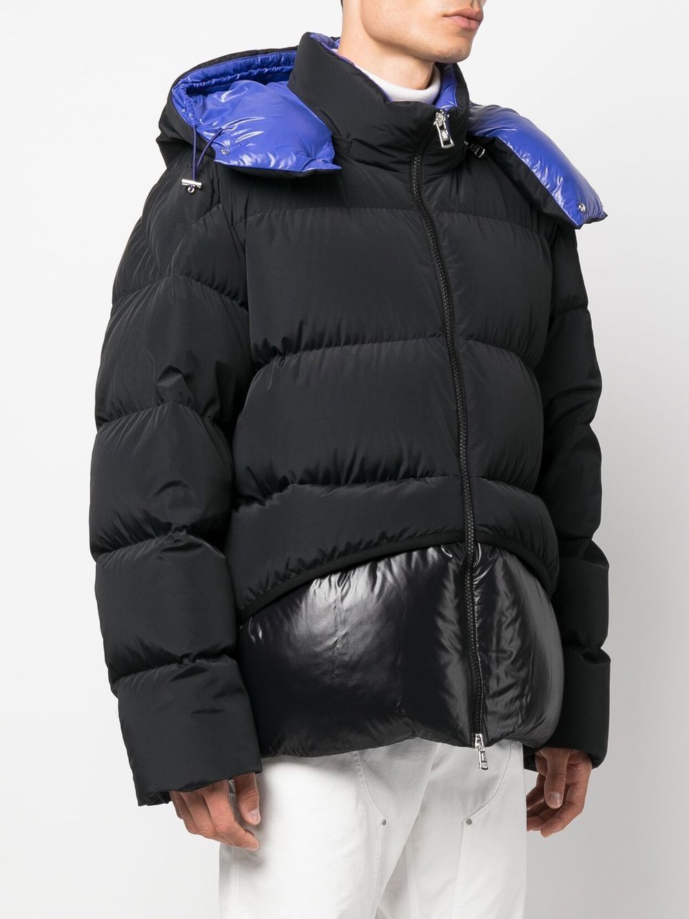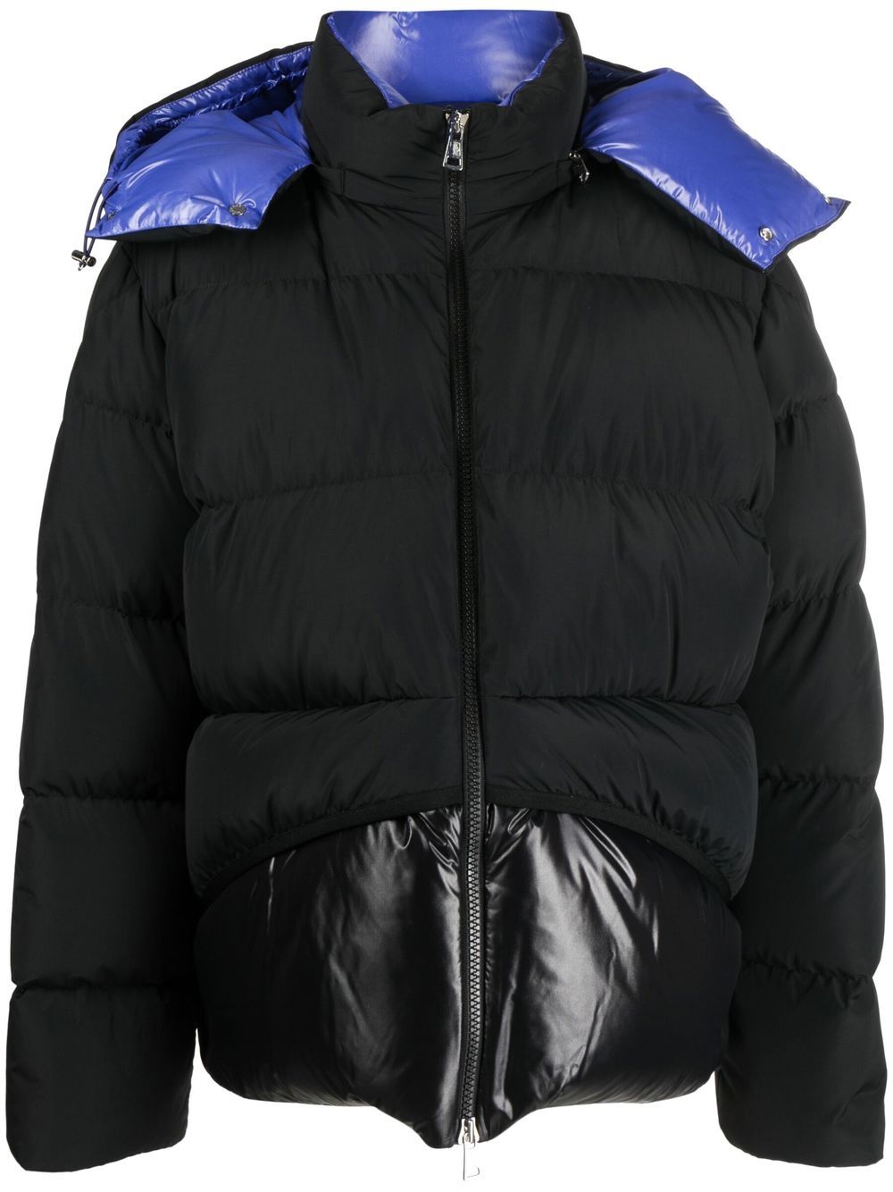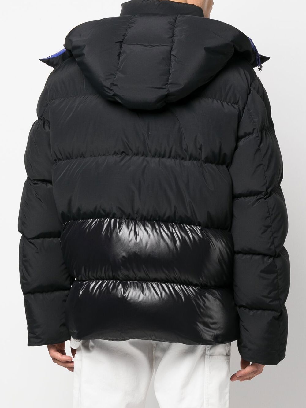 charcoal black cotton/feather down padded design high-shine detailing logo patch at the sleeve classic hood front zip fastening long sleeves two front welt pockets