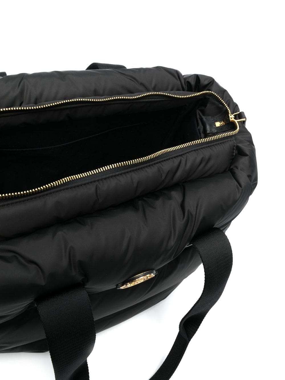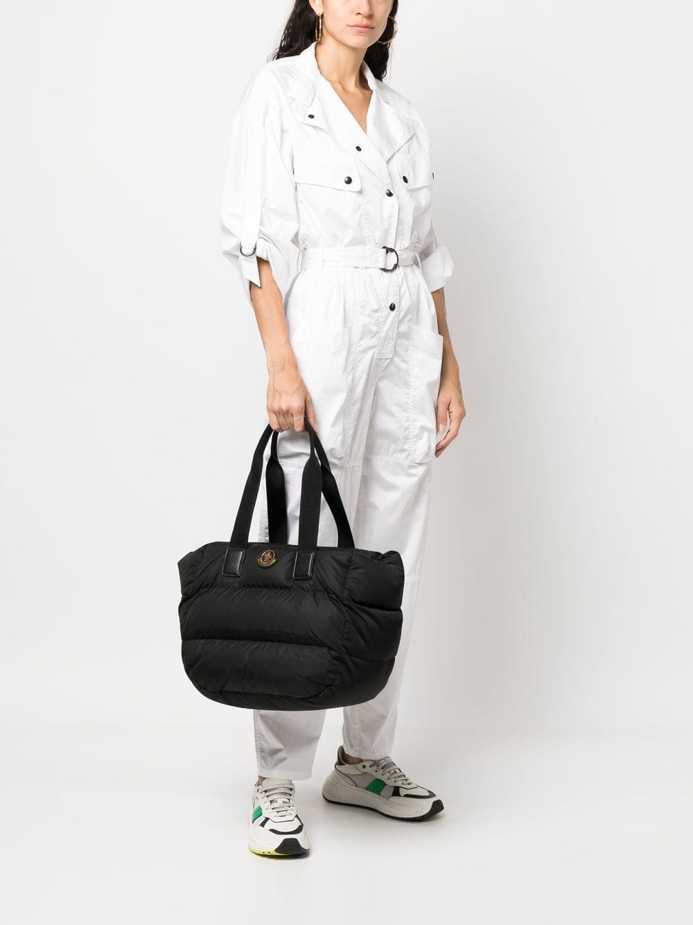 Inspired by Moncler's iconic down jacket, the Caradoc tote bag boasts a padded quilted construction. Boasting an architectural trapezoid shape, this accessory is completed with a signature logo patch on the front.