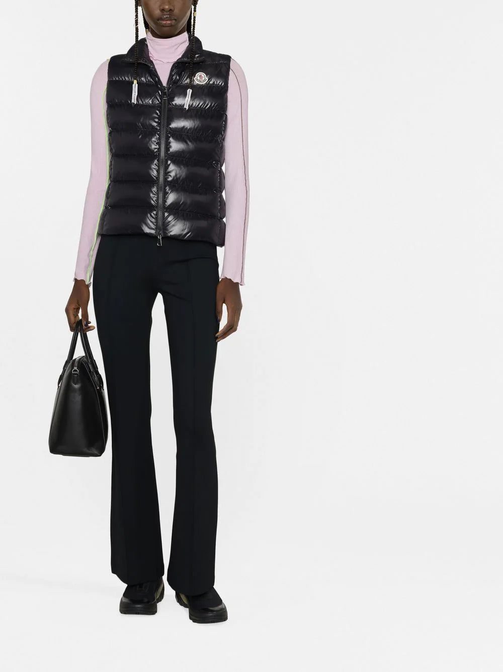 Renowned for creating luxurious outerwear, Italian fashion house Moncler takes inspiration from the 80s instantly recognisable silhouettes with this black Ghany gilet. This piece is detailed with feather-down padding and finished with the brand's iconic logo patch for a signature touch.