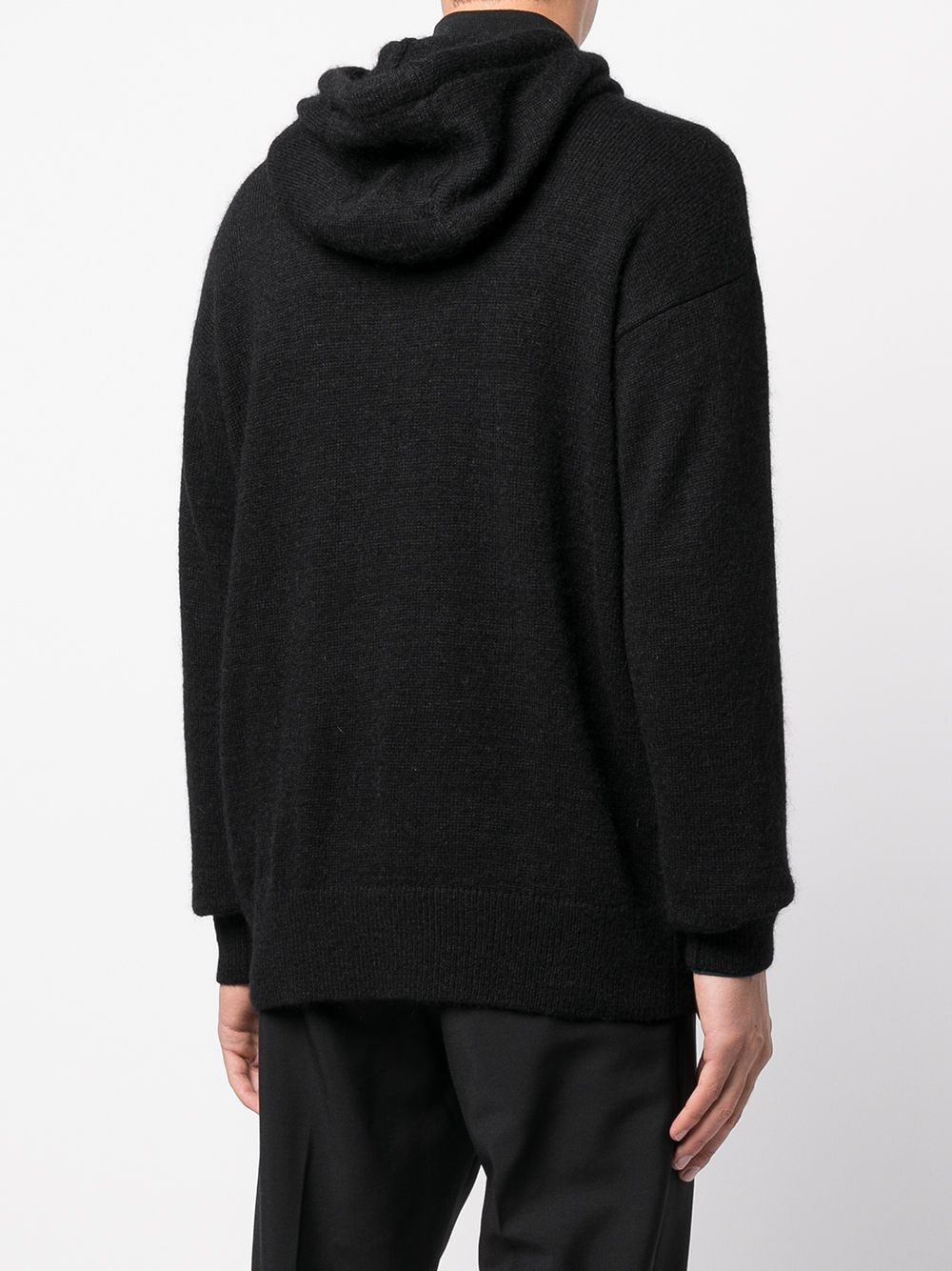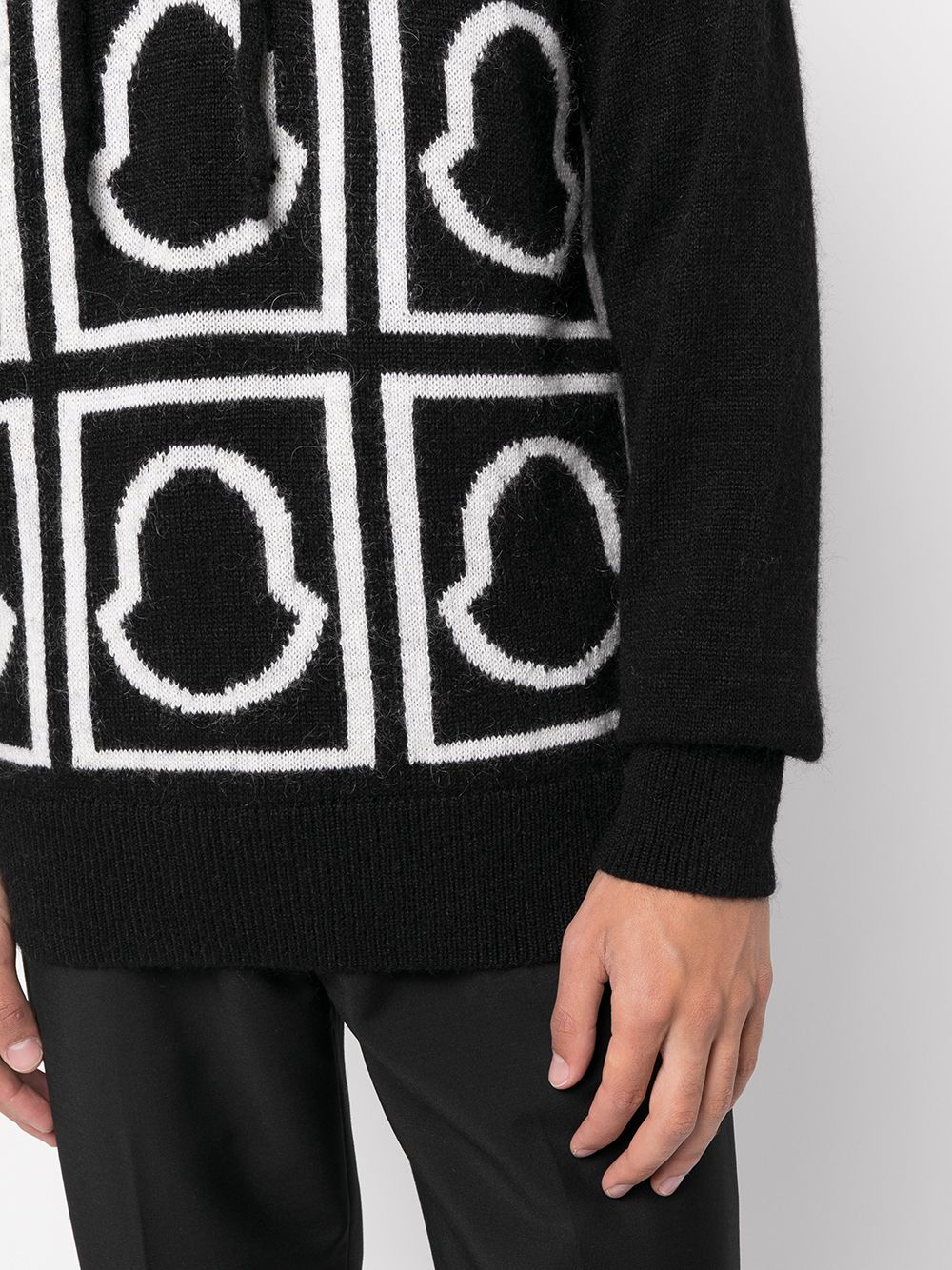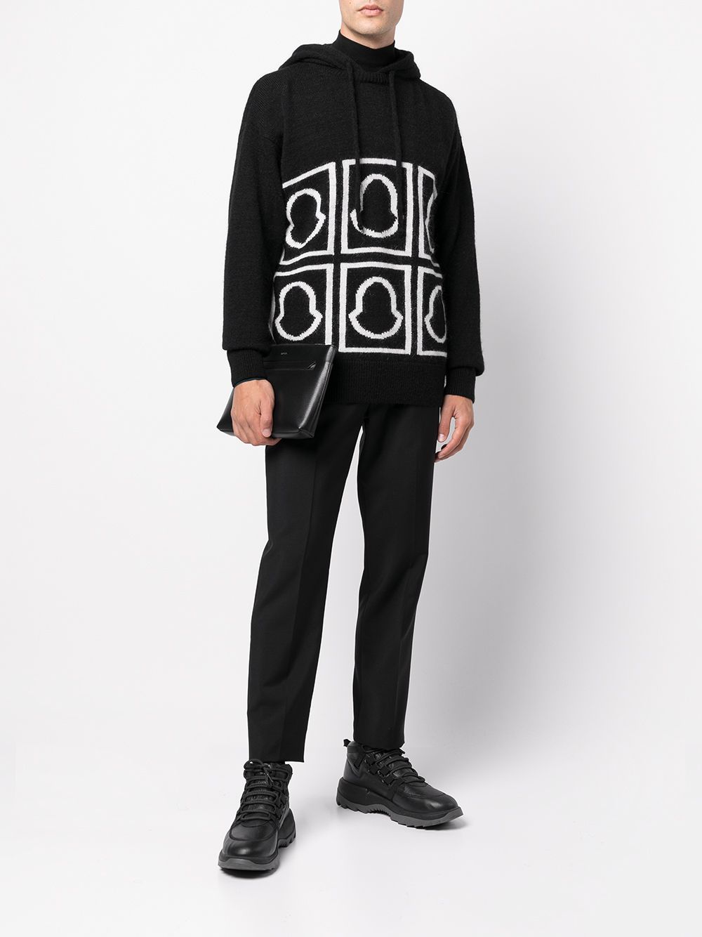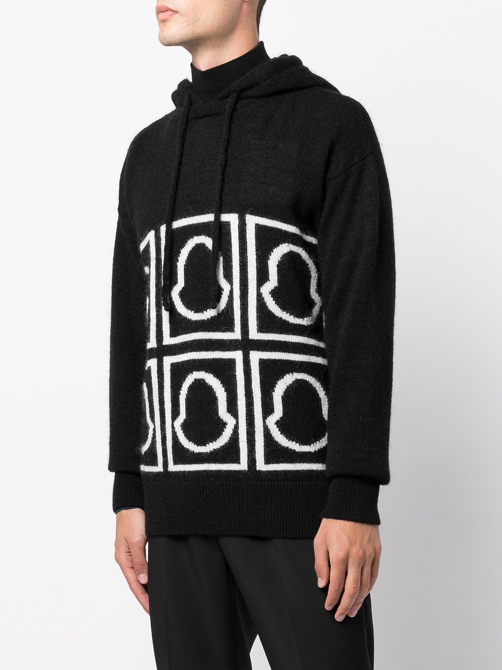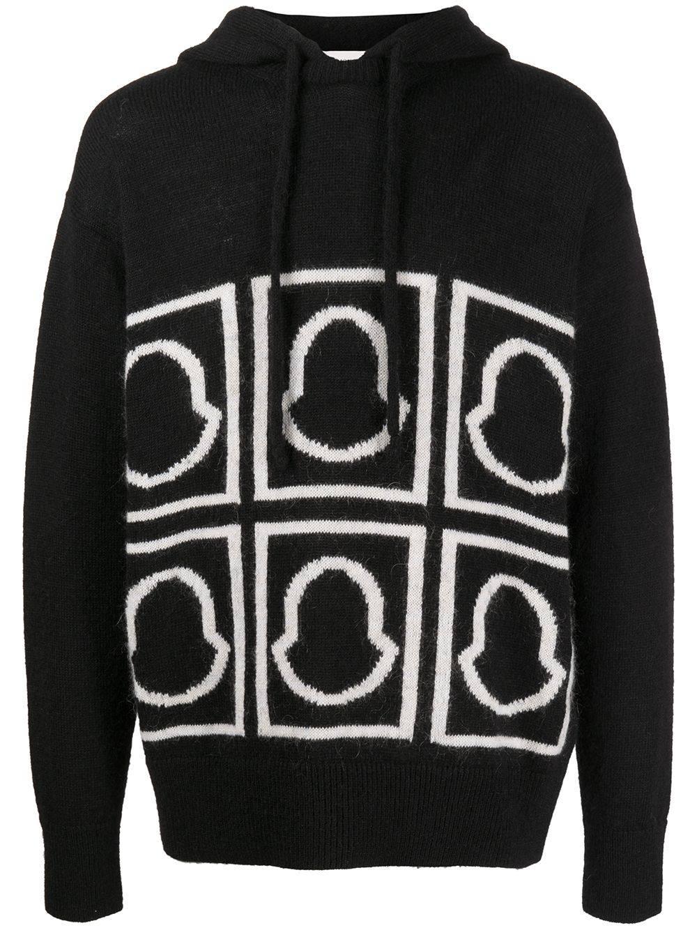 Made from a soft wool-mohair blend, this Moncler drawstring hoodie is defined by the iconic intarsia logos detailed to the front.