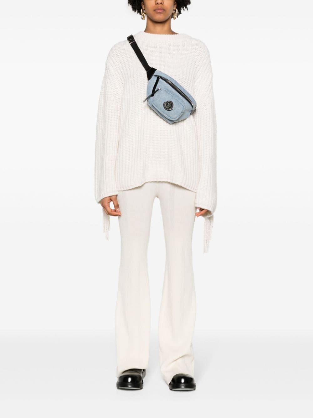 logo-patch denim belt bag