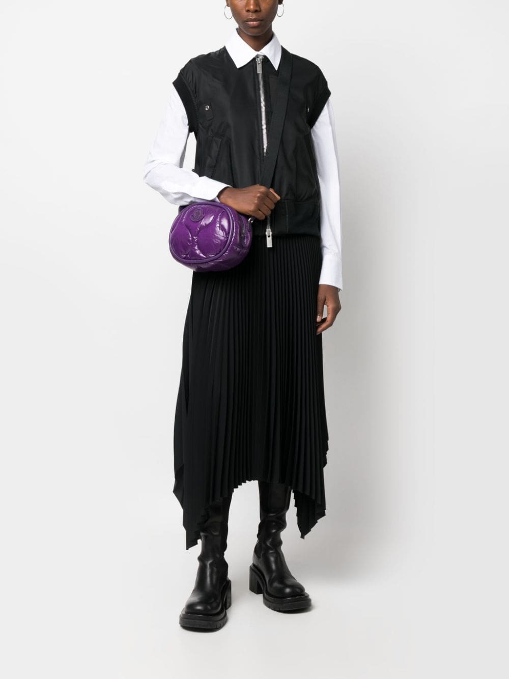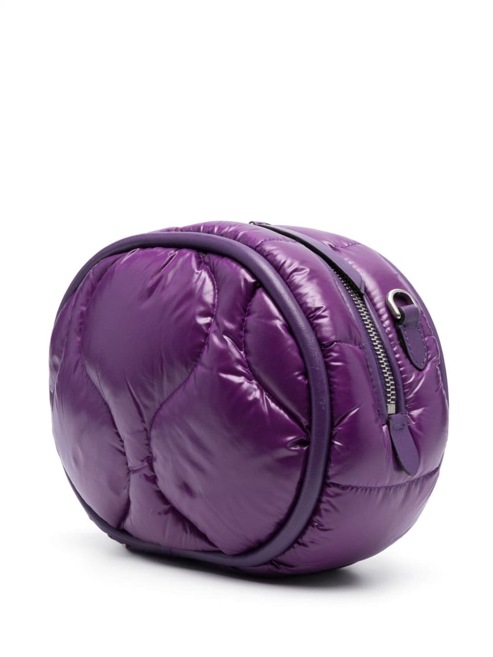 This purple shoulder bag by Moncler is padded and quilted, reminiscent of the brand's most celebrated outerwear styles. Its circular silhouette is held with a flat shoulder strap and adorned with a tonal logo patch on the front for a touch of branding.