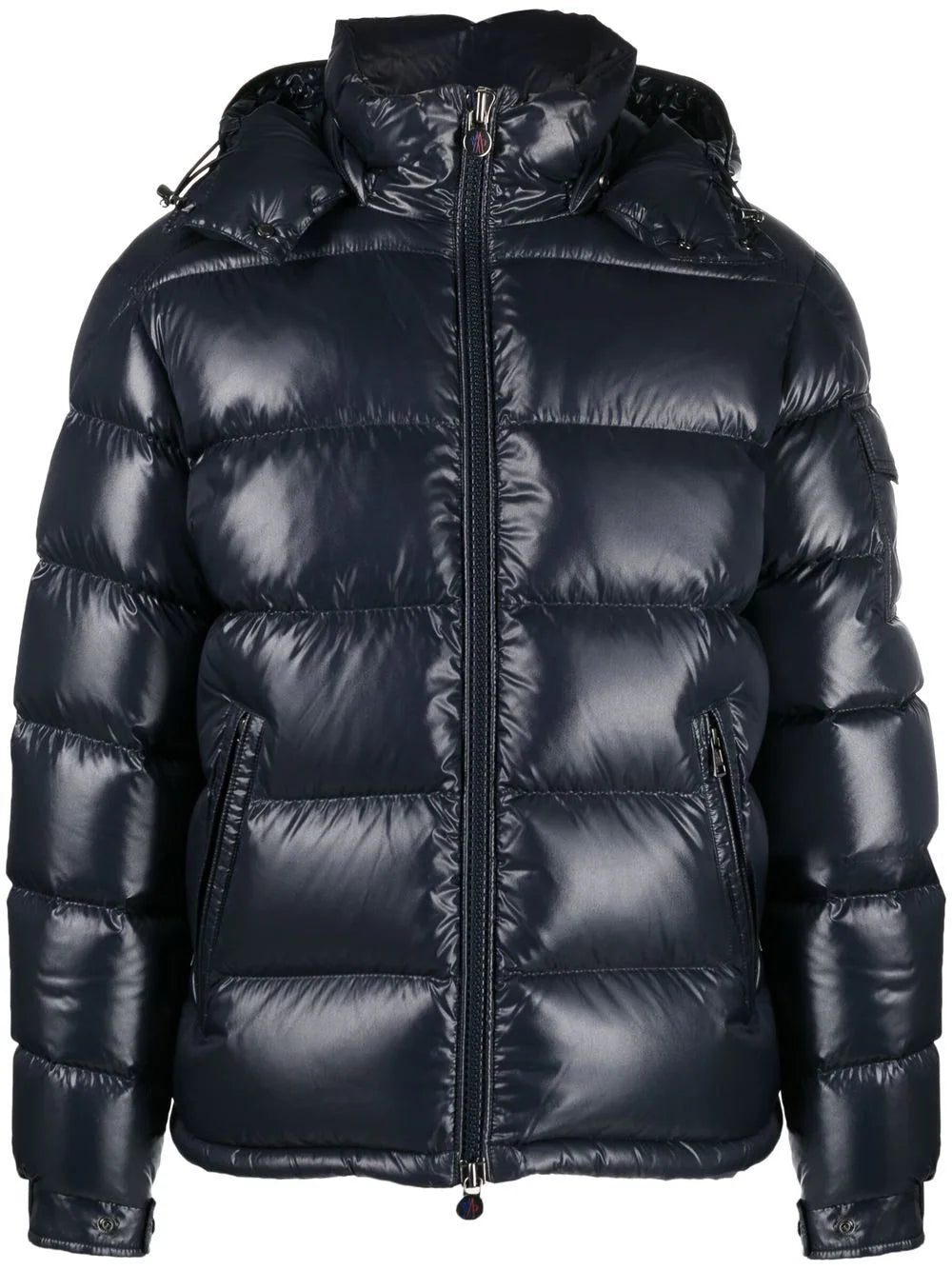 Known for their padded down jackets, Italian fashion house Moncler was founded in 1952 and started life creating quilted sleeping bags and tents. Presented in a navy hue, this Maya jacket is detailed with feather-down padding and the label's signature logo patch to the outer left sleeve.