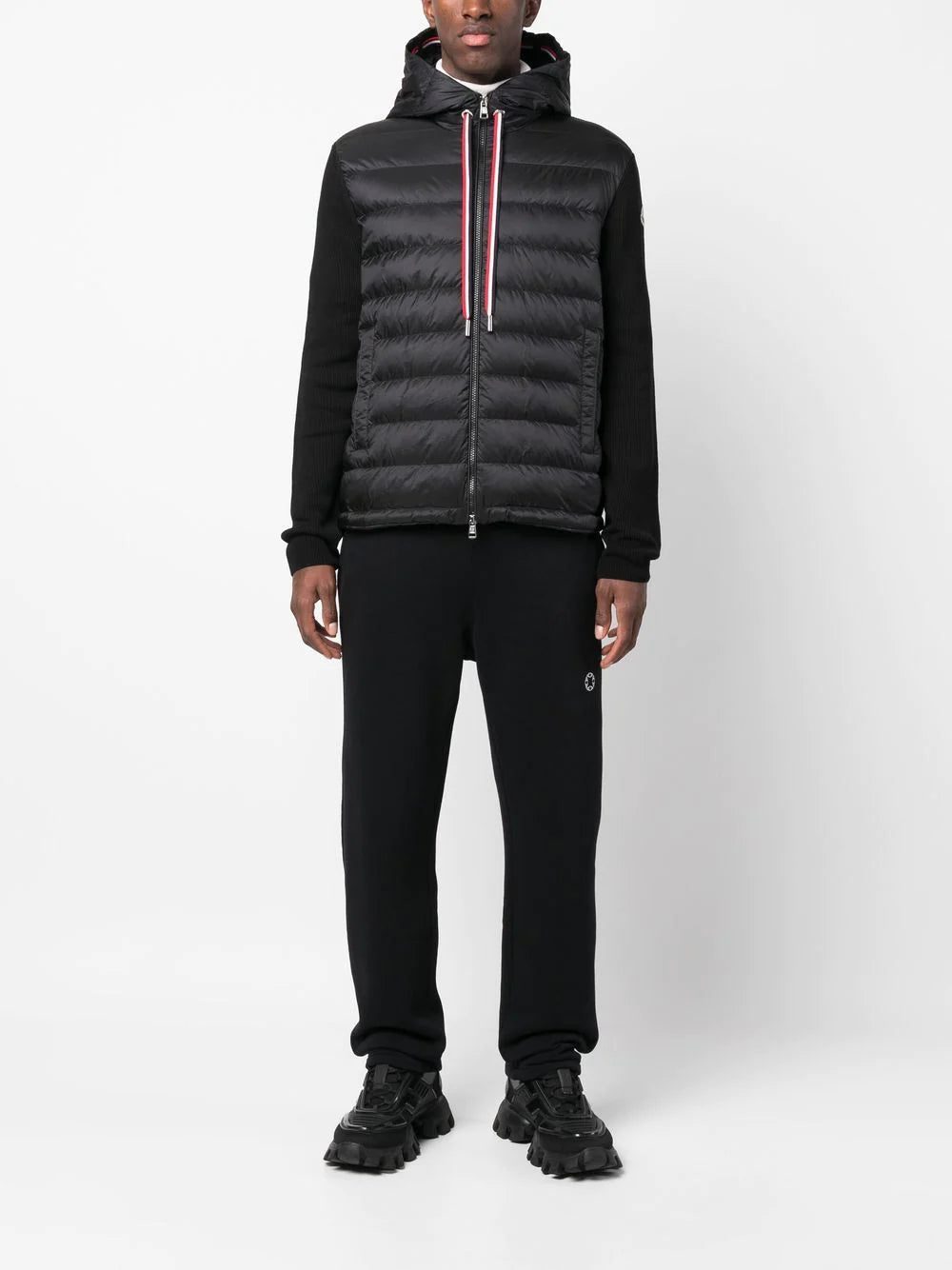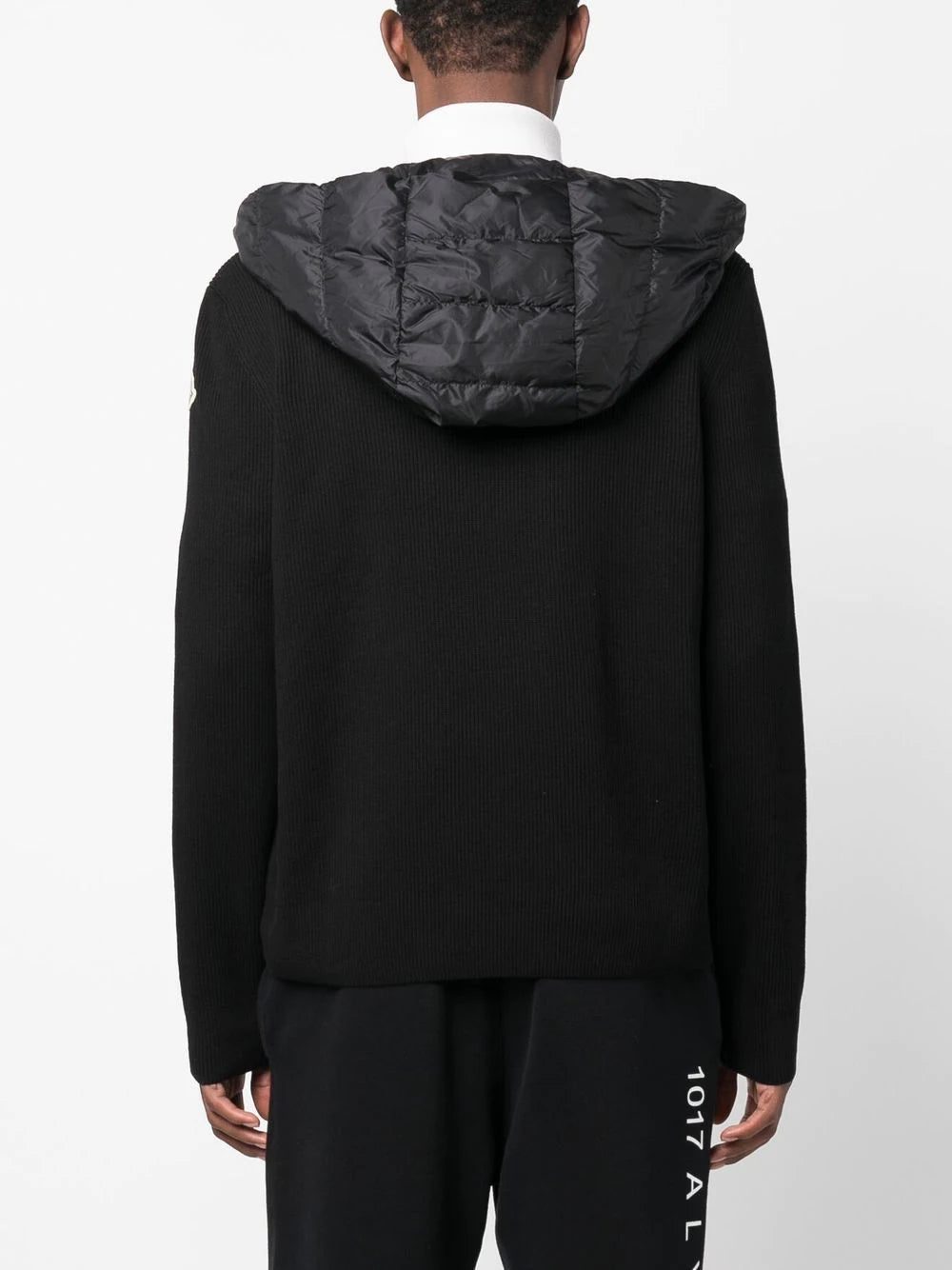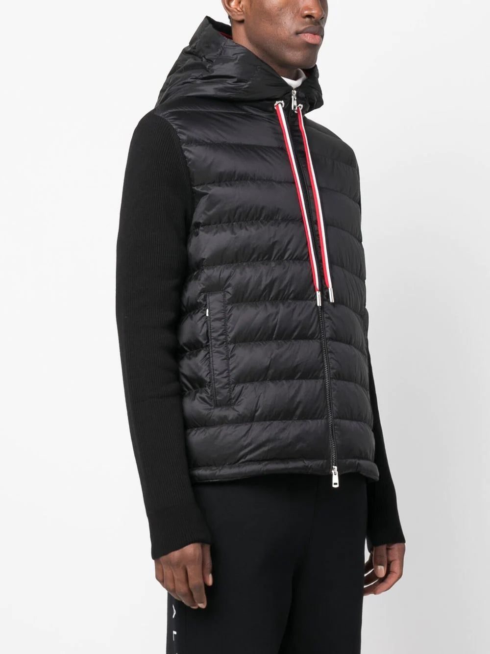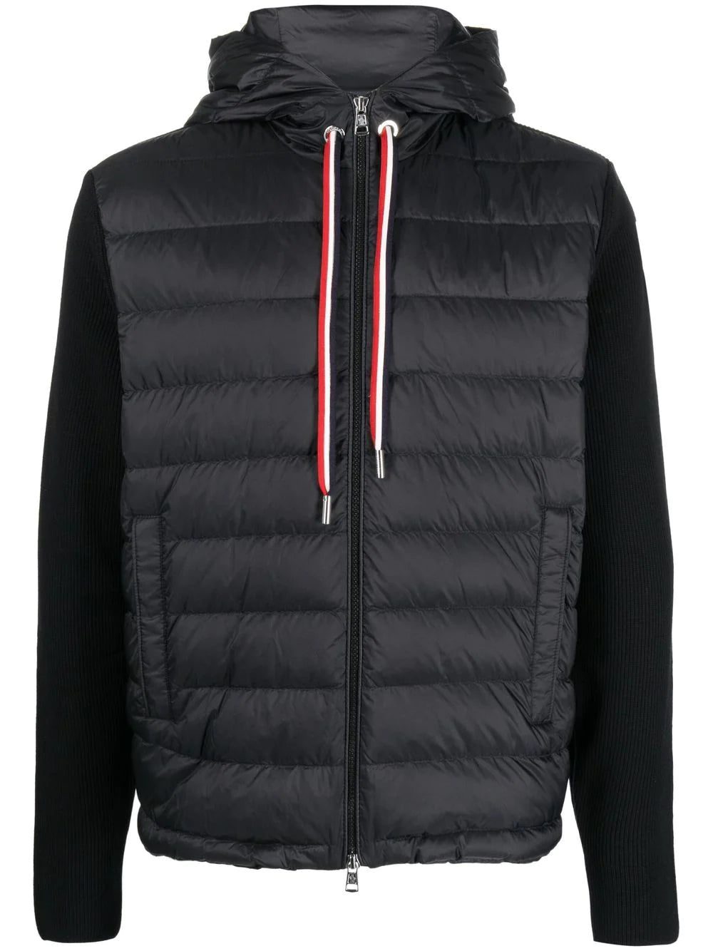 Defined by a knitted construction with front feather-down panelling, this Moncler jacket features contrasting-fabric sleeves and a high neck for added protection against the elements.