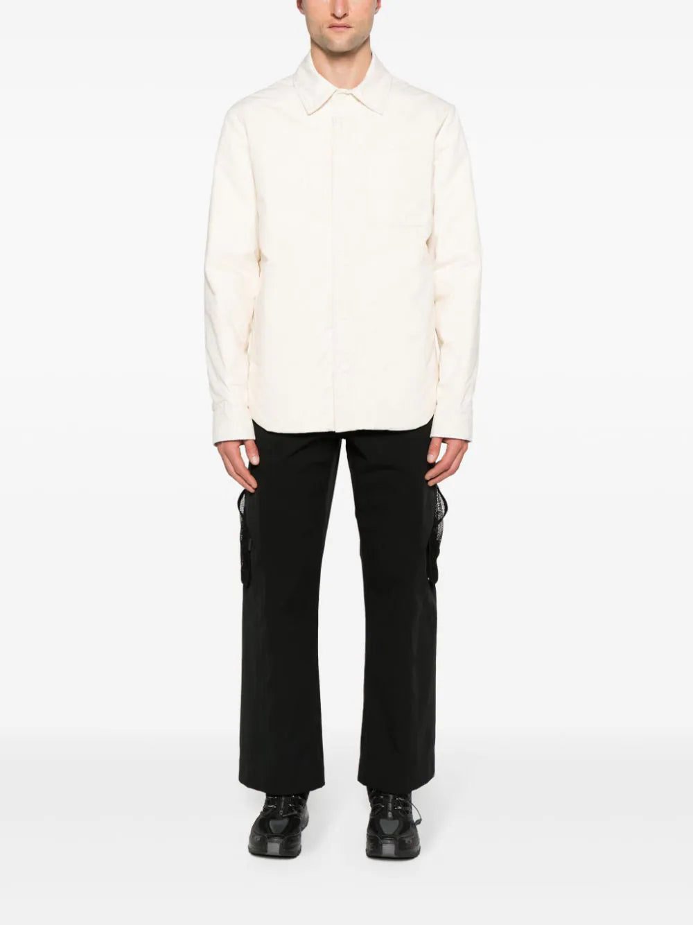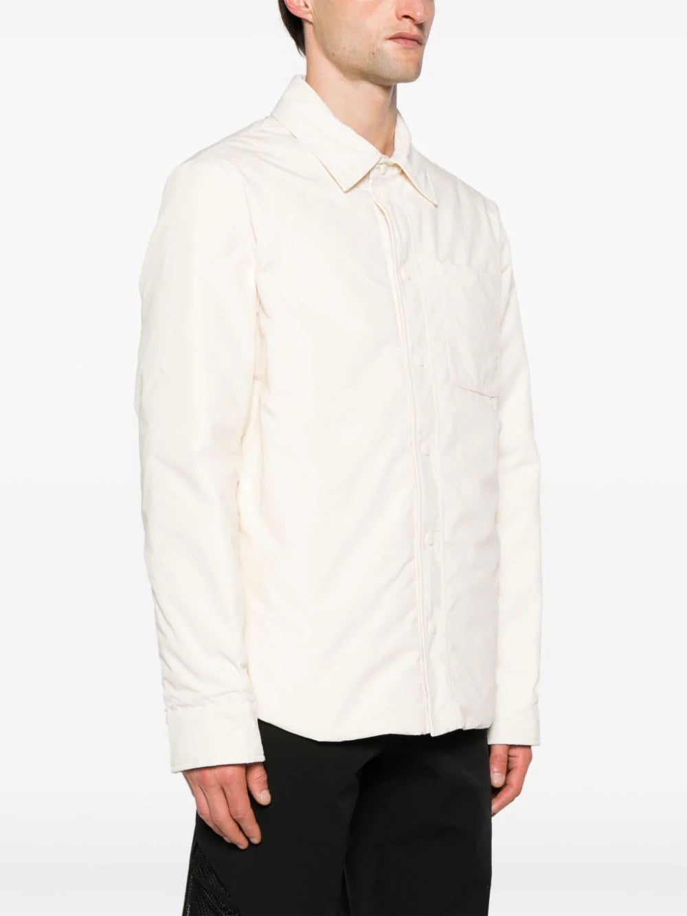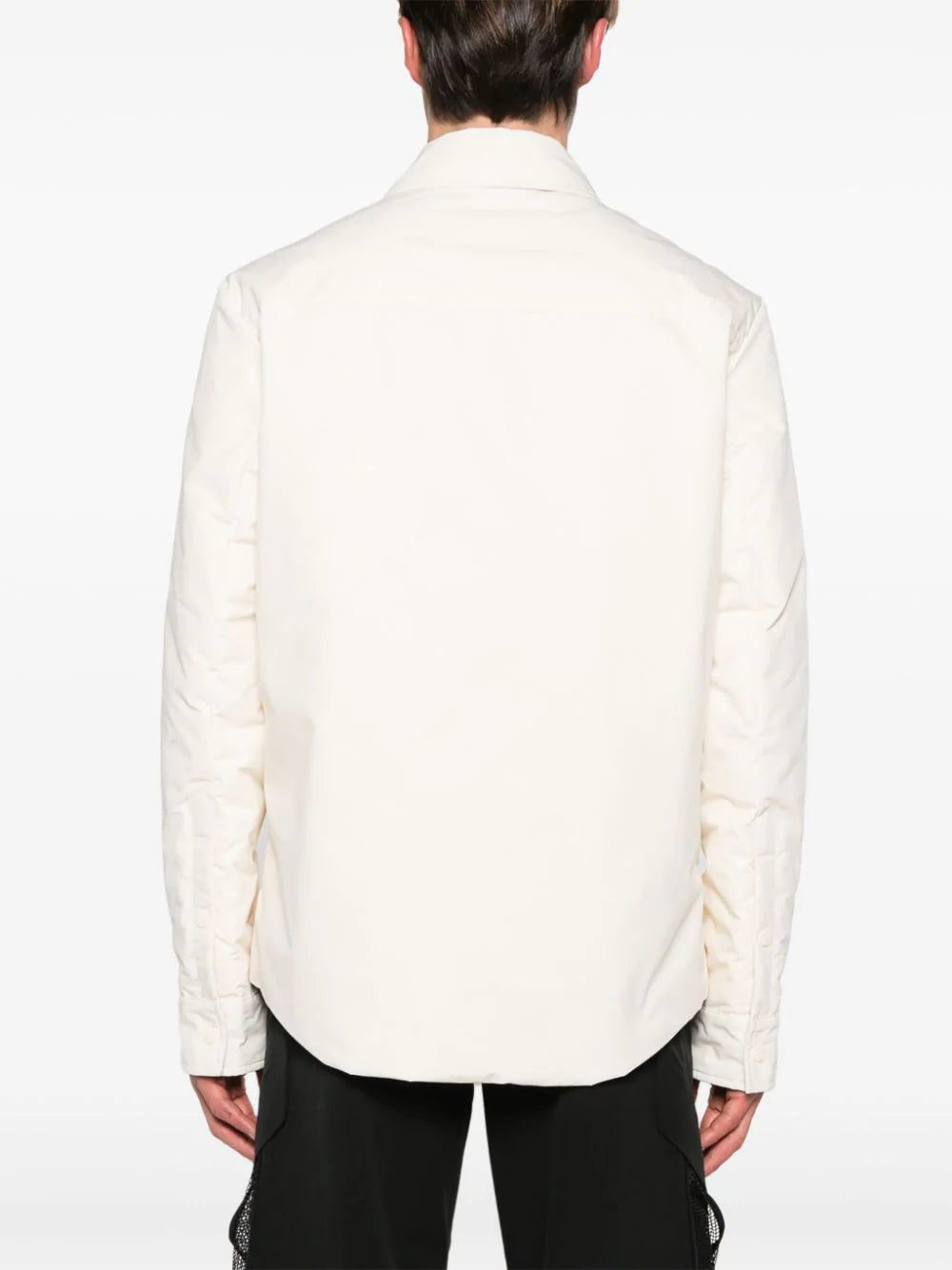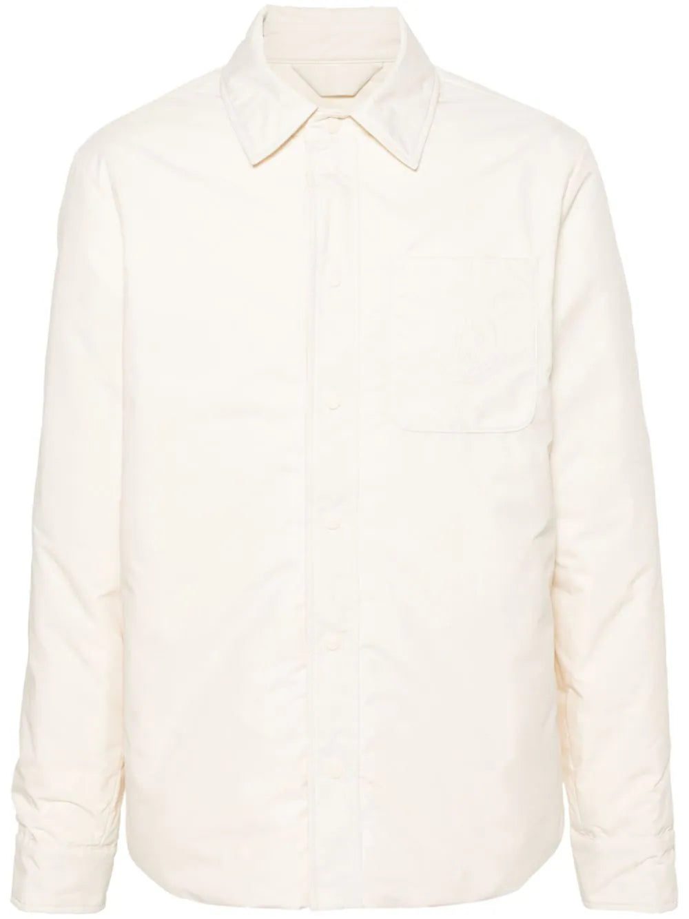 Toeing the line between a shirt and a jacket, this Moncler shacket is cut from beige shell that’s padded for lightweight insulation. The chest patch pocket and press-stud cuffs reinforce its hybrid design while tonal logos at the front and sleeve subtly state its origins.