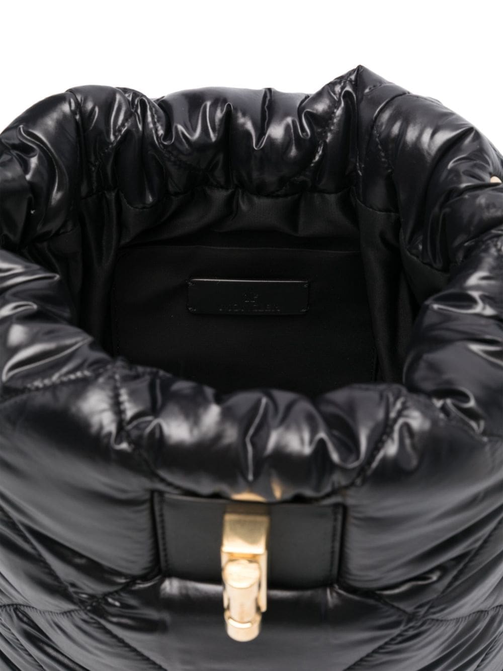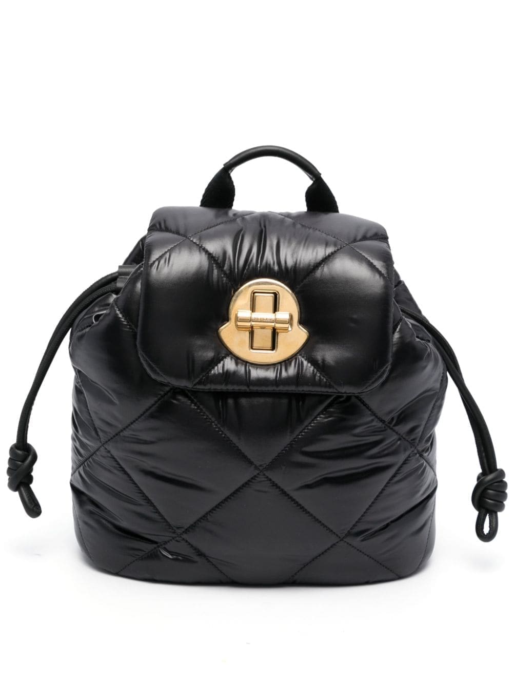 Moncler showcases its penchant for functional accessories with this padded backpack. It’s crafted from black quilted shell and detailed with a statement gold-tone logo plaque that doubles as a clasp.