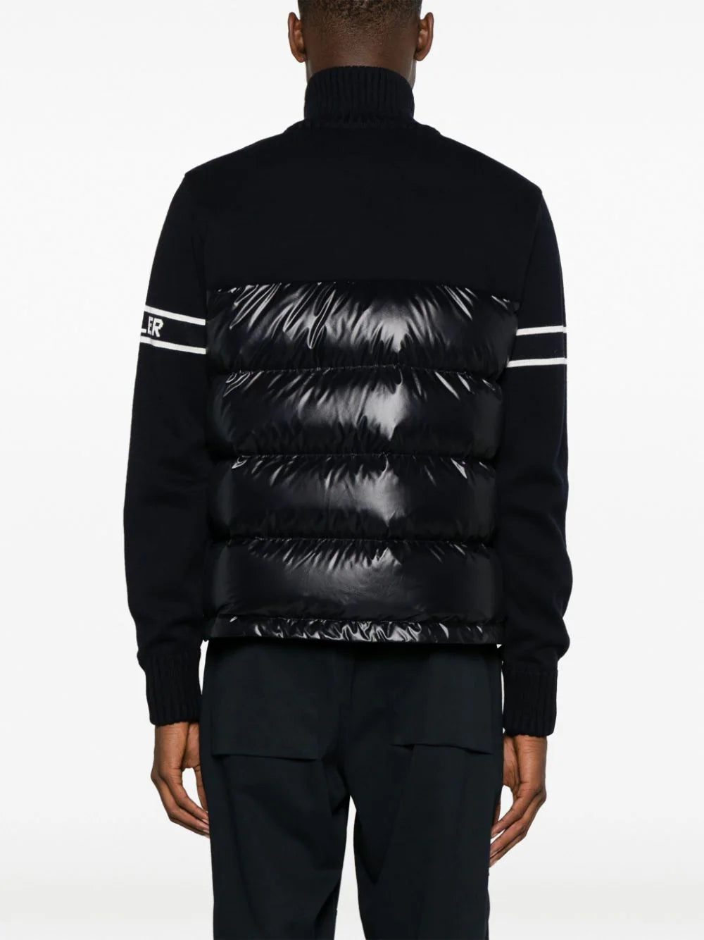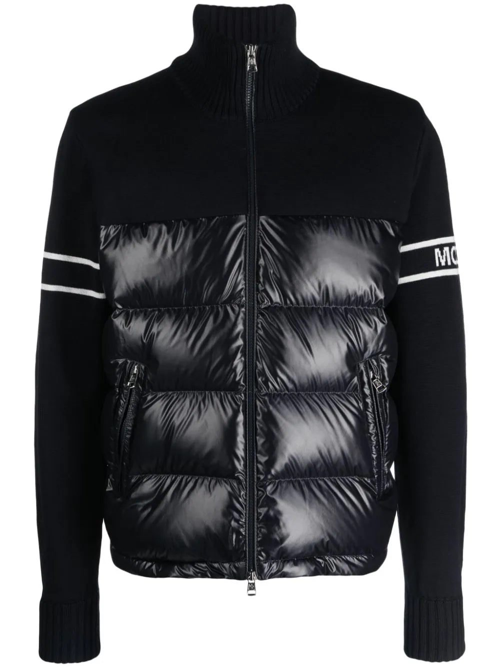 Moncler is celebrated for its insulated designs. A case in point, this cardigan is a hybrid take on classic styles: note the contrasting quilted bodice and knitted sleeves. It’s fitted with a protective funnel neck.