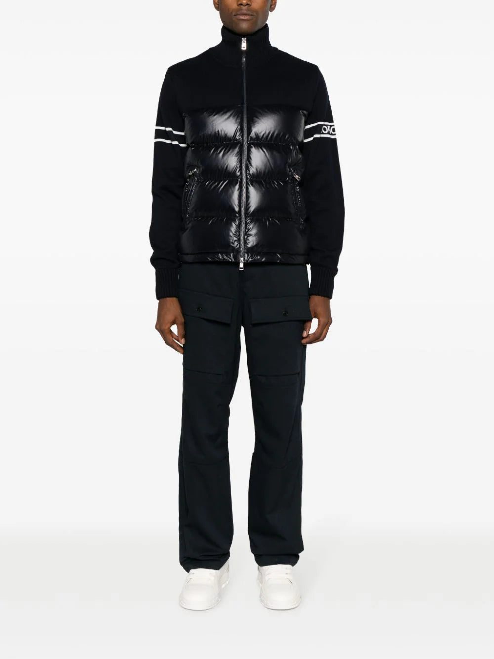 Moncler is celebrated for its insulated designs. A case in point, this cardigan is a hybrid take on classic styles: note the contrasting quilted bodice and knitted sleeves. It’s fitted with a protective funnel neck.