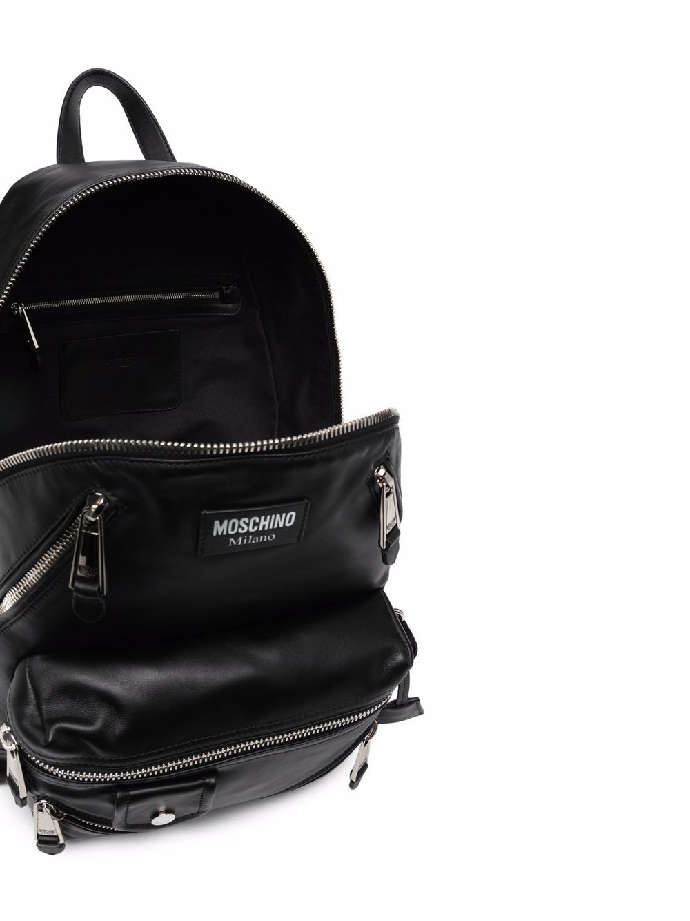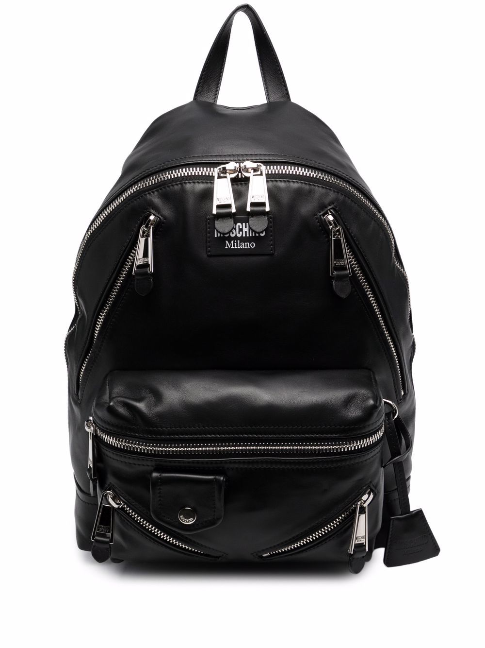 black calf leather front zip fastening pockets top zip fastening logo plaque main compartment adjustable shoulder straps