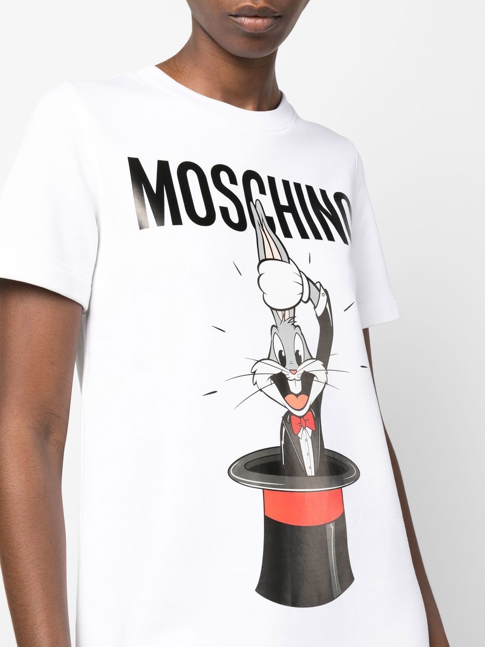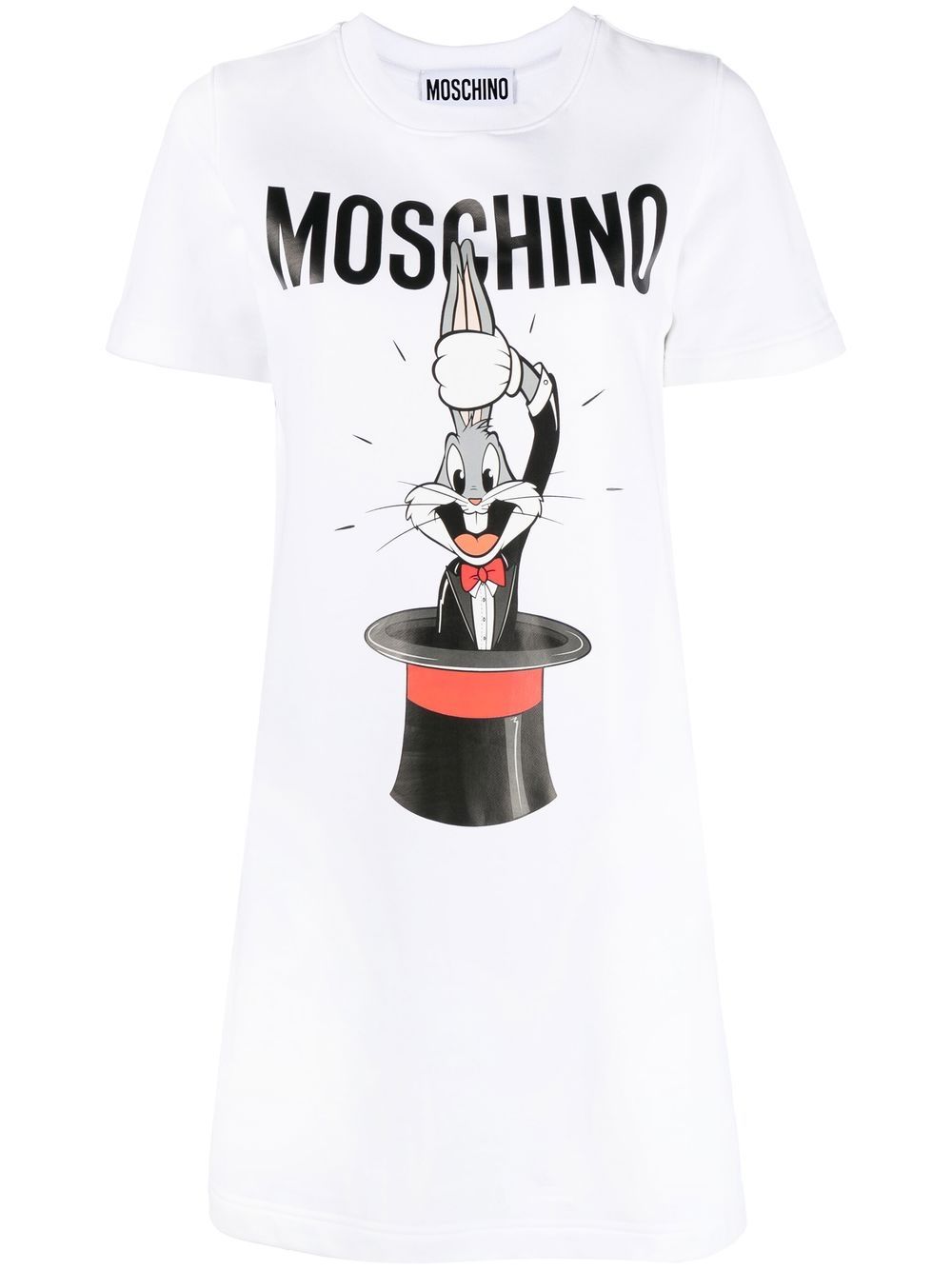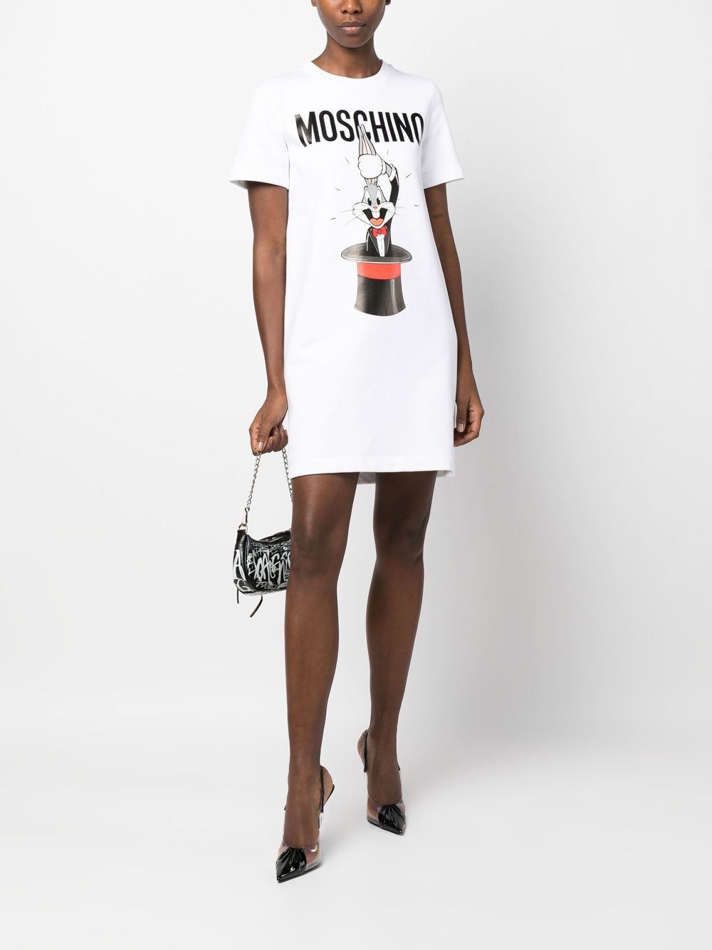 white/multicolour cotton jersey knit cartoon print logo print to the front crew neck short sleeves straight hem