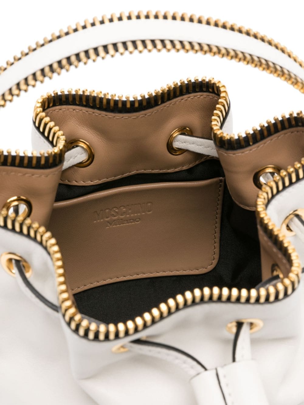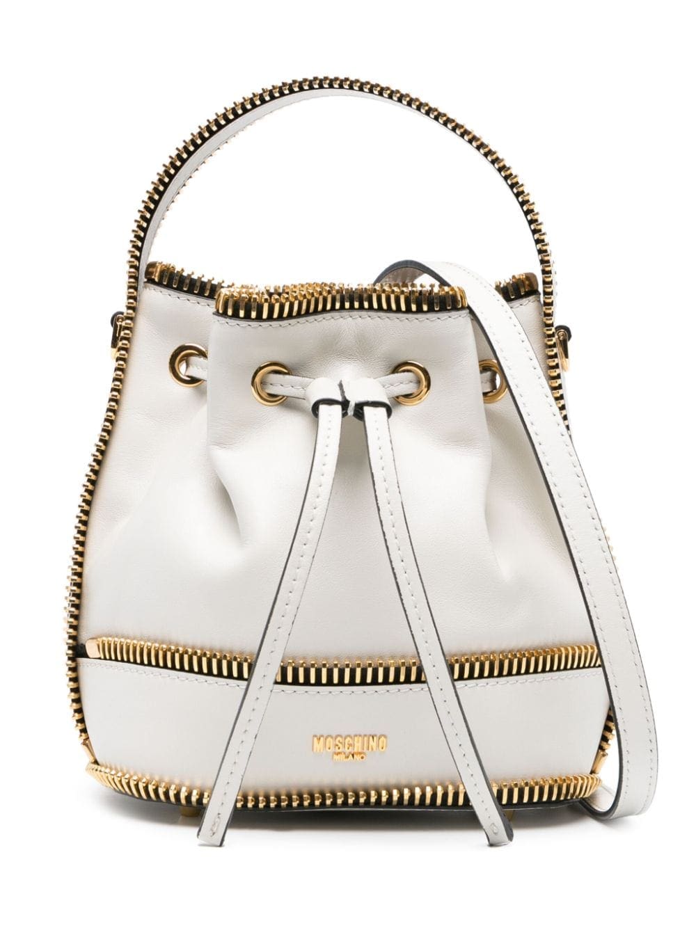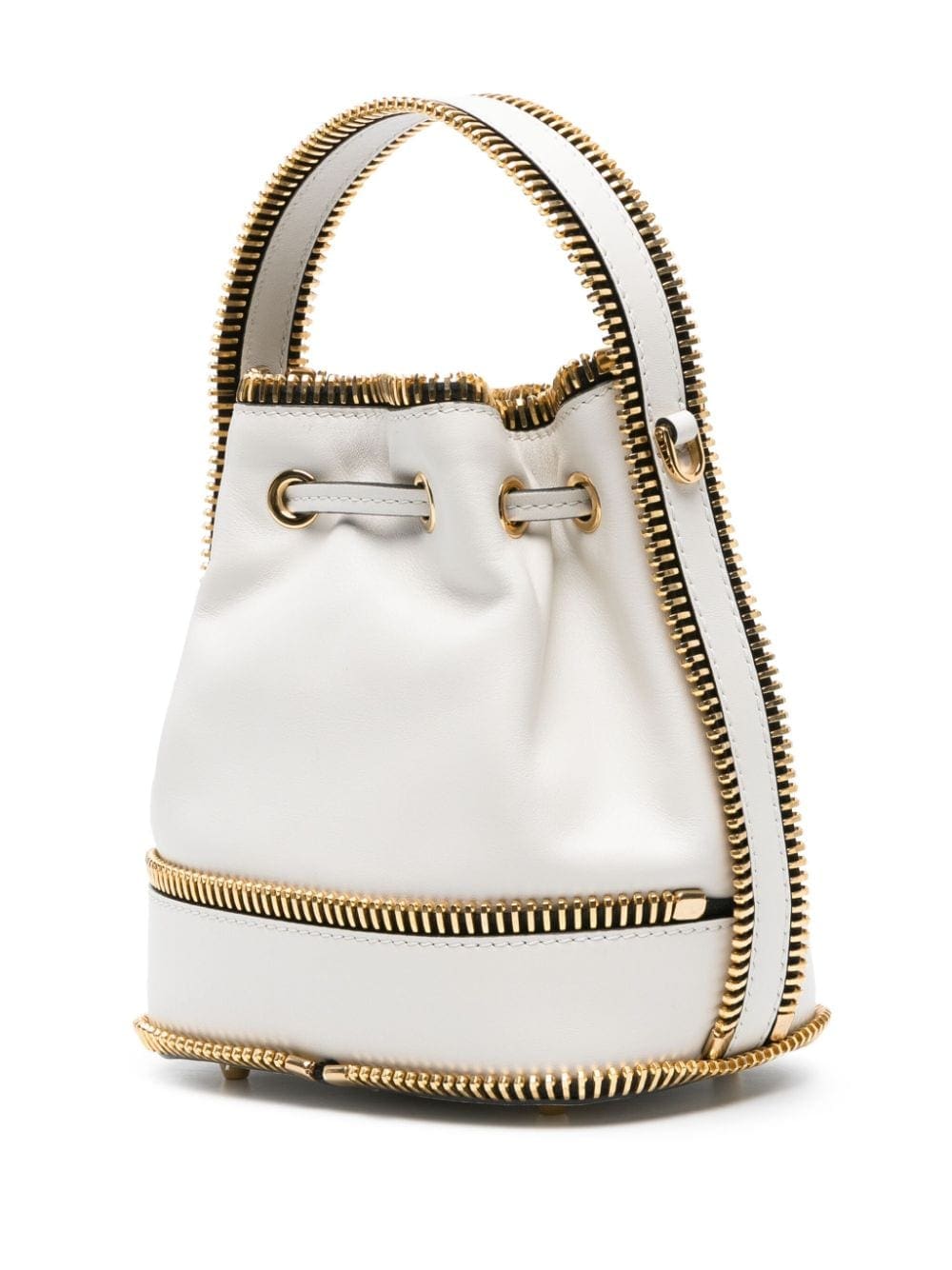 exposed-zip detail leather bucket bag